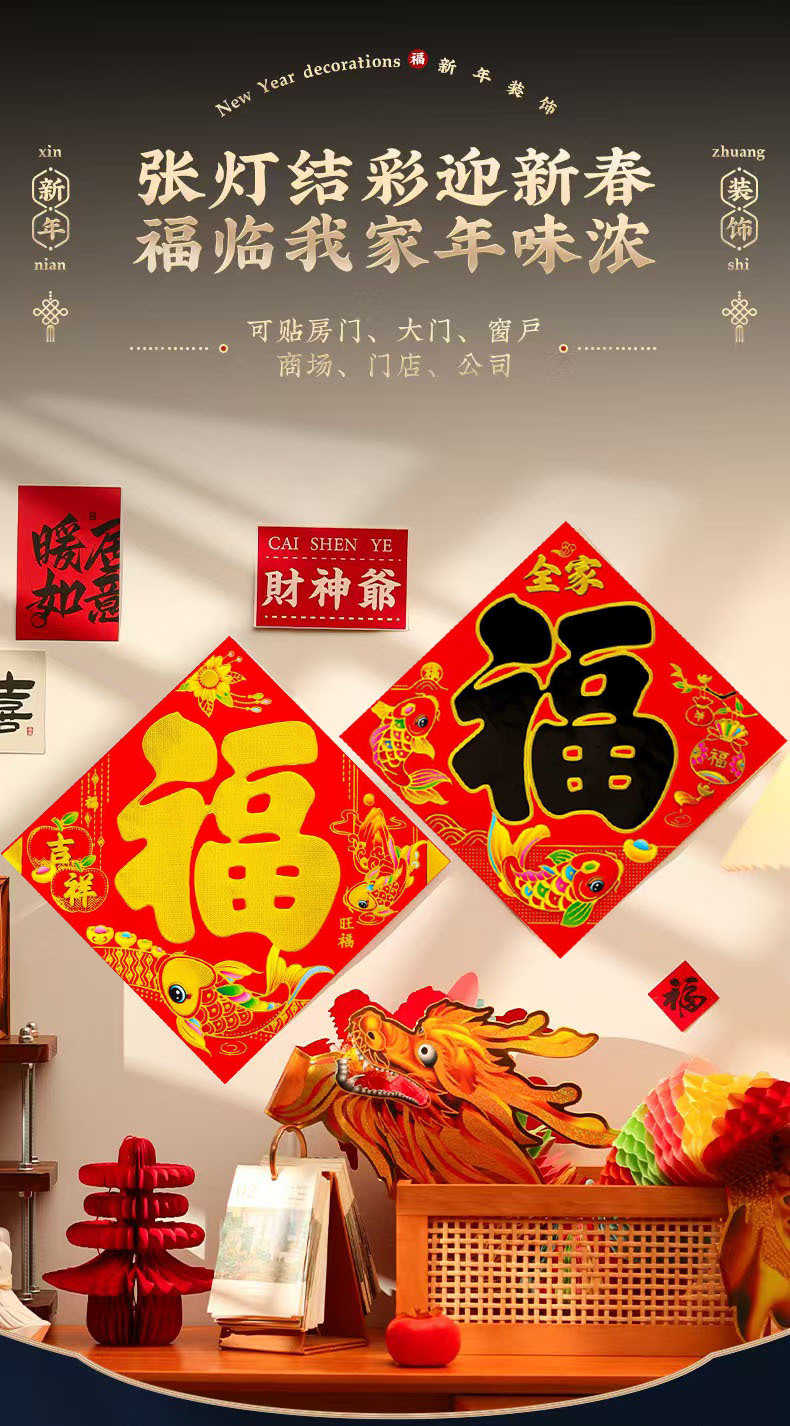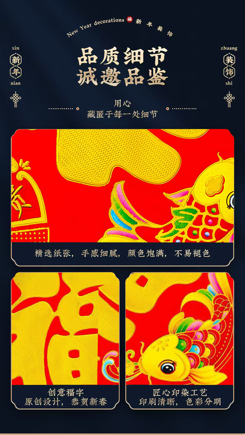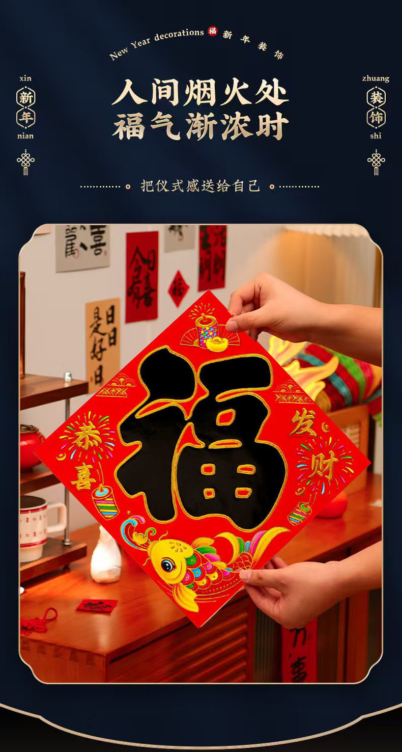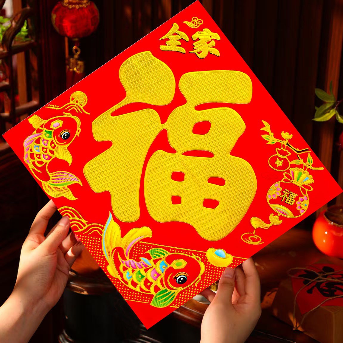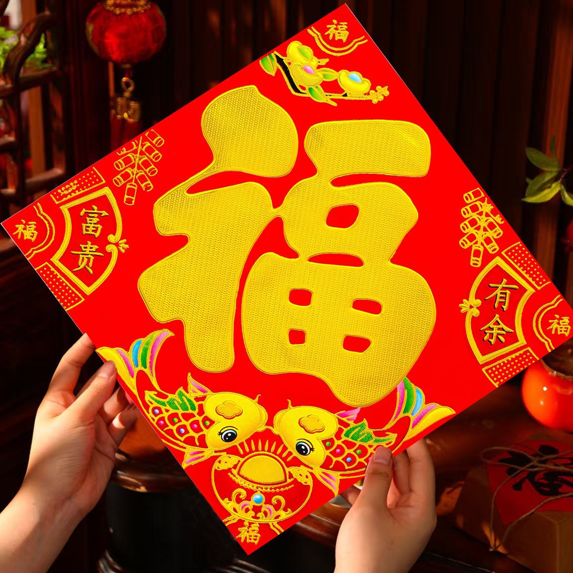 创意新年春节福贴铜版纸烫金福字年画门贴装饰厂金字黑字贴纸批发