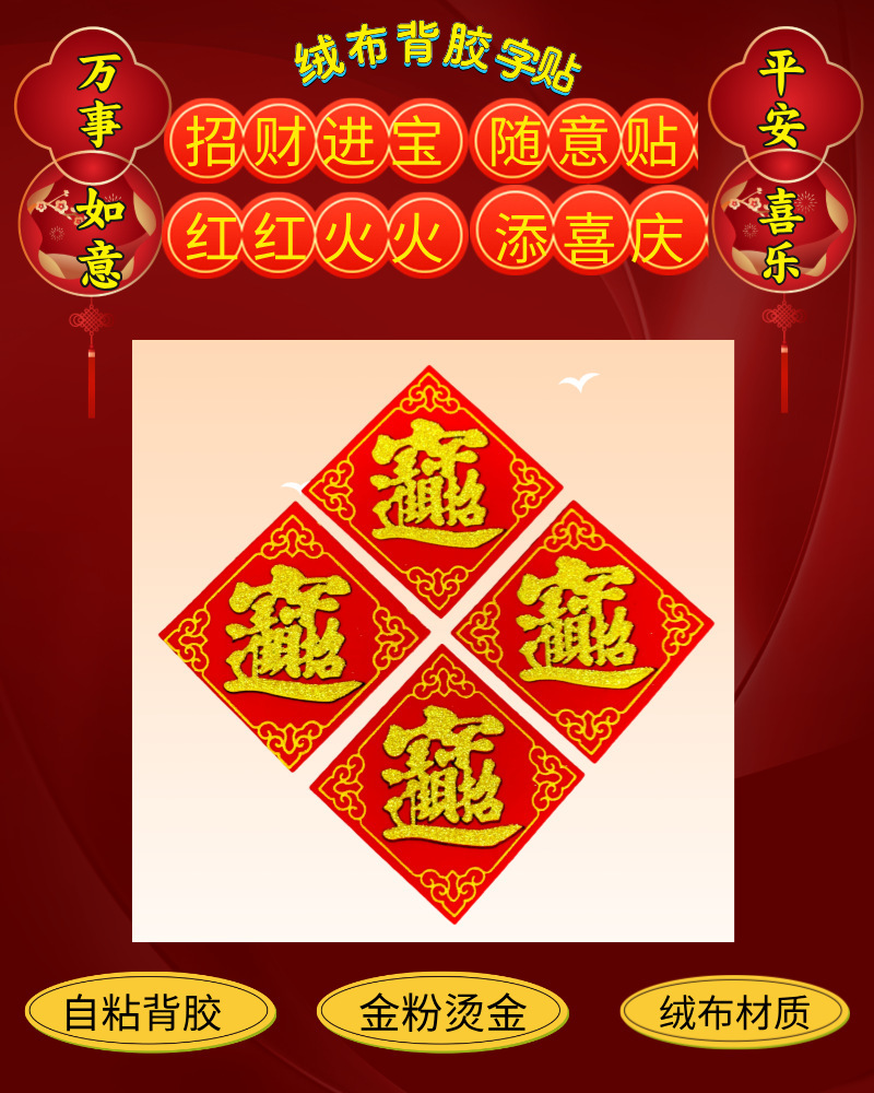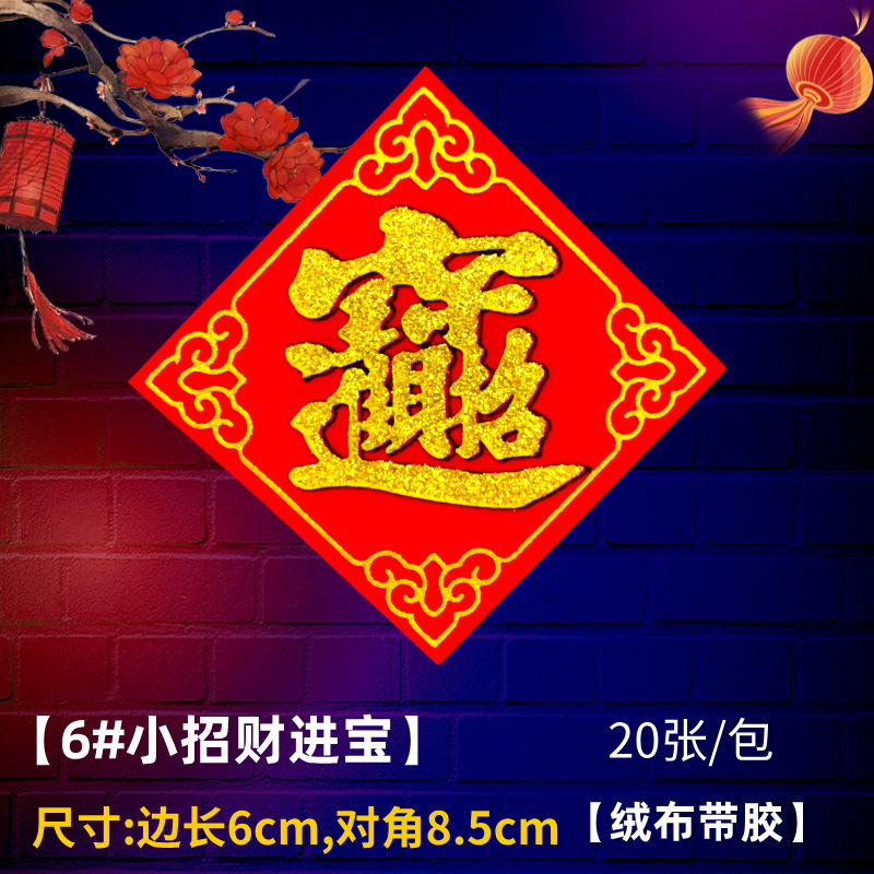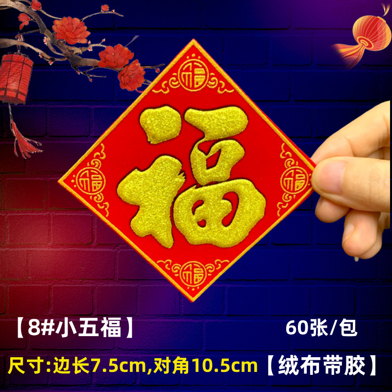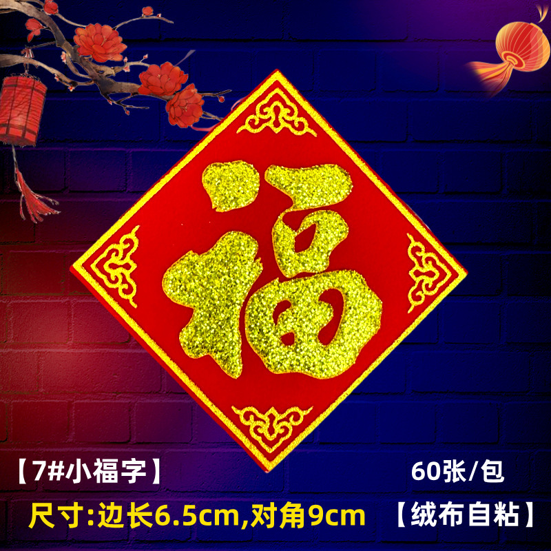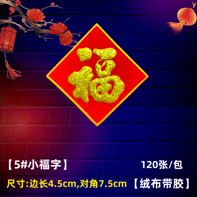 全背胶绒布迷你小福字贴金粉自带粘胶年货春节小型冰箱橱柜墙贴