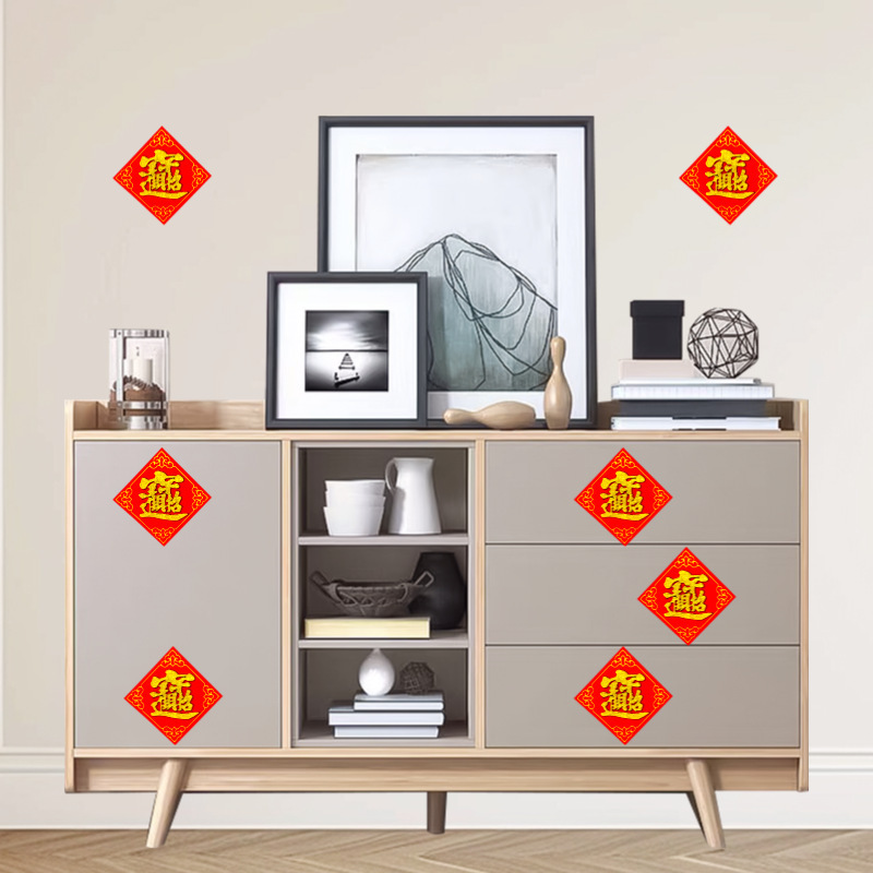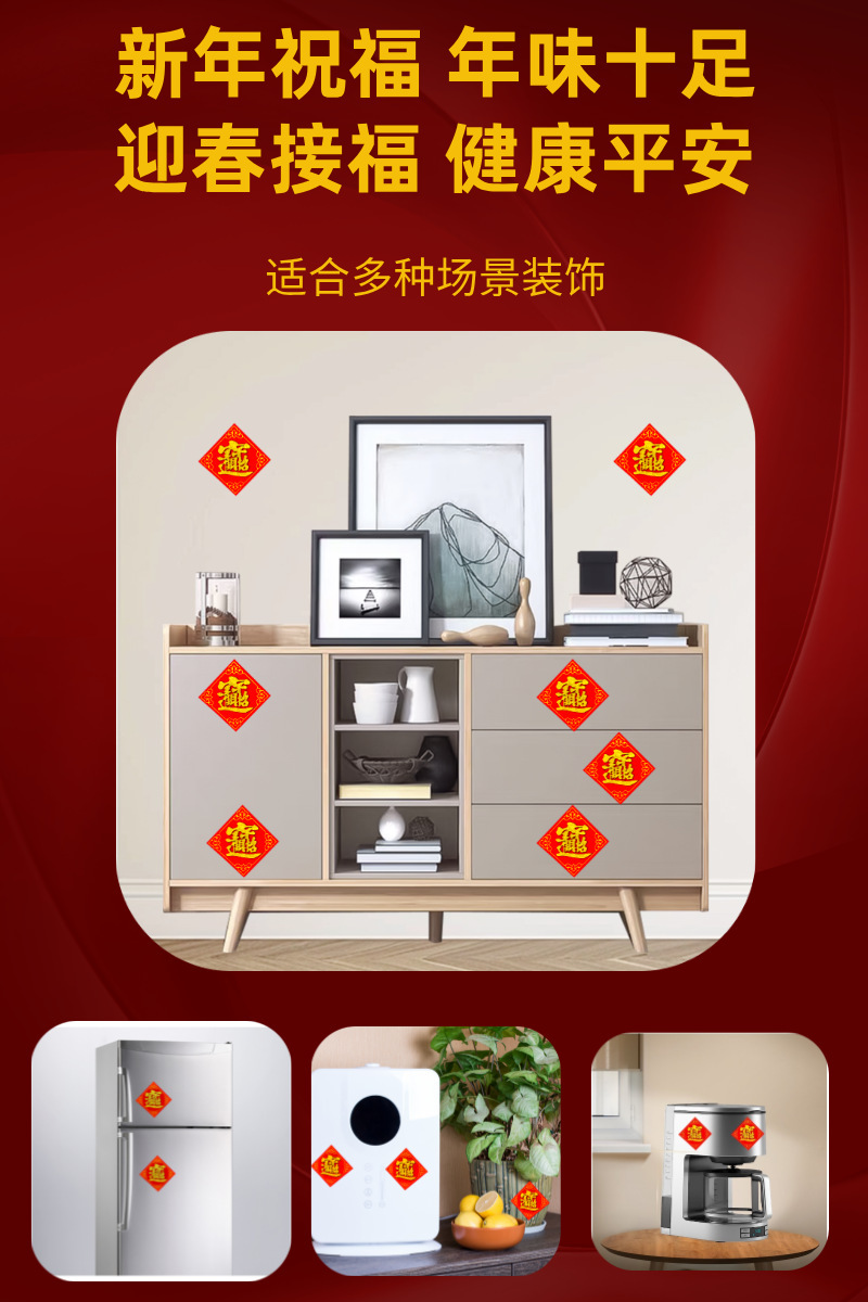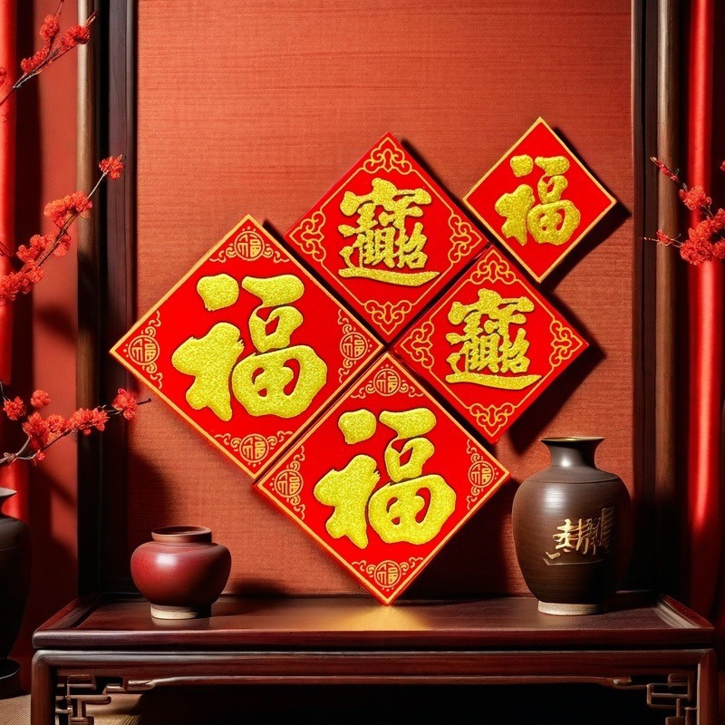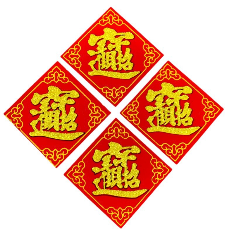 全背胶绒布迷你小福字贴金粉自带粘胶年货春节小型冰箱橱柜墙贴