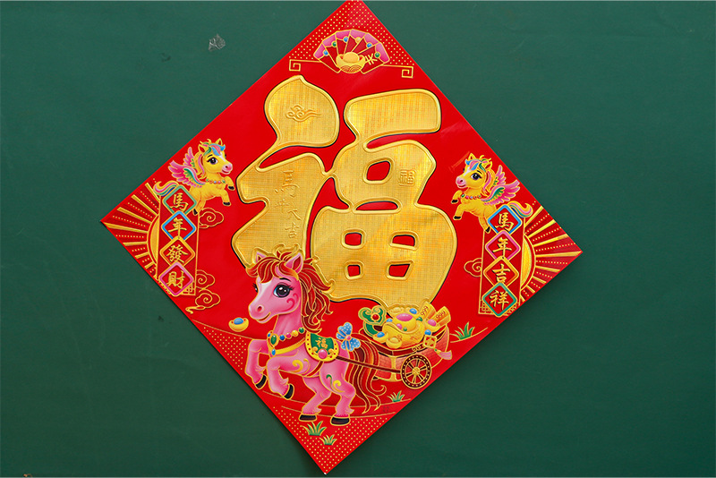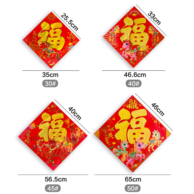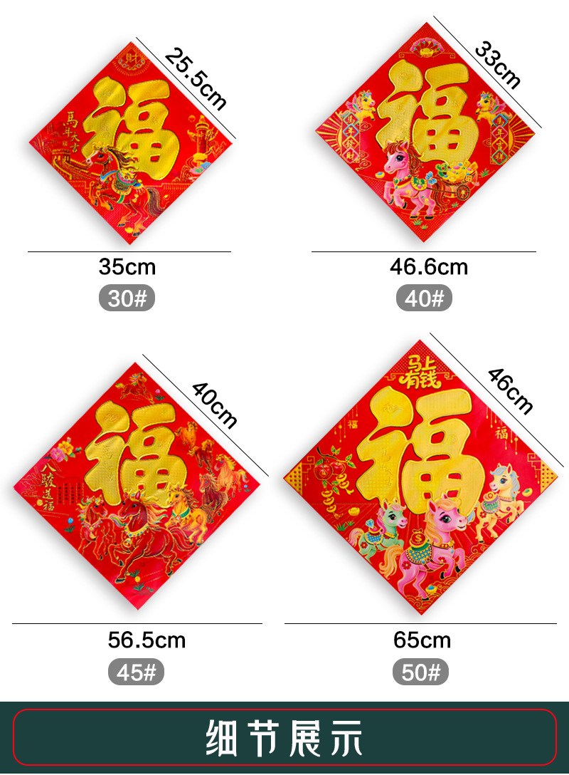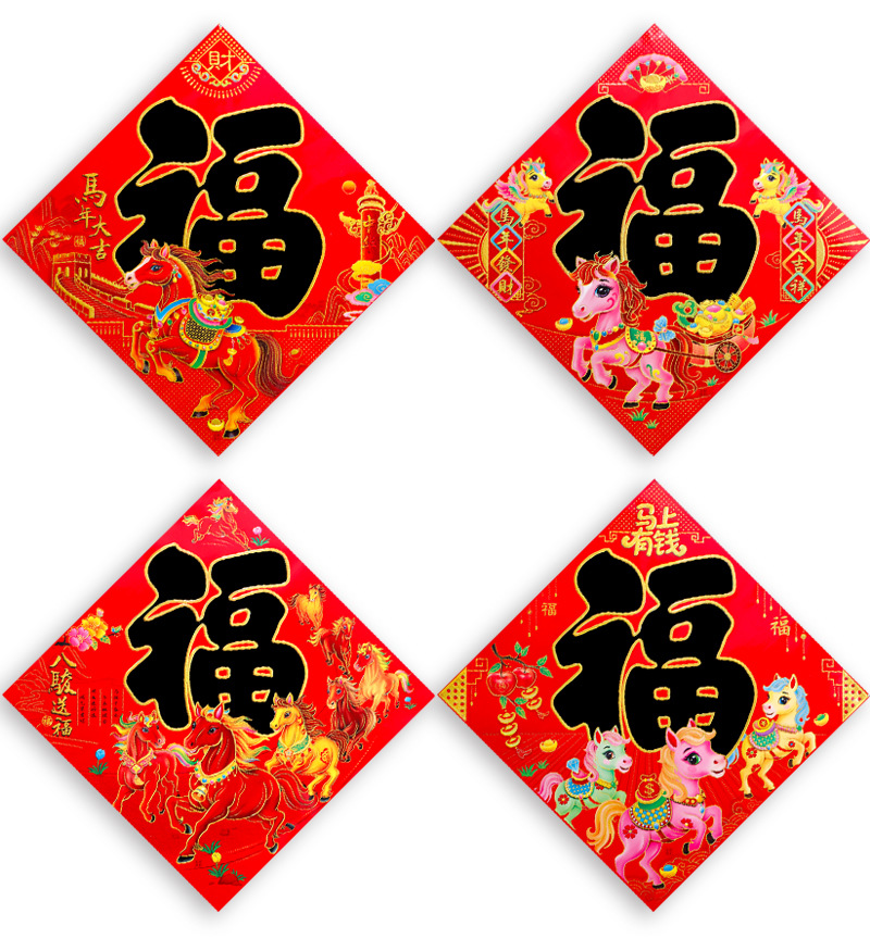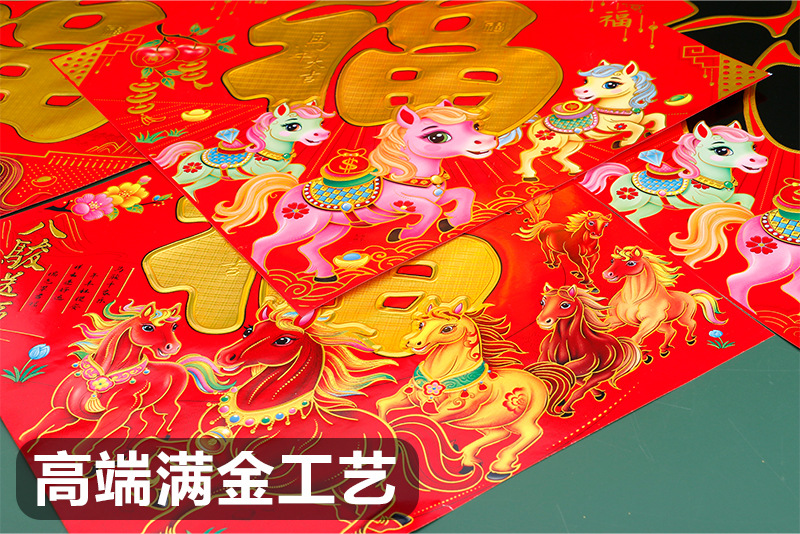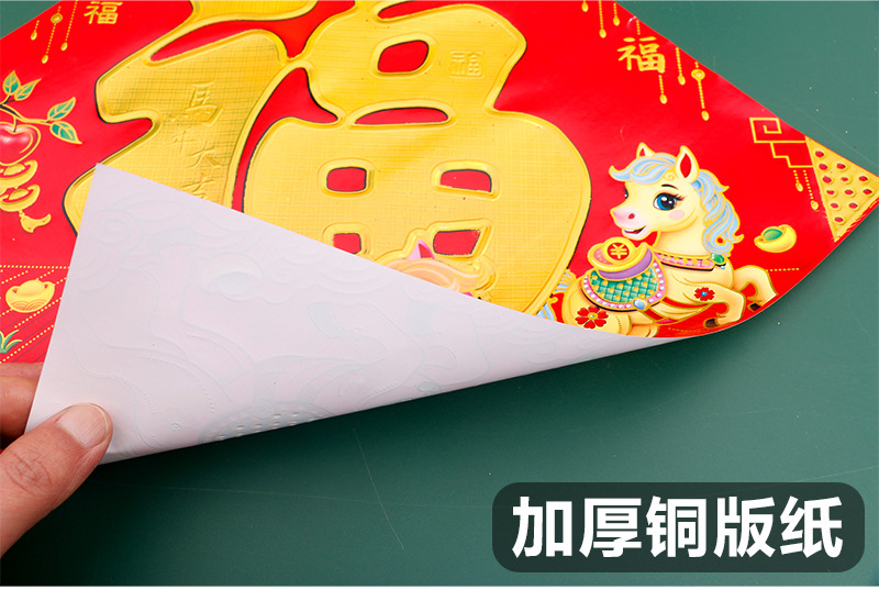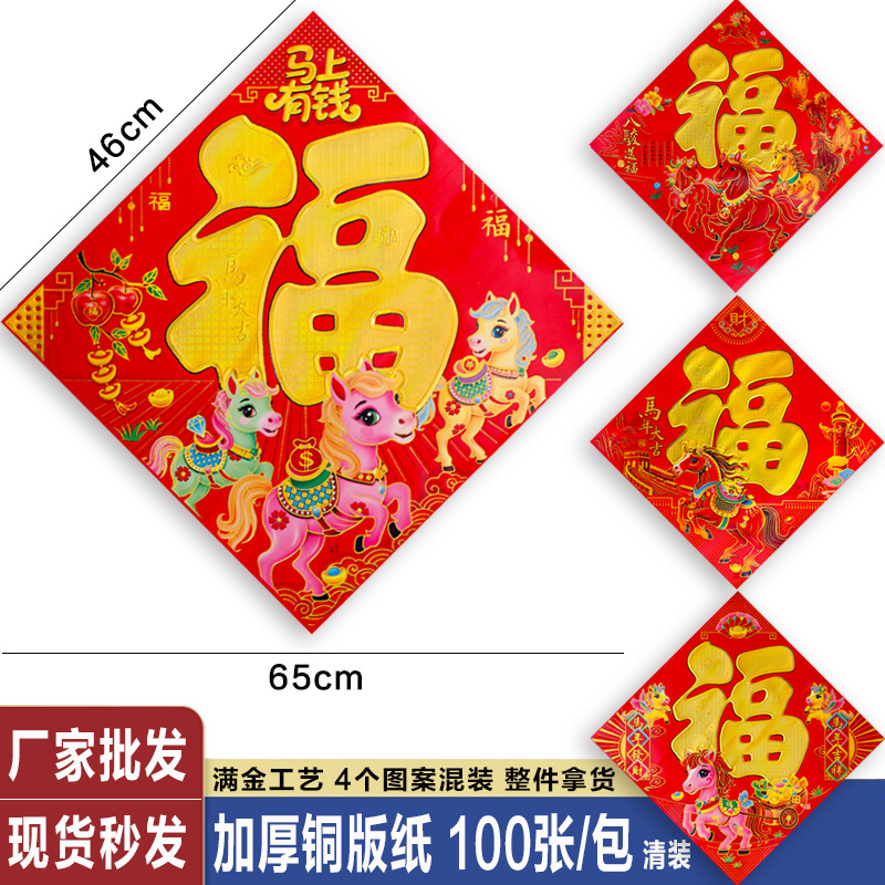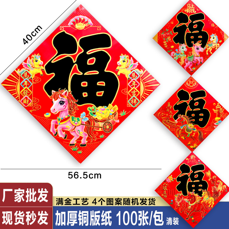 2026年烫金福字加厚铜版纸福字贴马年生肖福新年黑字门贴斗方厂家