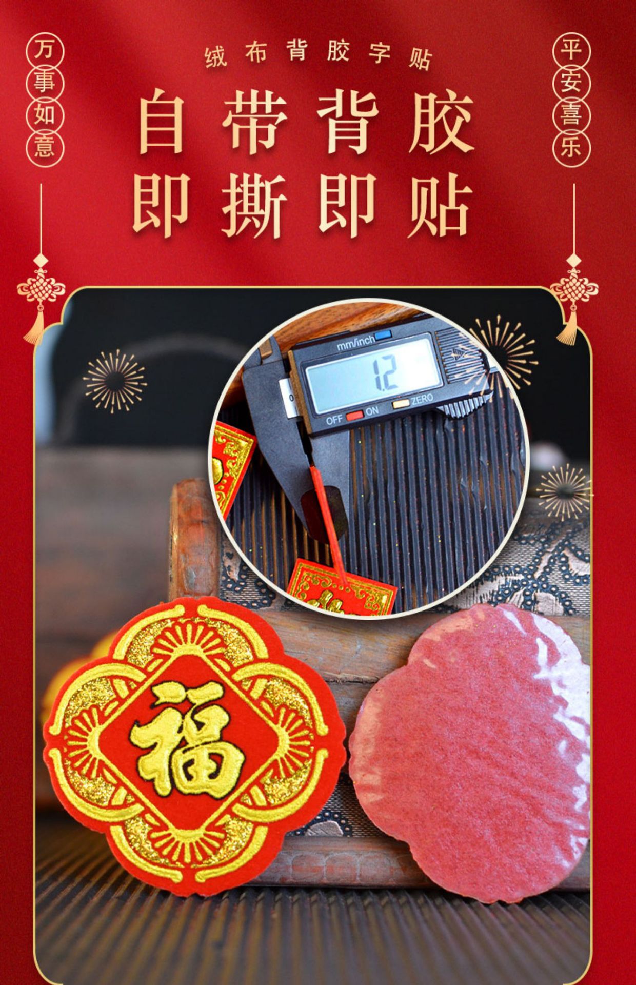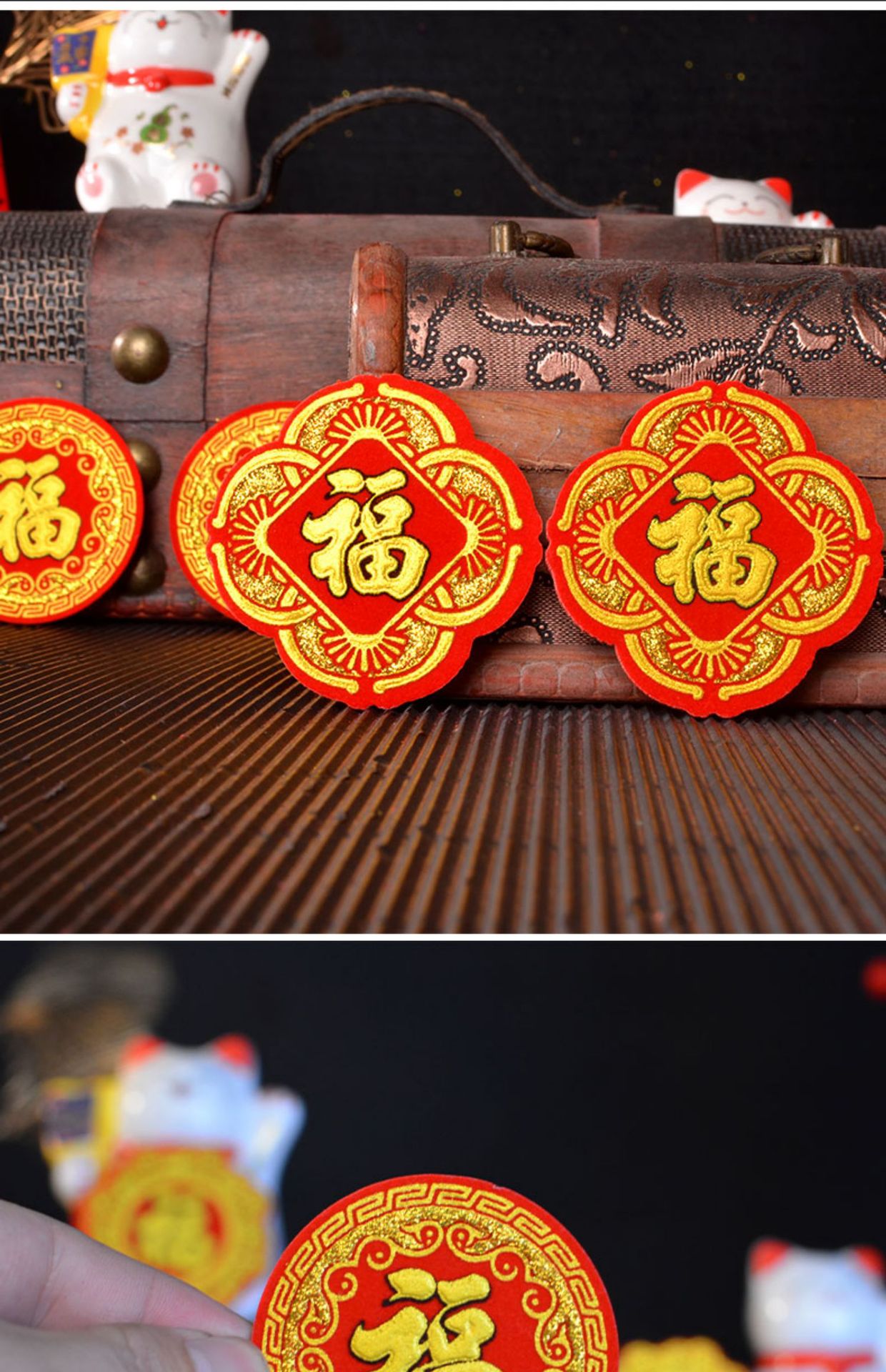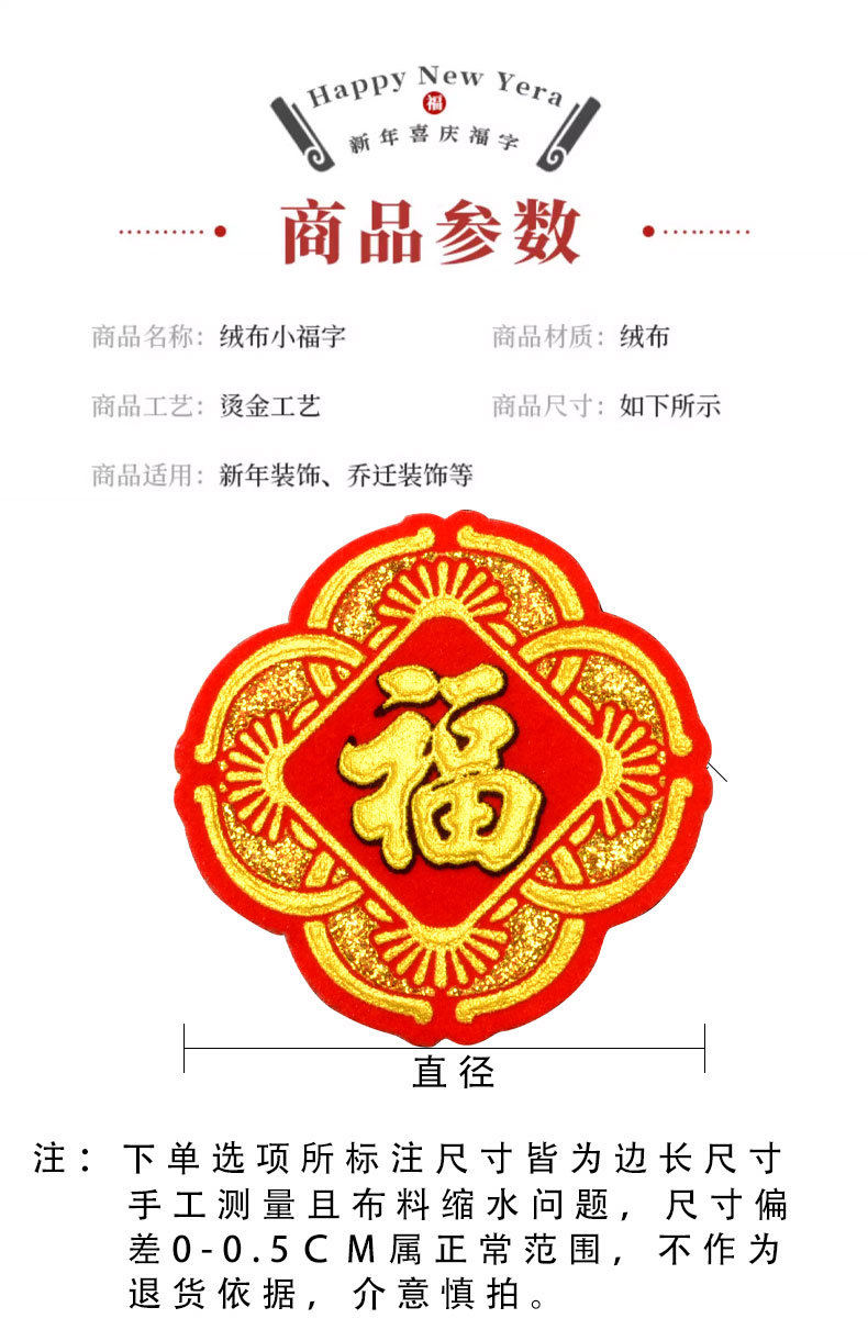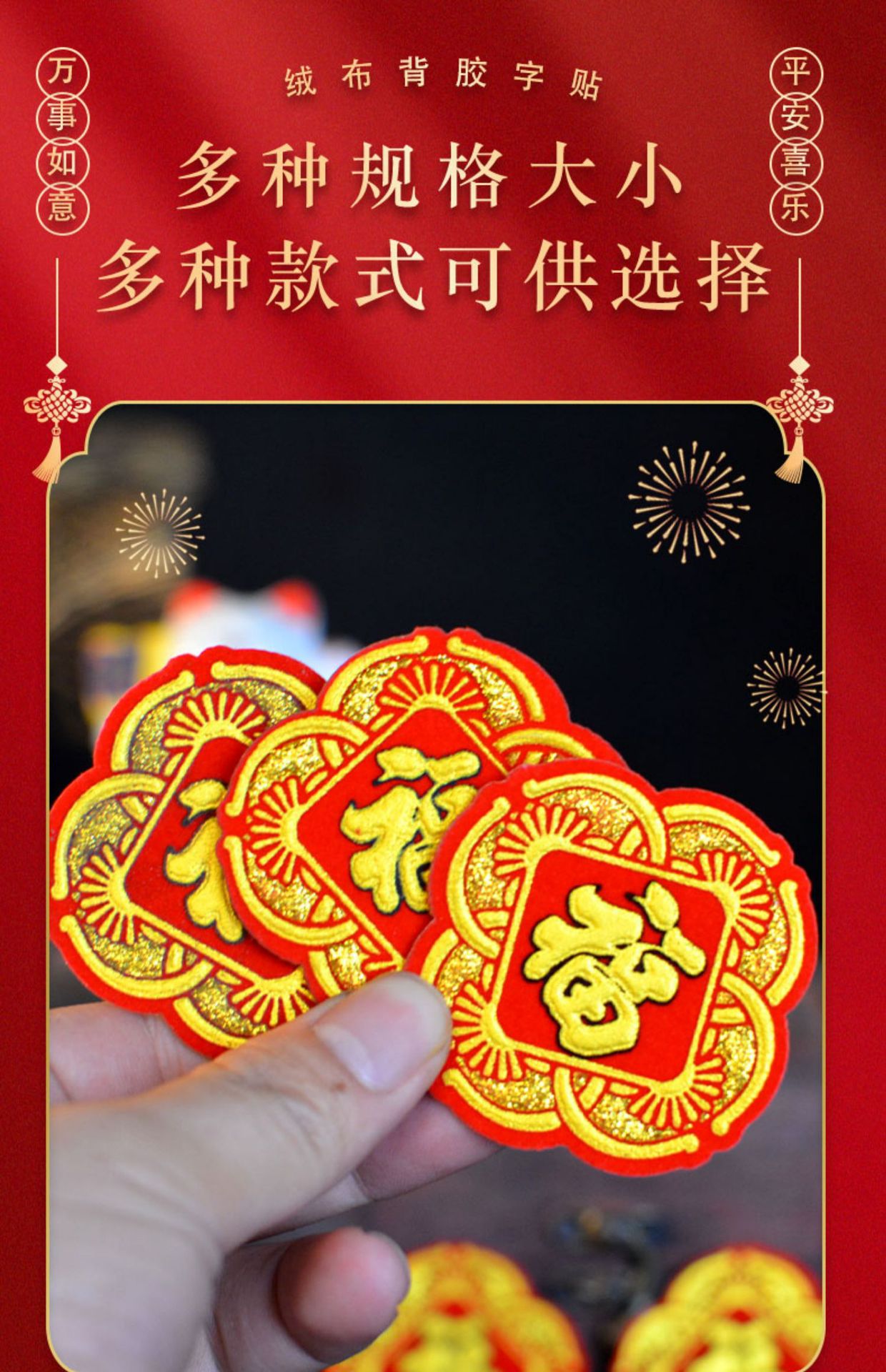绒布烫金自粘乔迁中秋佳节迷你福字贴多种形状装饰工艺用品贴纸
