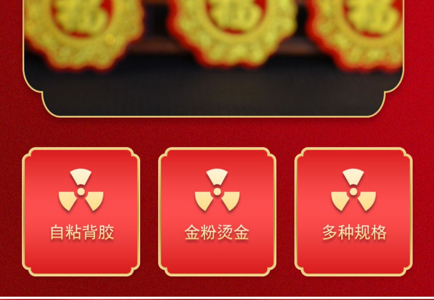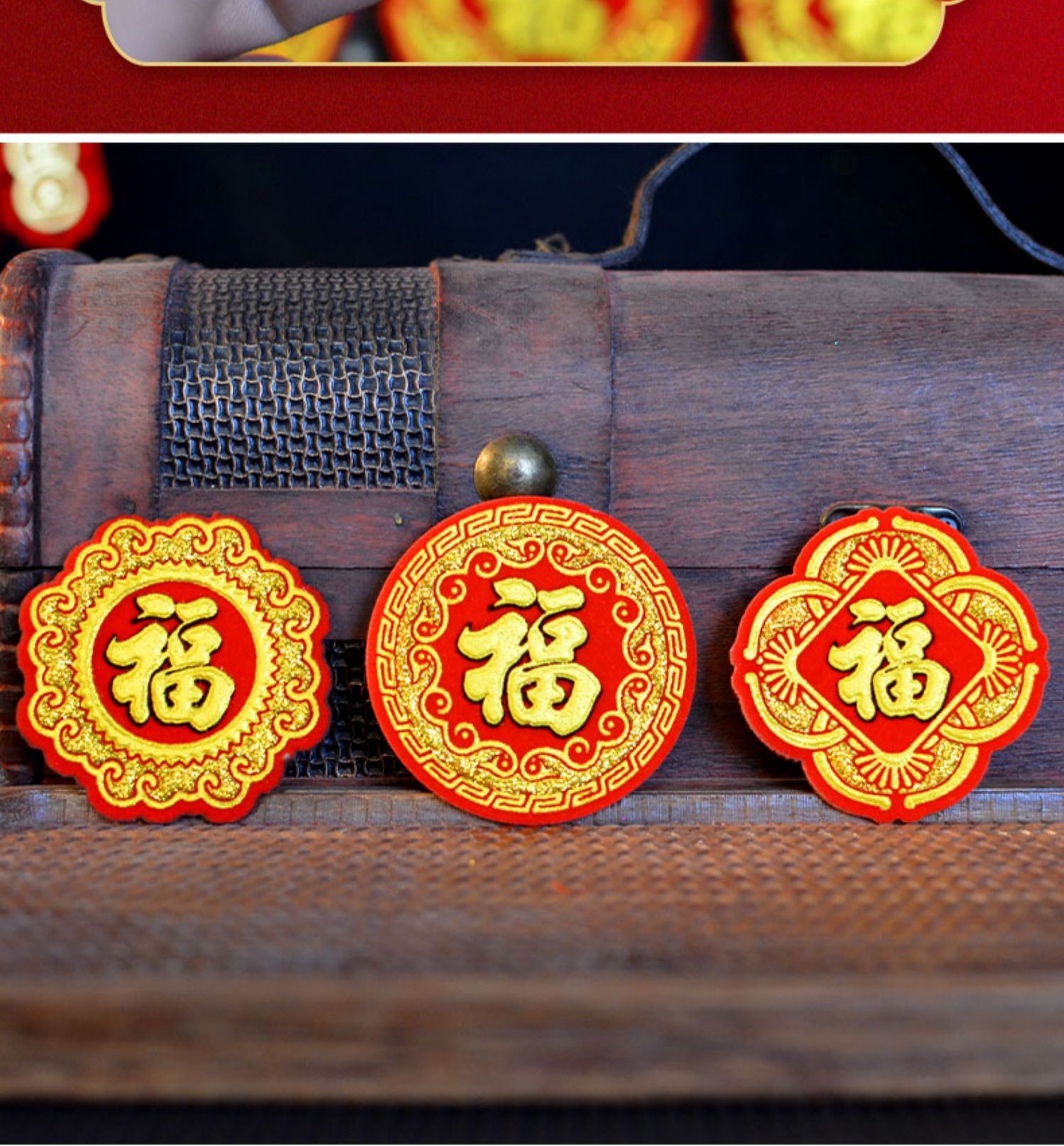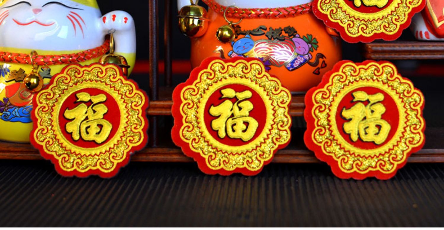 绒布烫金自粘乔迁中秋佳节迷你福字贴多种形状装饰工艺用品贴纸