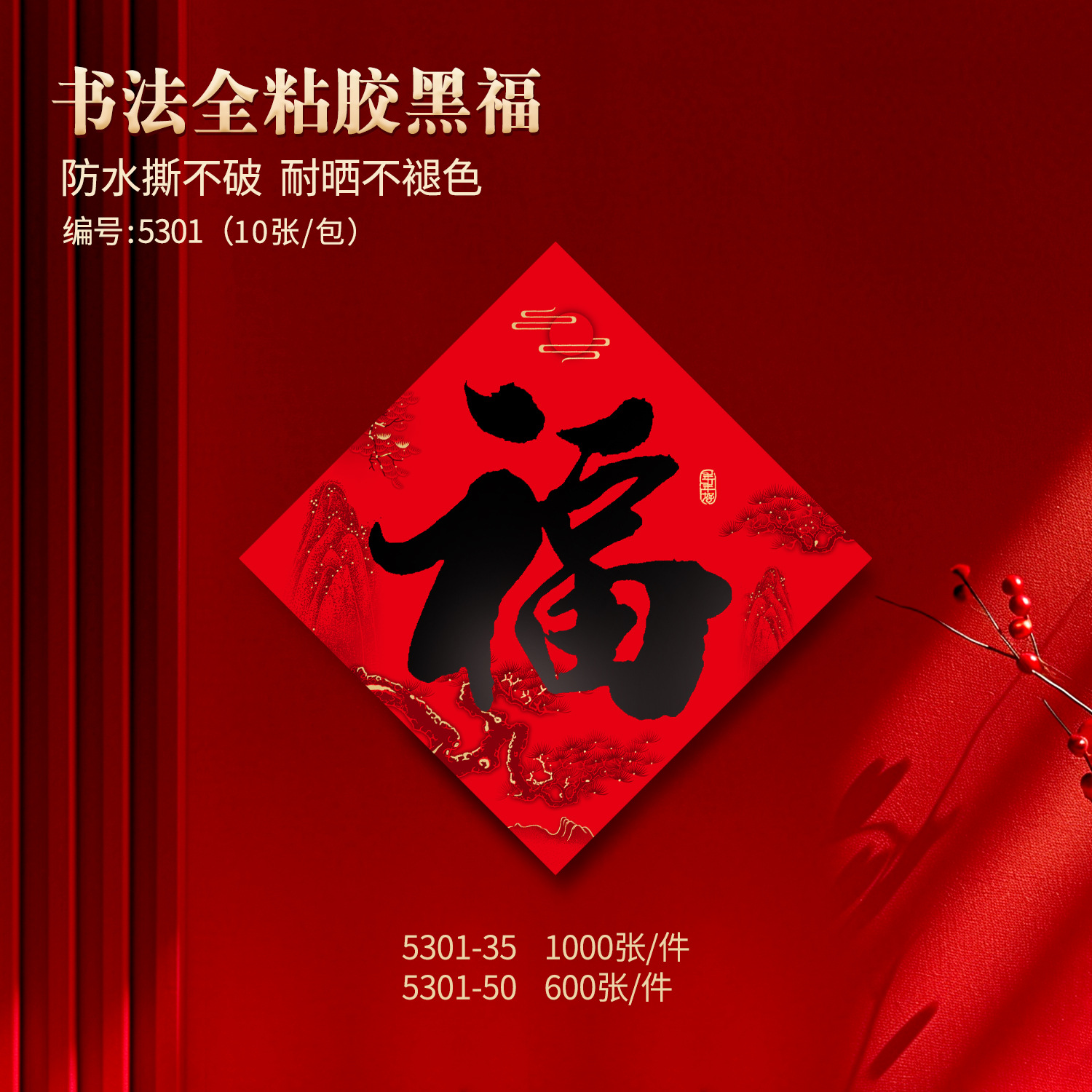2026新年福字大量现货全背胶和铜版纸福字贴书法墙贴烫金字