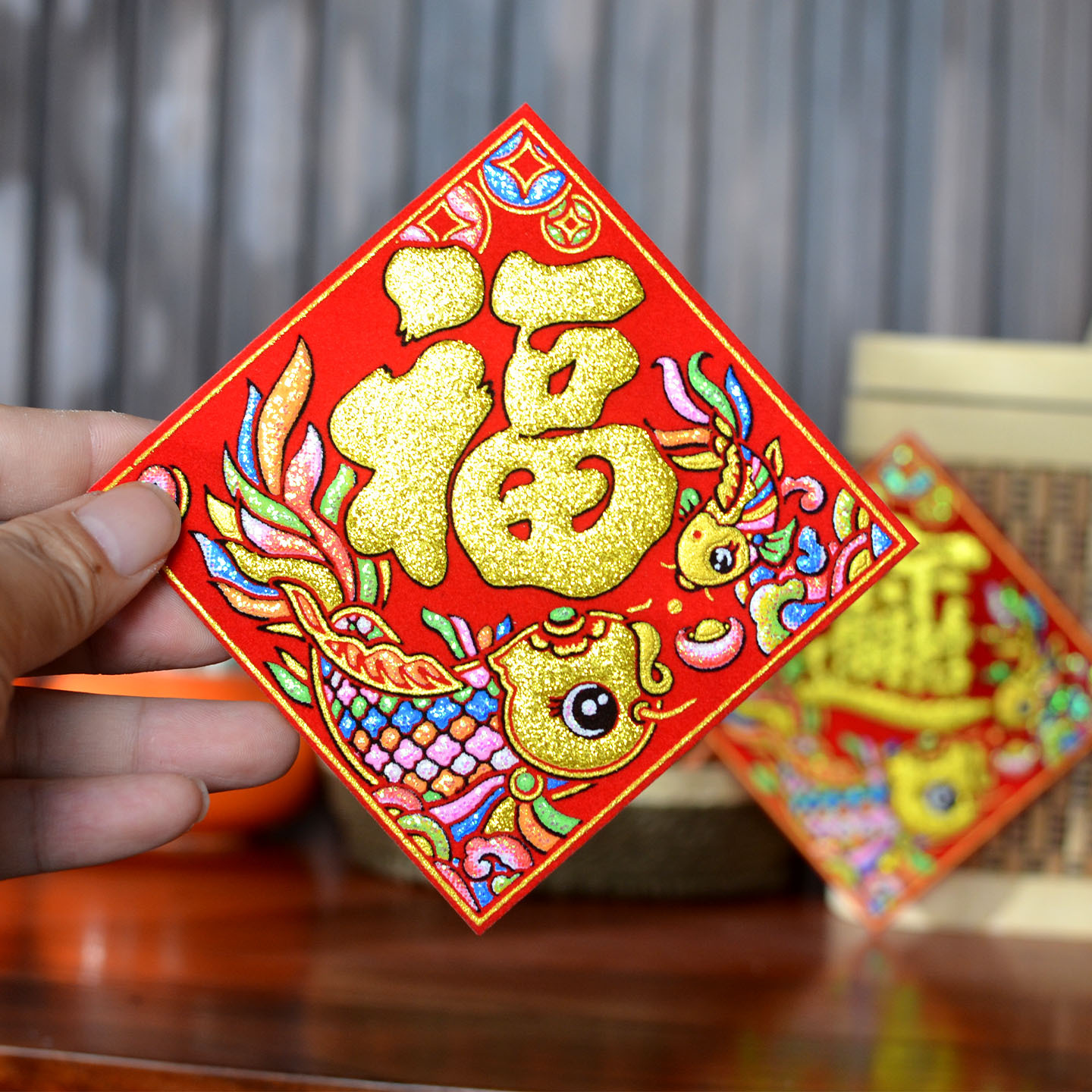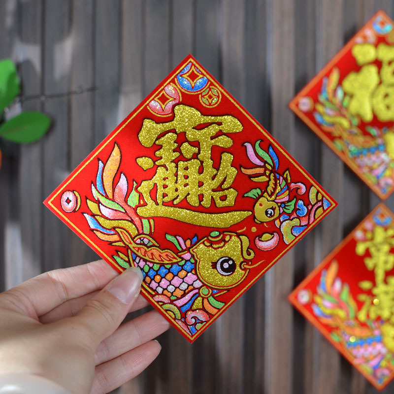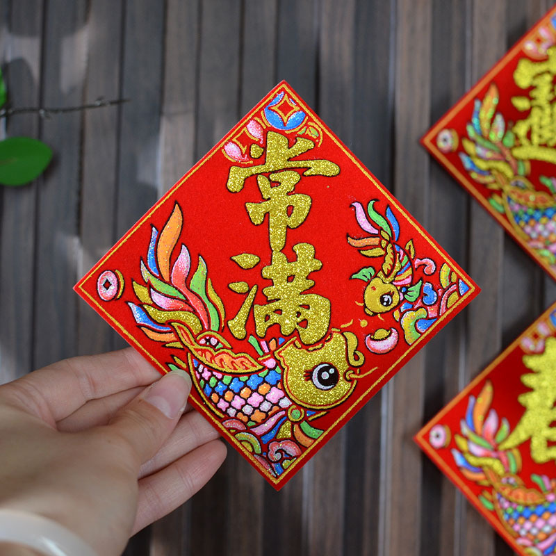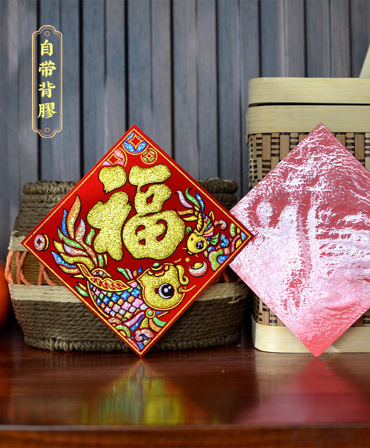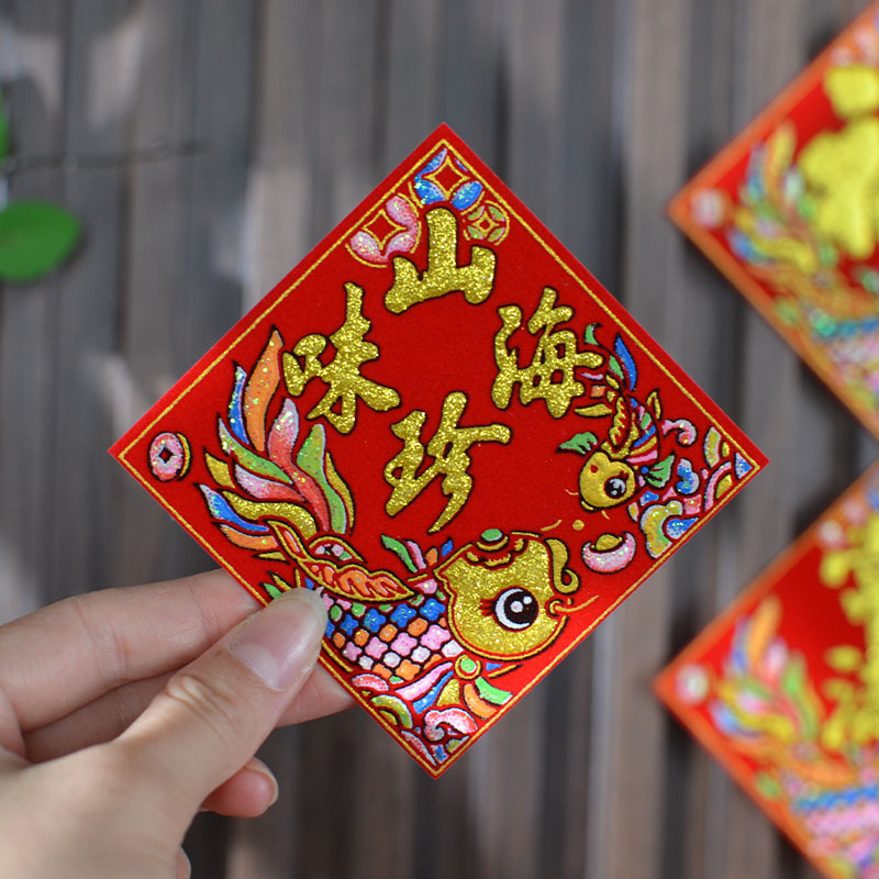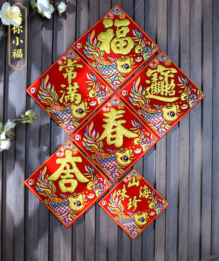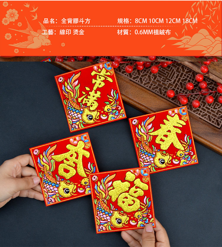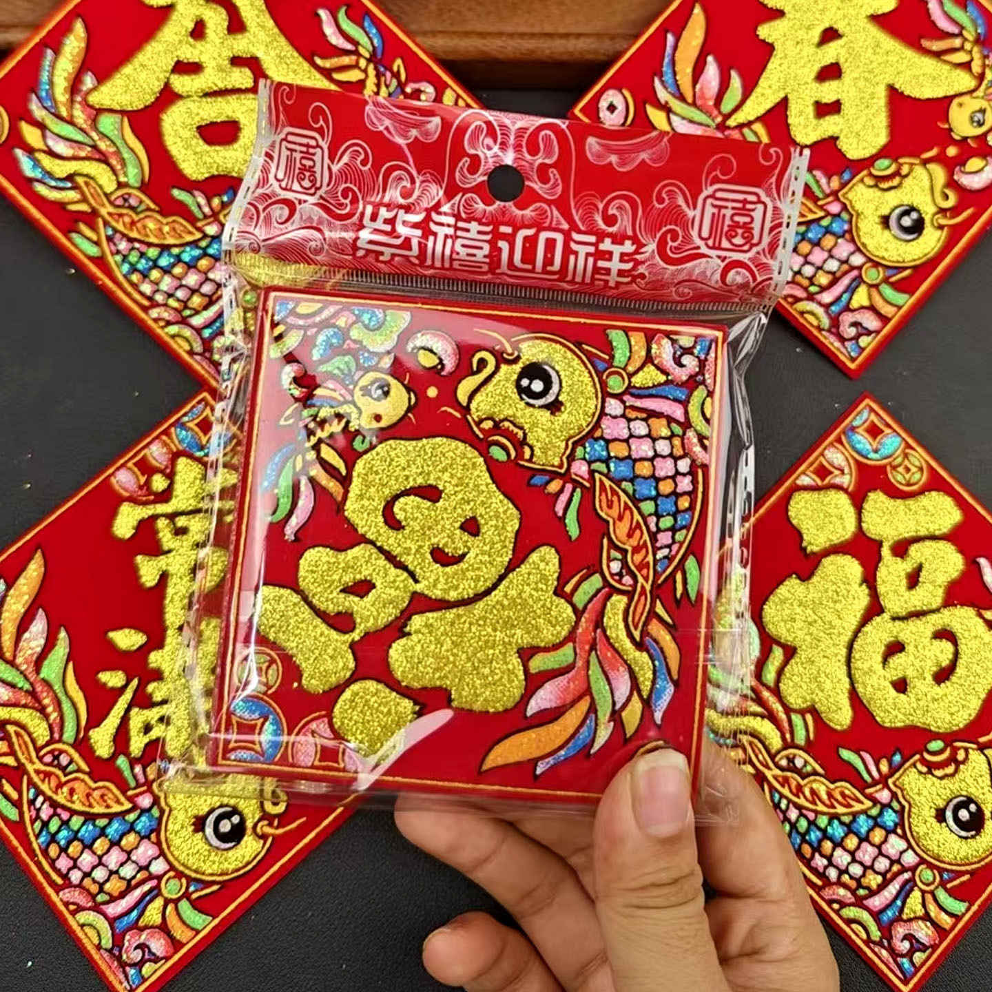2026年新款小福字贴常满春大吉花开富贵山珍海味绒布自粘烫金福