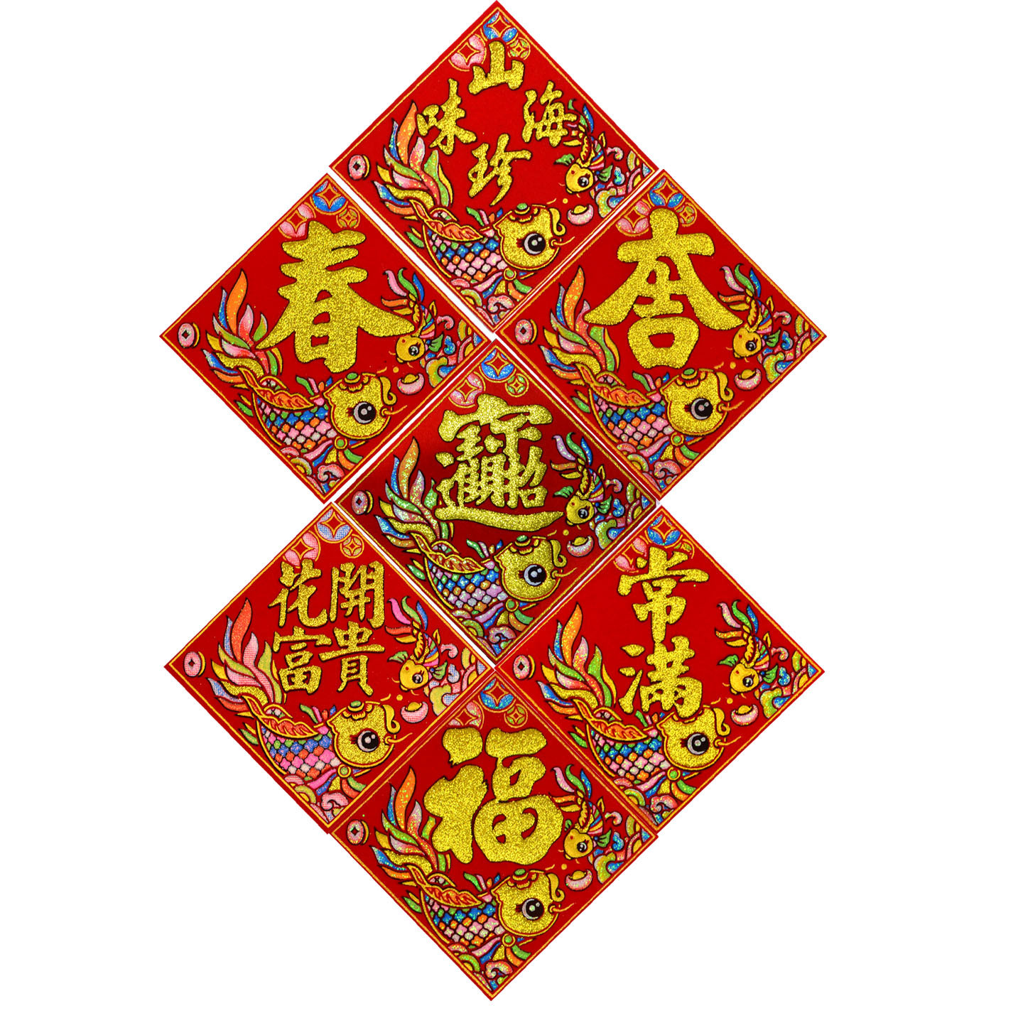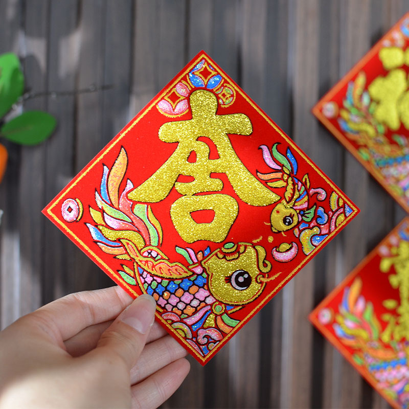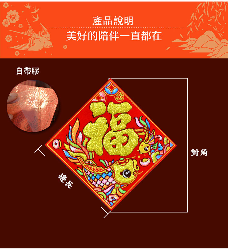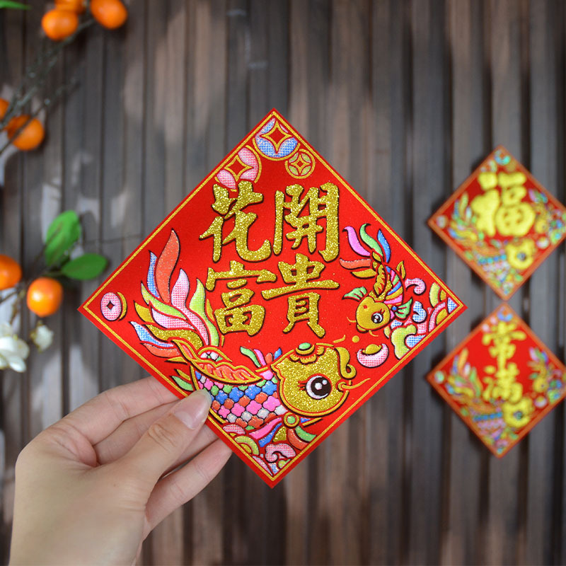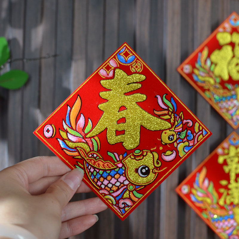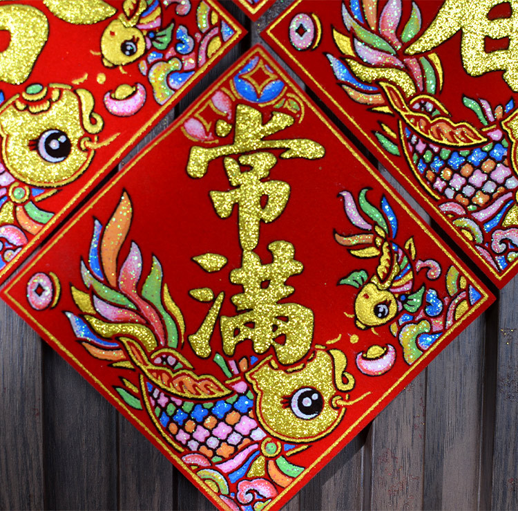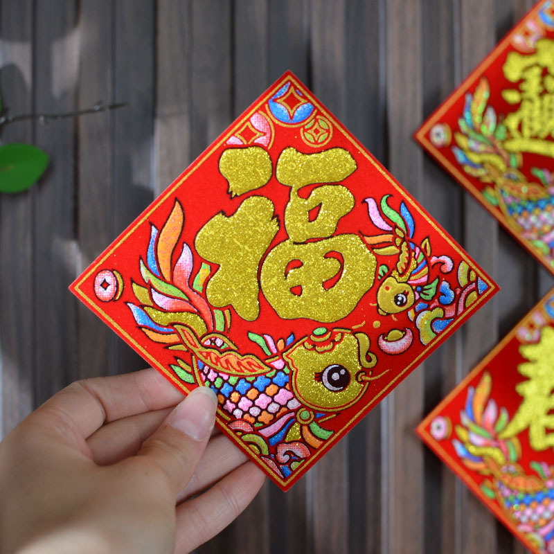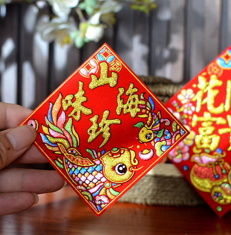 2026年新款小福字贴常满春大吉花开富贵山珍海味绒布自粘烫金福