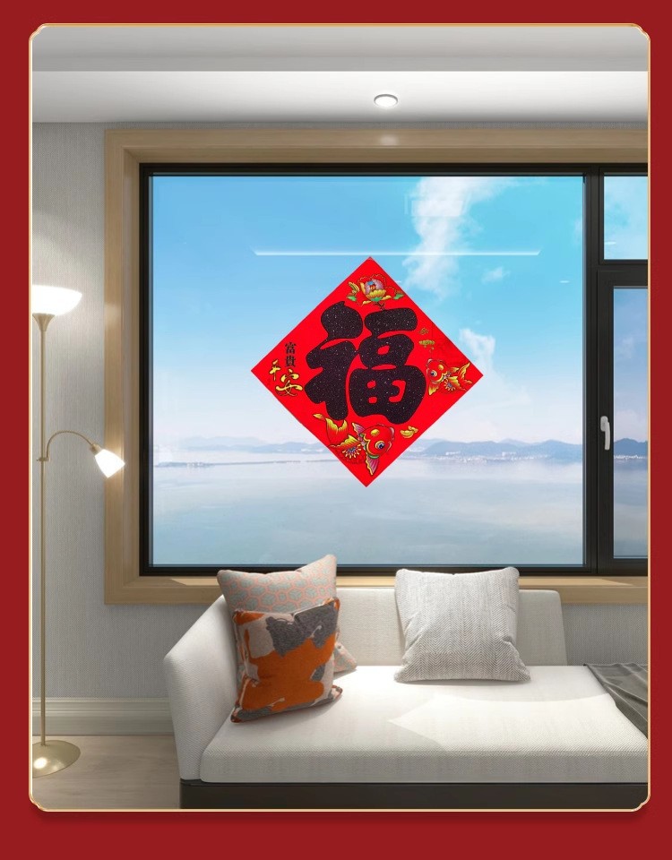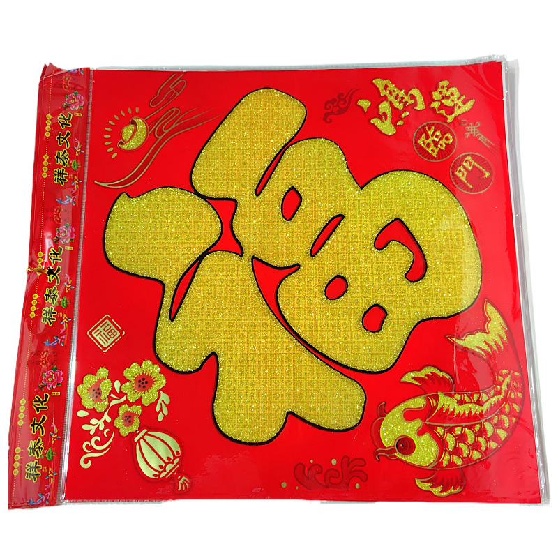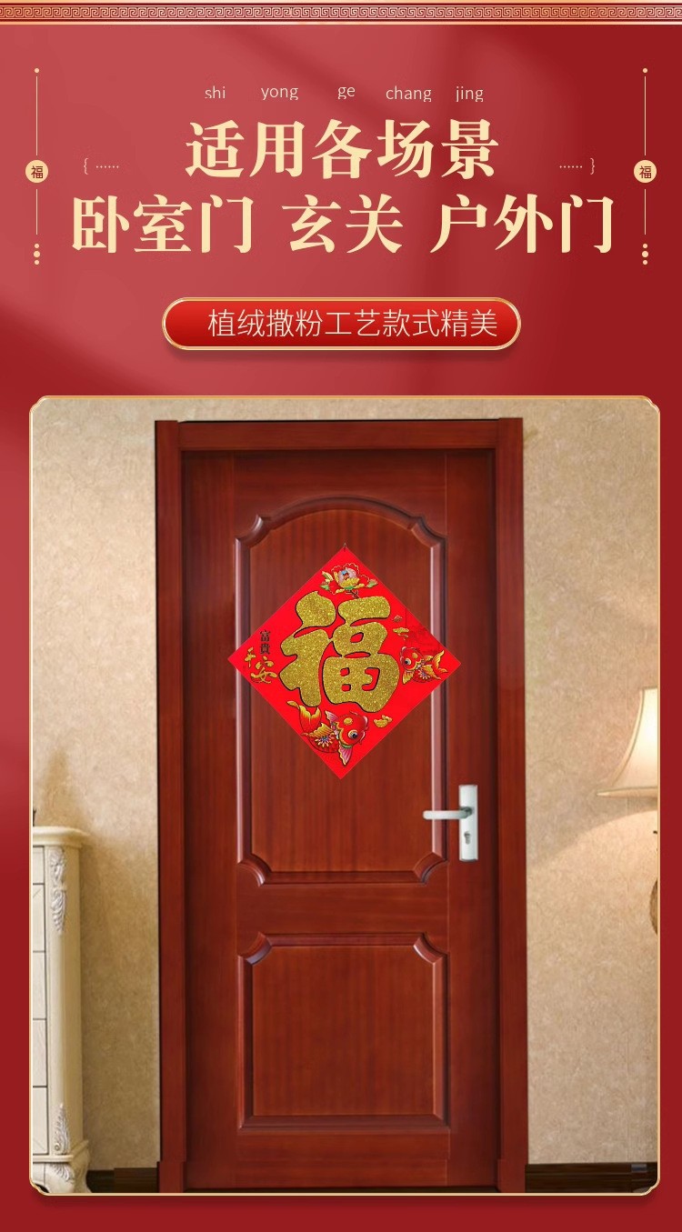 2026马年新款植绒撒粉福字门贴新年福字贴春节装饰植绒年画贴批发