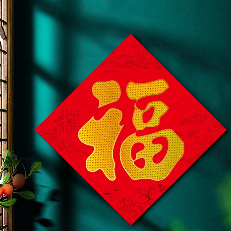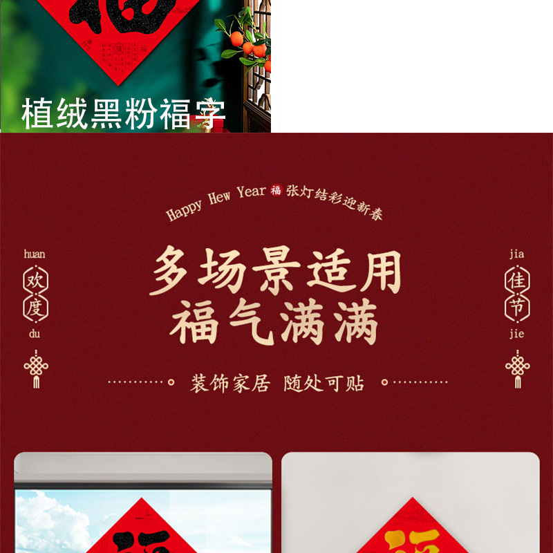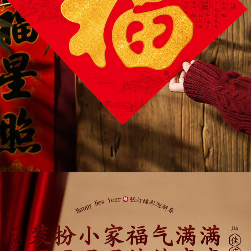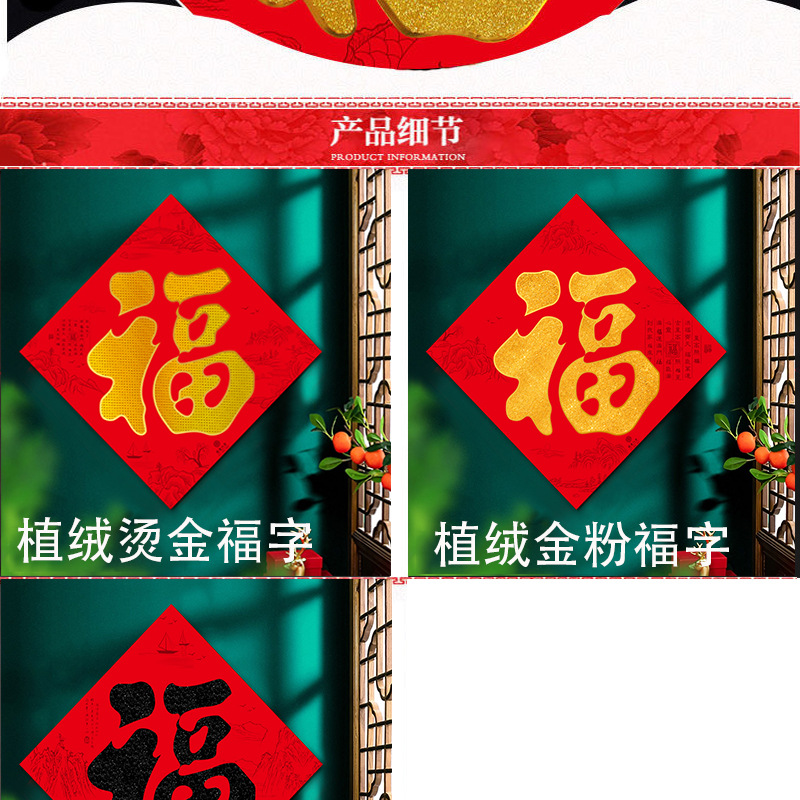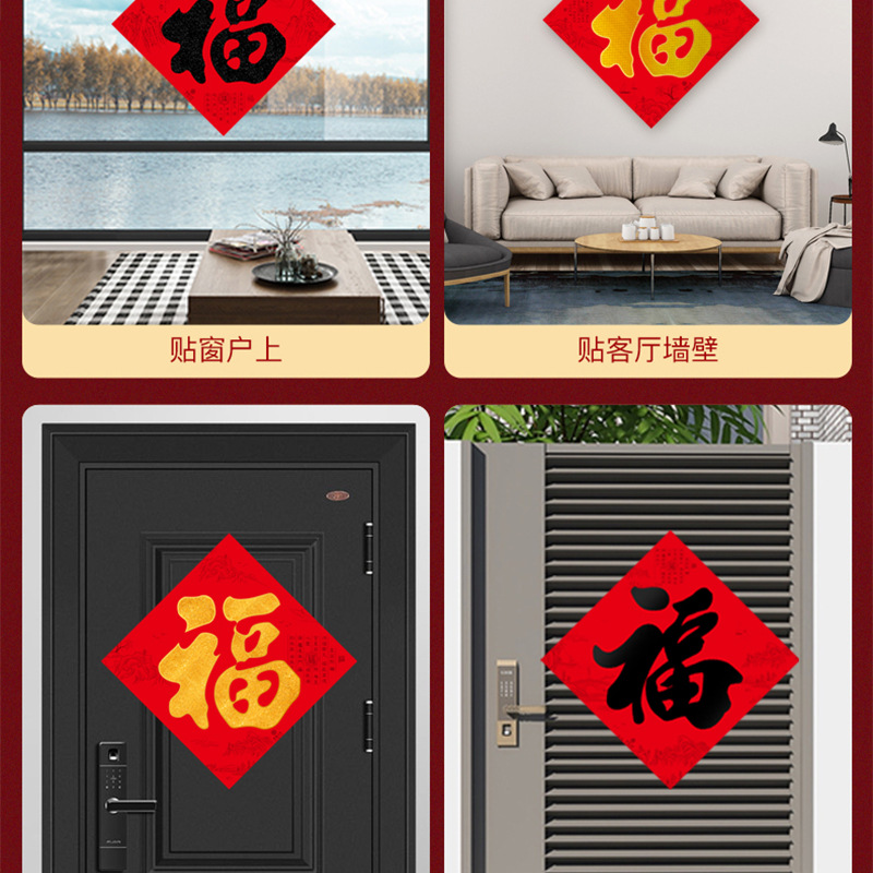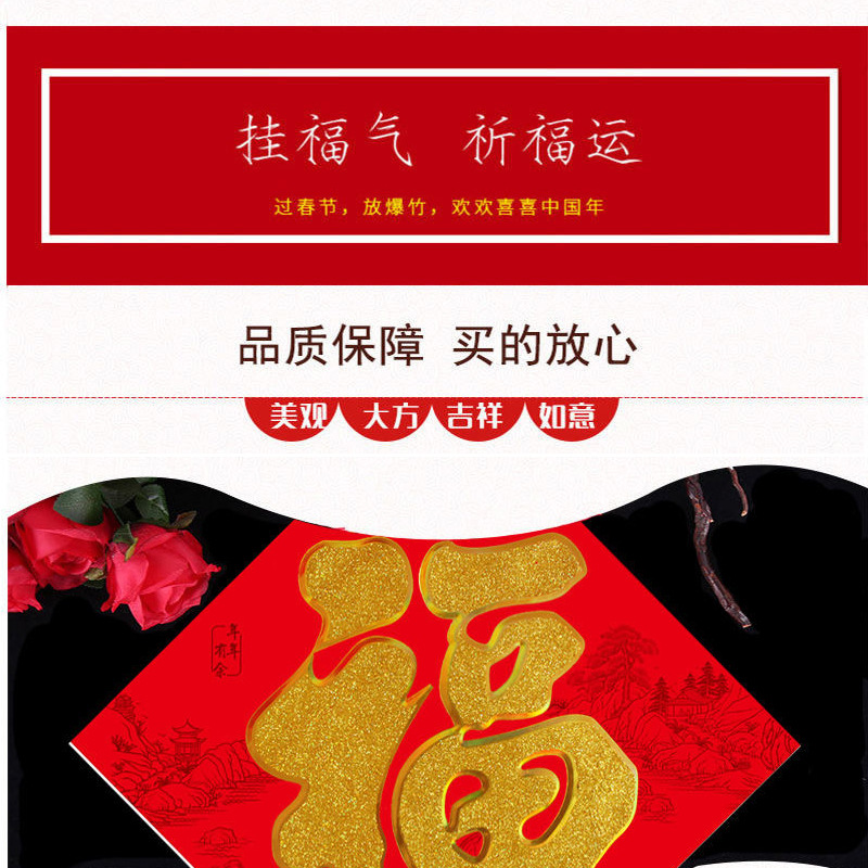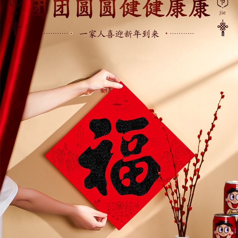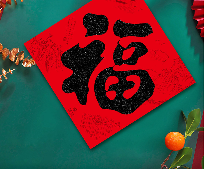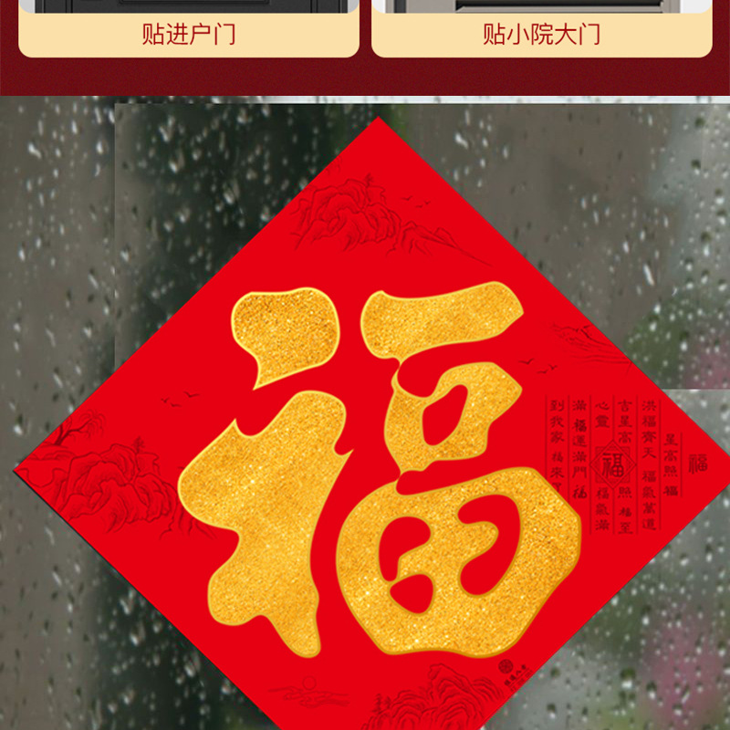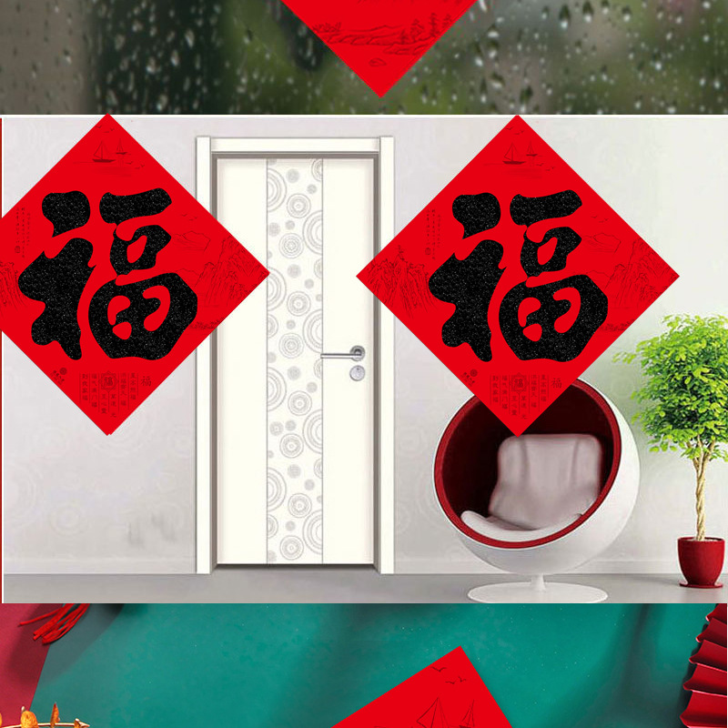 25年新款植绒加厚撒金粉福新年大门福字贴纸窗花春节对联装饰用品