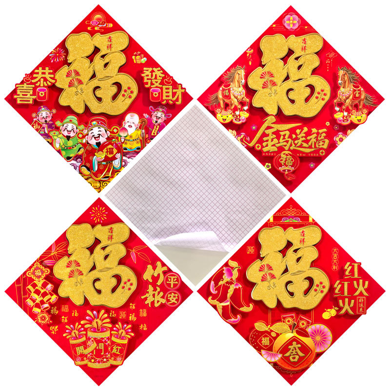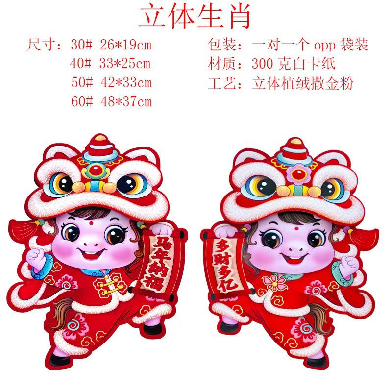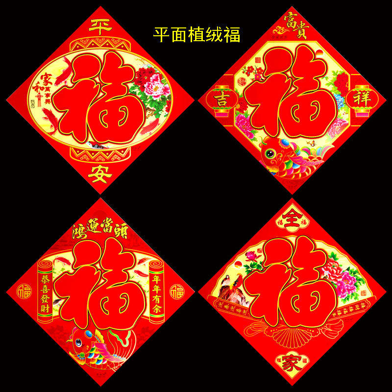 新年福字门贴植绒金粉立体福字贴卡通生肖福字春节装饰年画批发