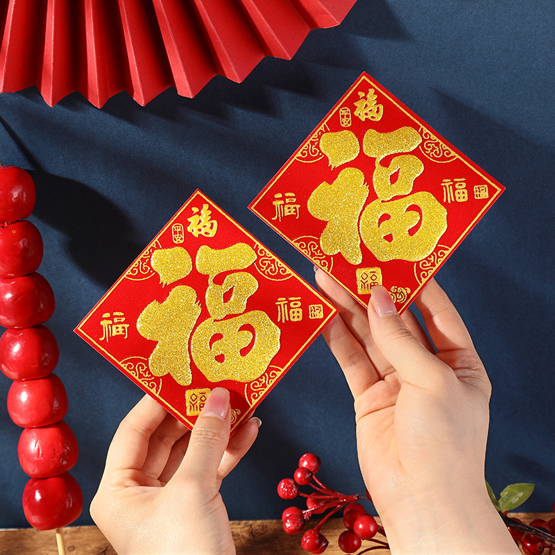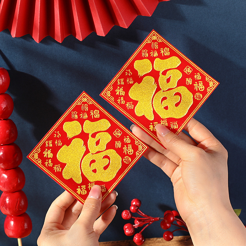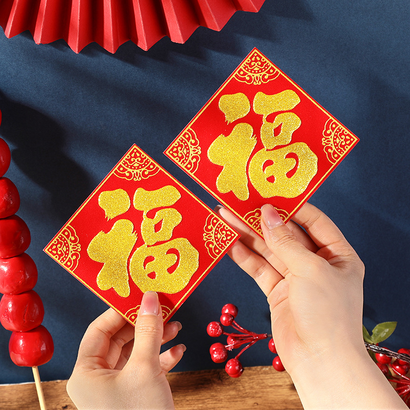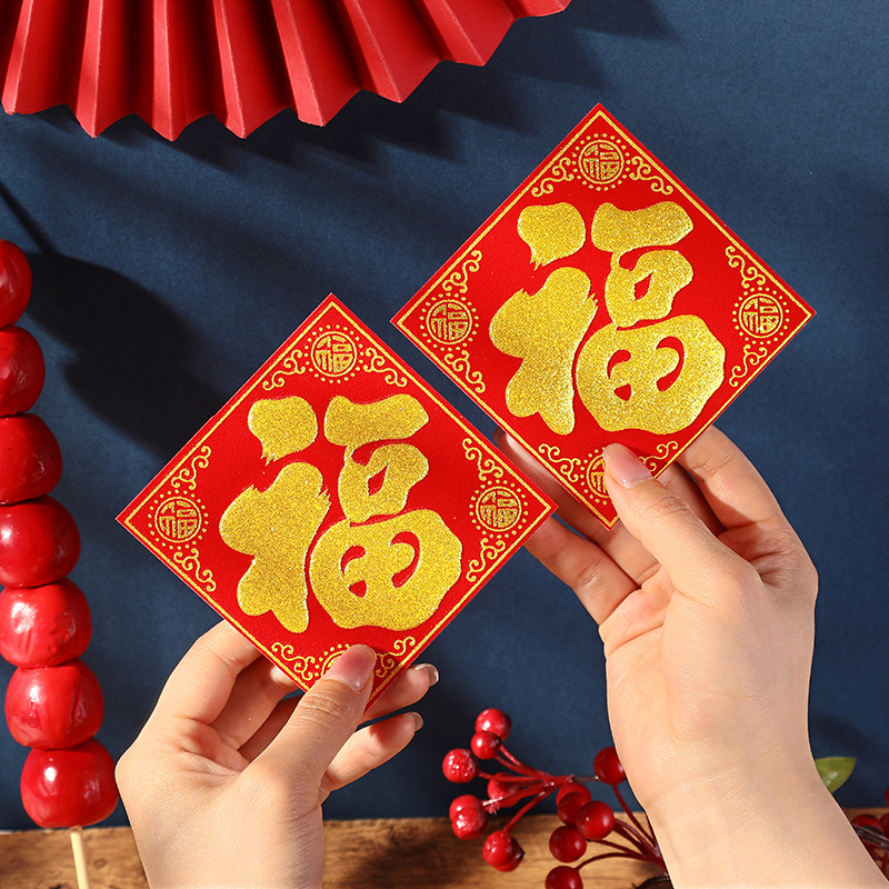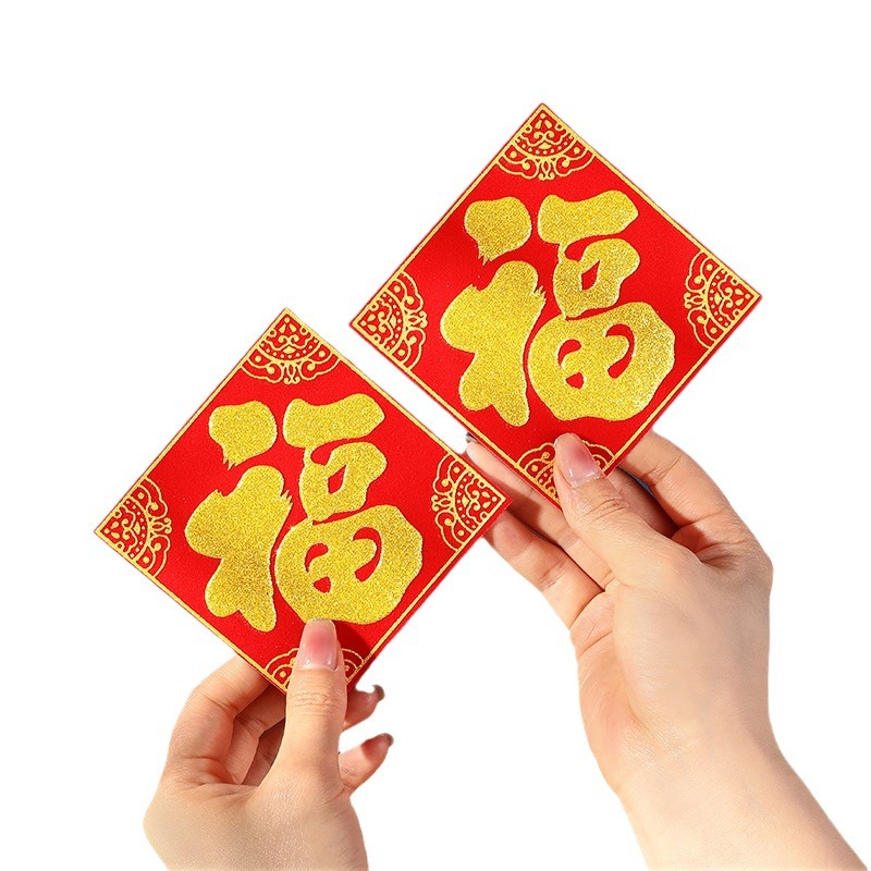2025新款小福字门贴福字贴大门自粘植绒窗花春节布置新年装饰用品