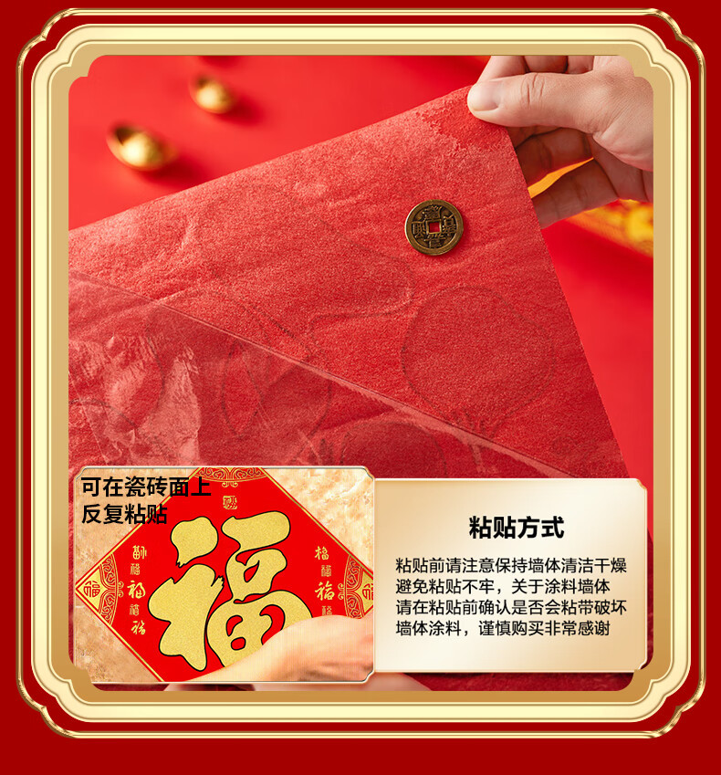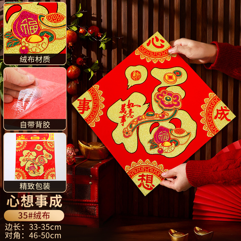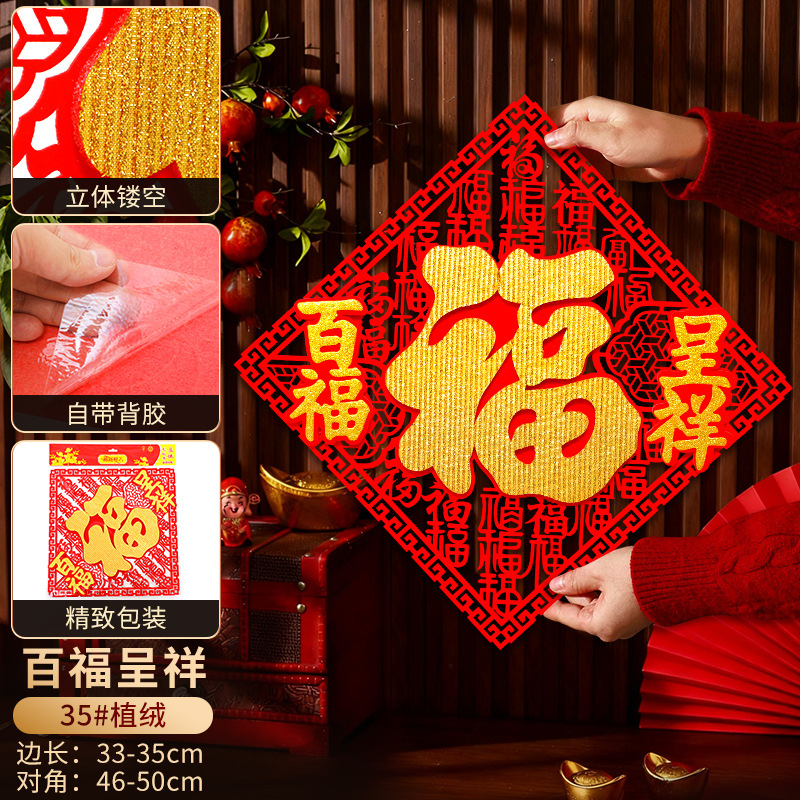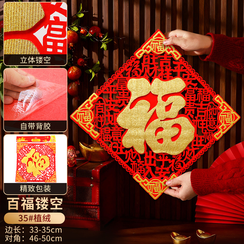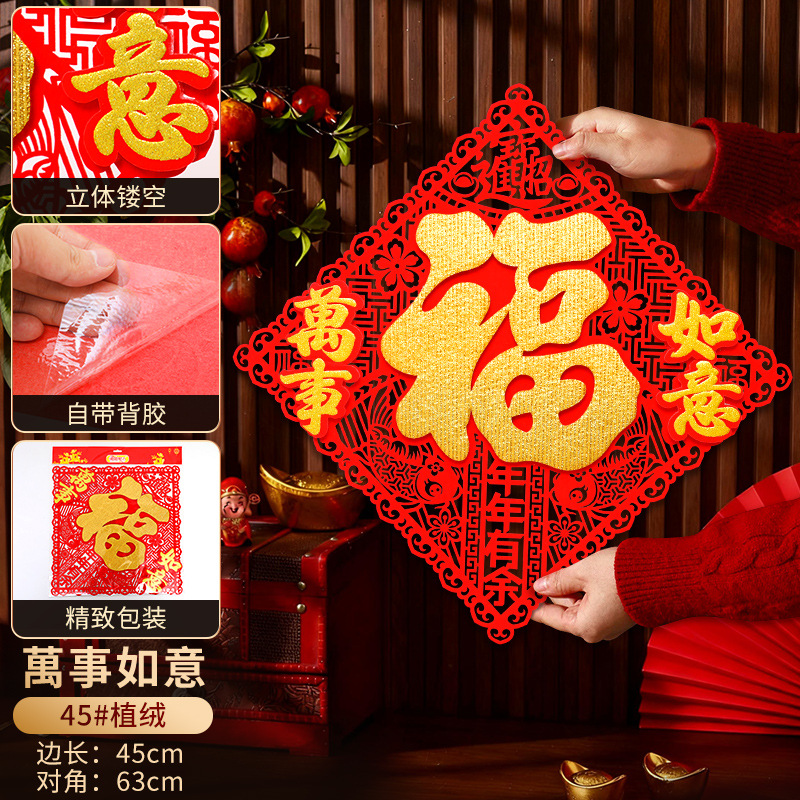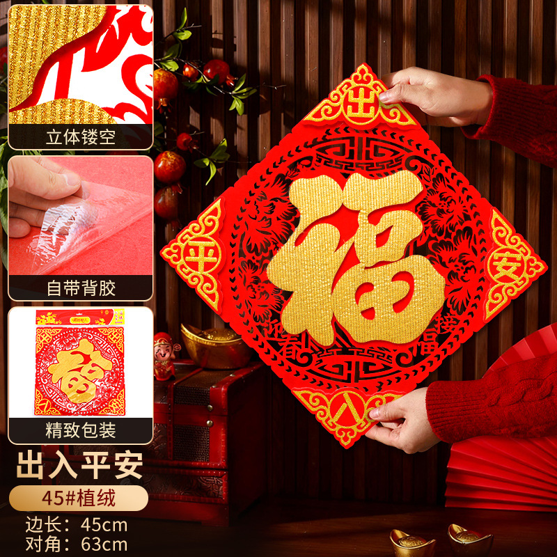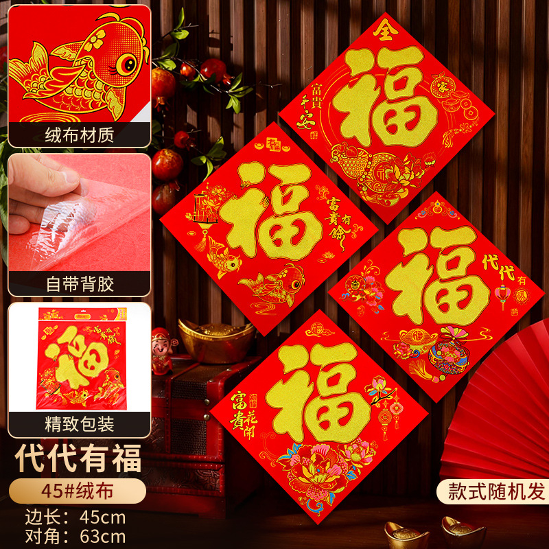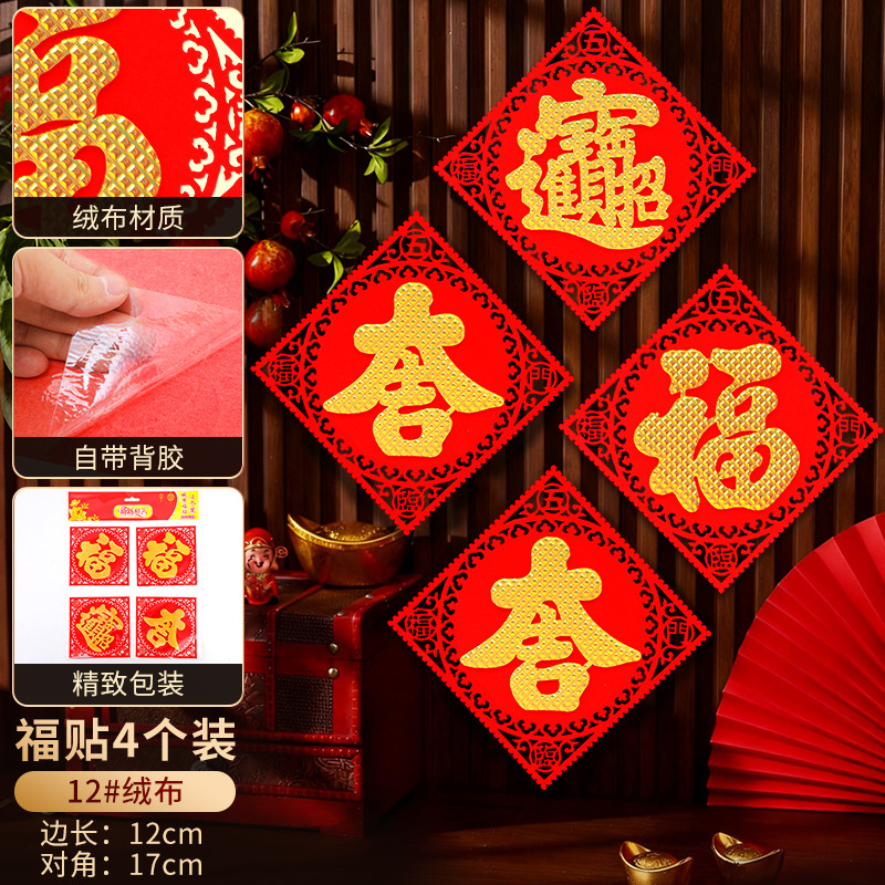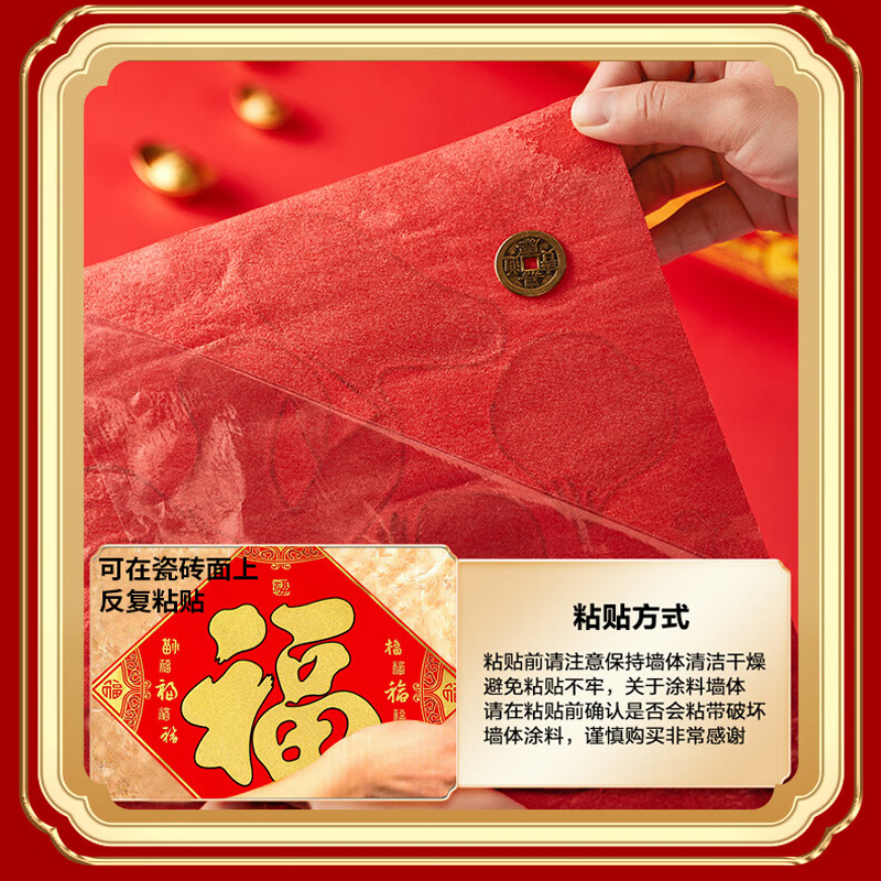 2026立体福字门贴自粘新年装饰马年贴纸过年春节用品福字贴批发