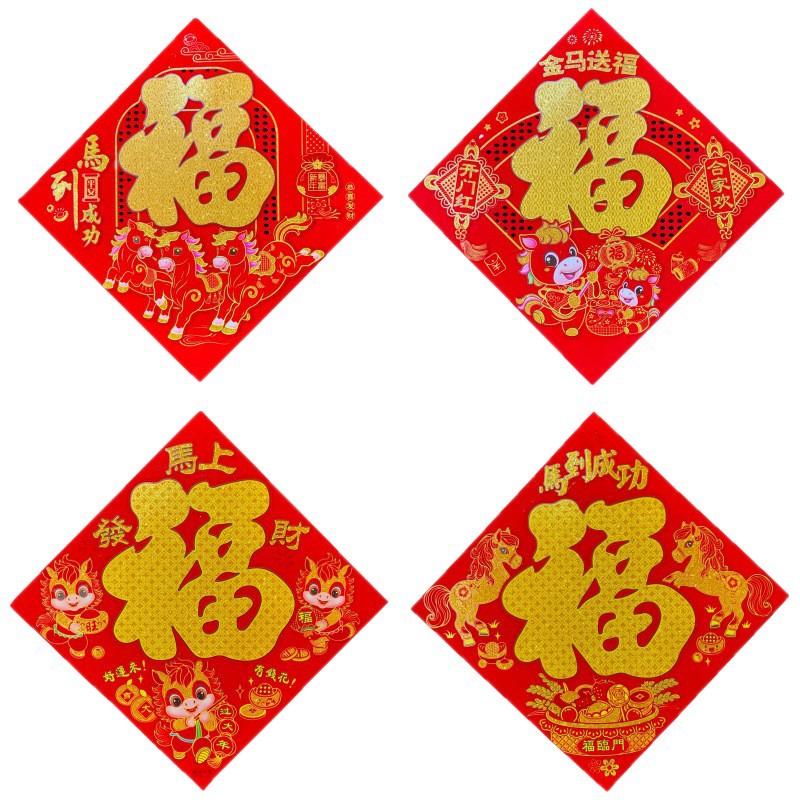 马年条胶平面卡纸撒粉生肖福字贴春节新年喜庆植绒福字门贴
