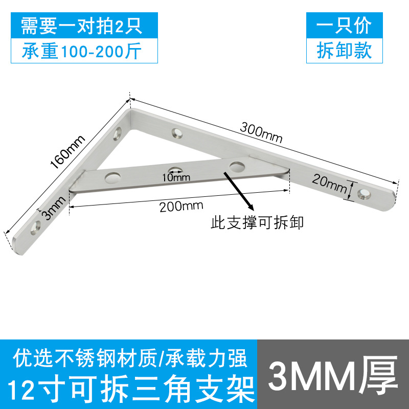 迪尼特加厚不锈钢三角支架层板托墙上置物架隔板固定壁挂墙上支架
