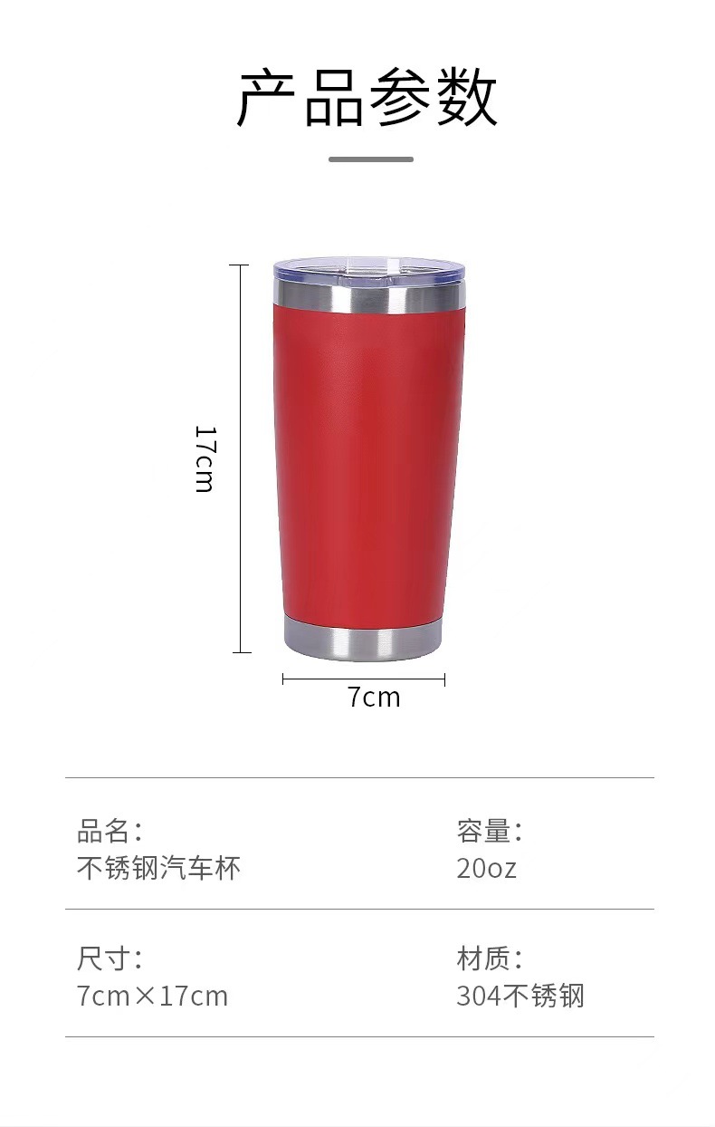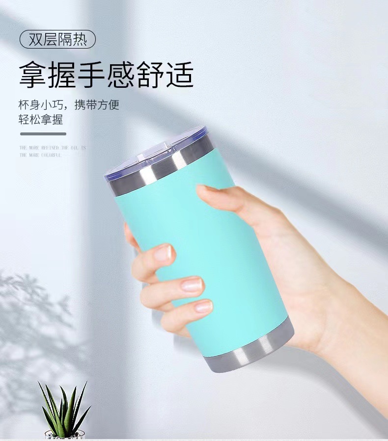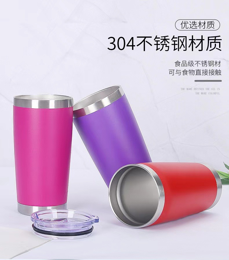 厂家直供现货20oz汽车杯304不锈钢双层真空喷塑车载冰霸杯可乐杯