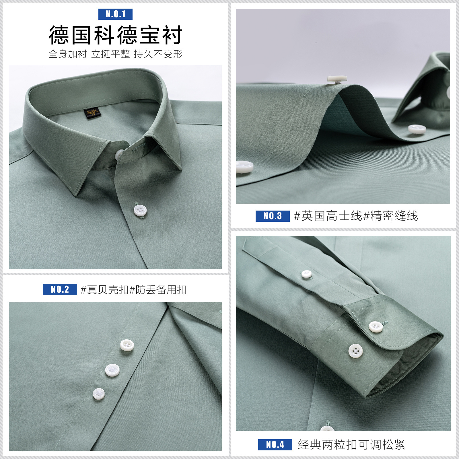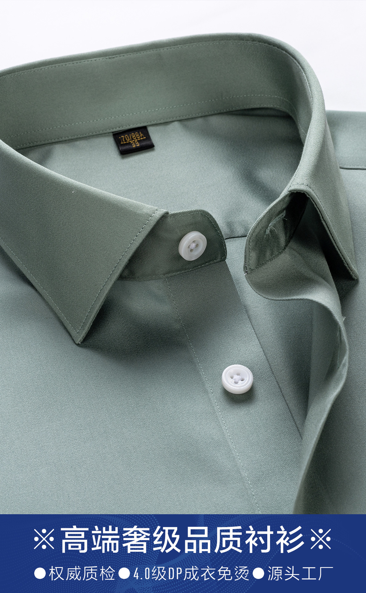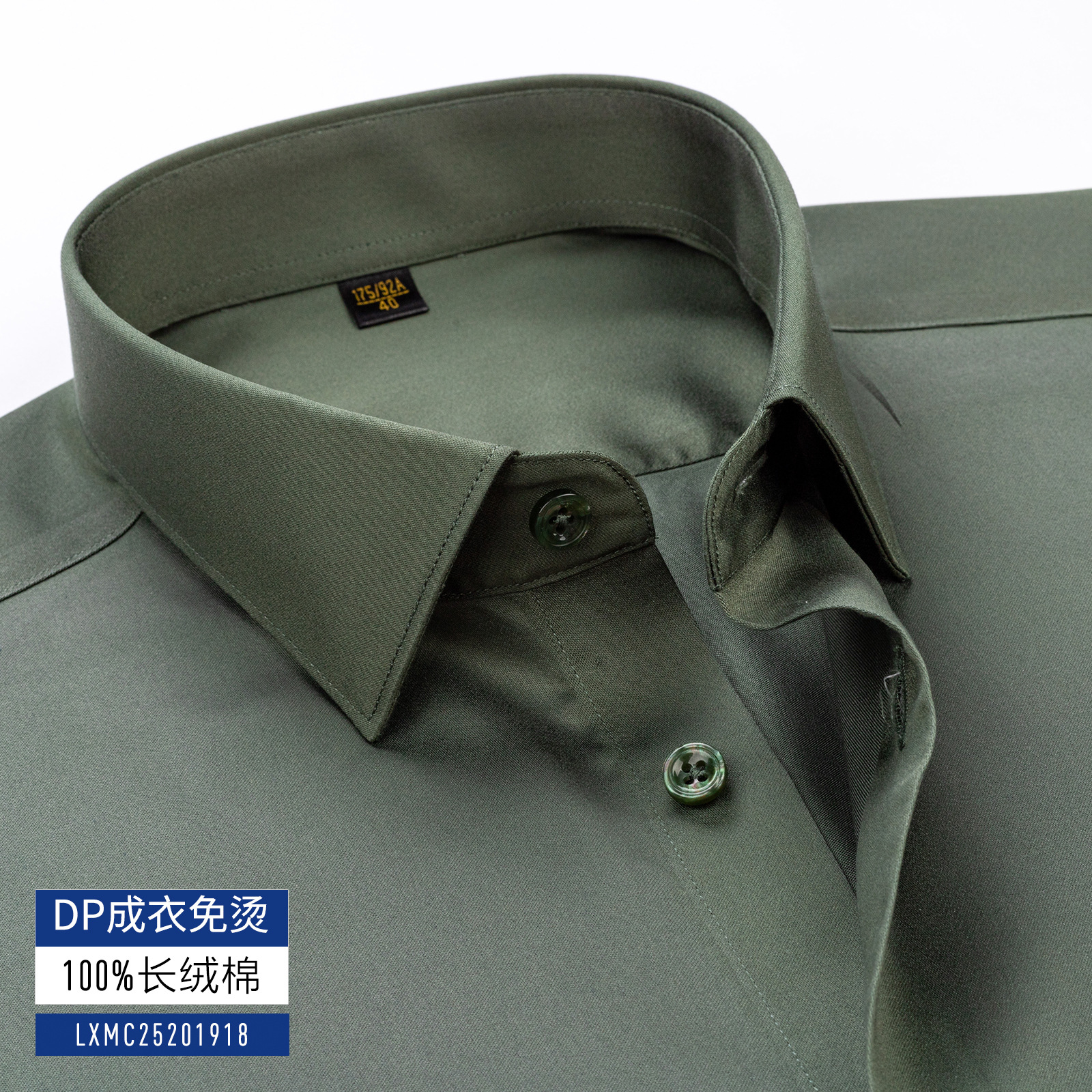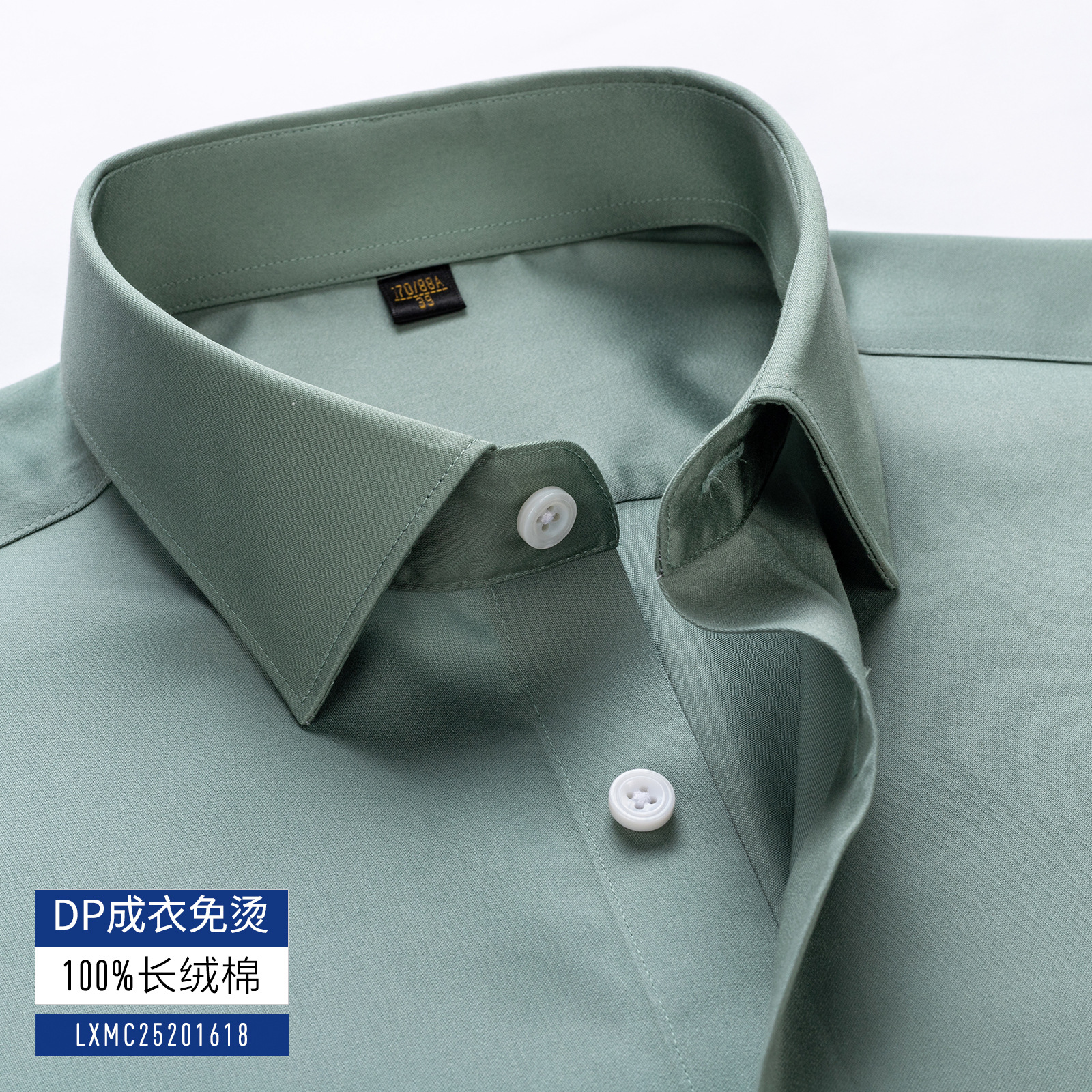 DP成衣免烫男士衬衫抗皱商务休闲豆绿色长袖纯棉衬衣男200支四股