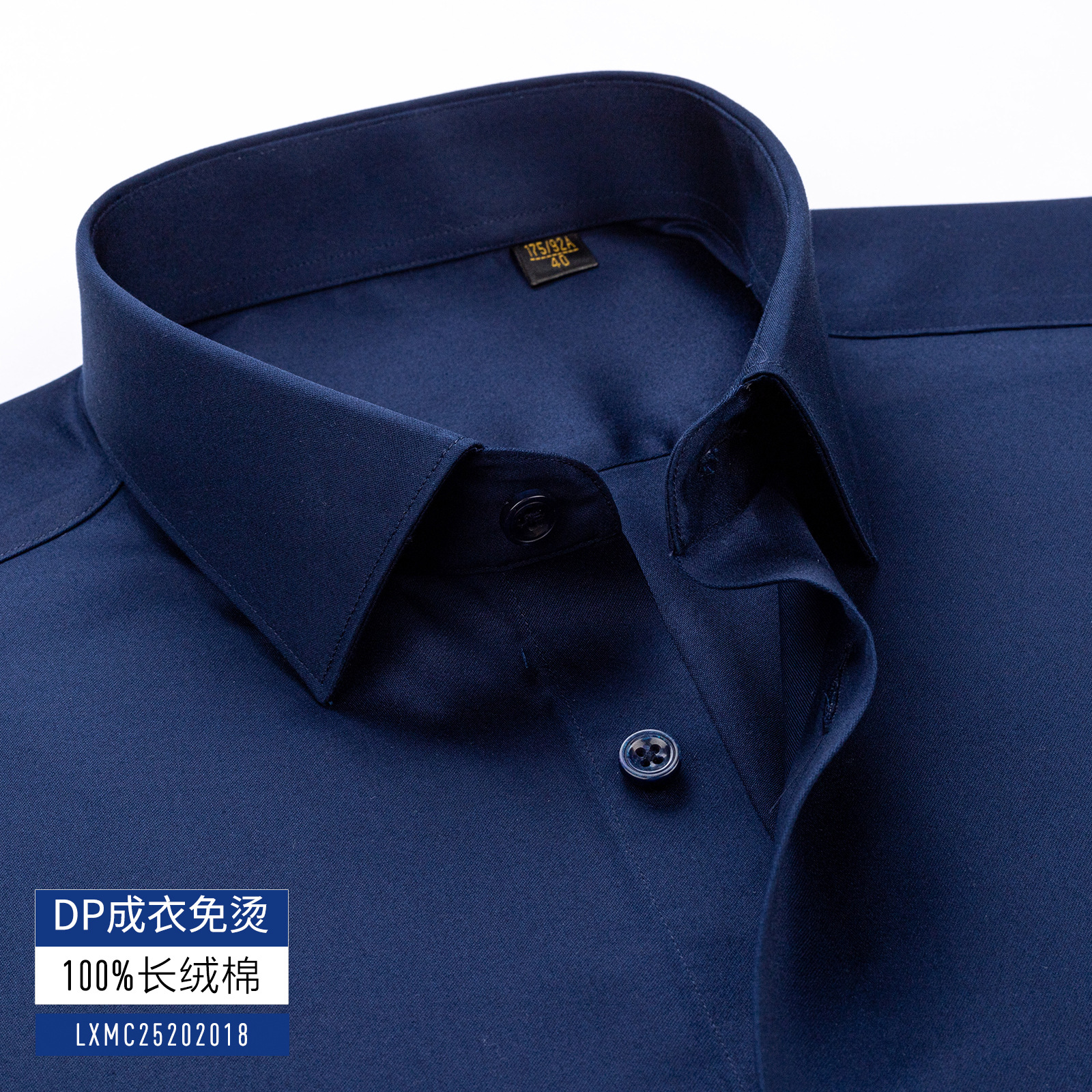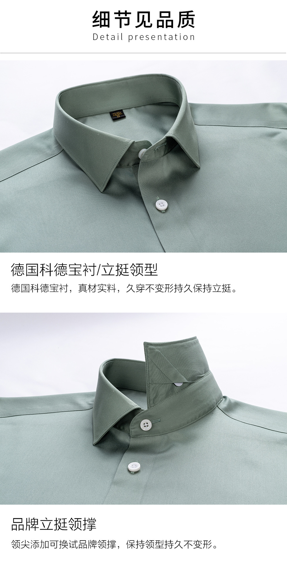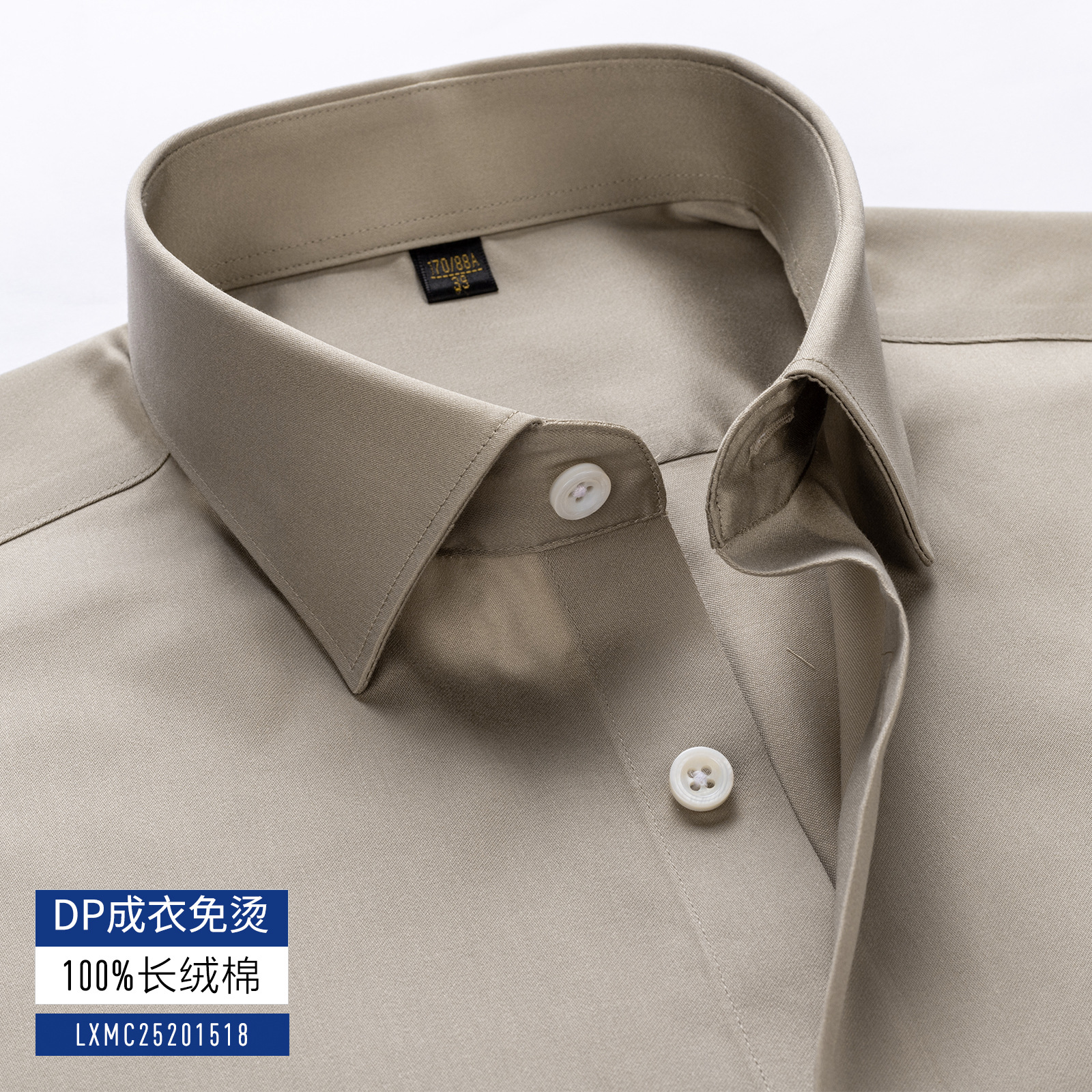 DP成衣免烫男士衬衫抗皱商务休闲豆绿色长袖纯棉衬衣男200支四股