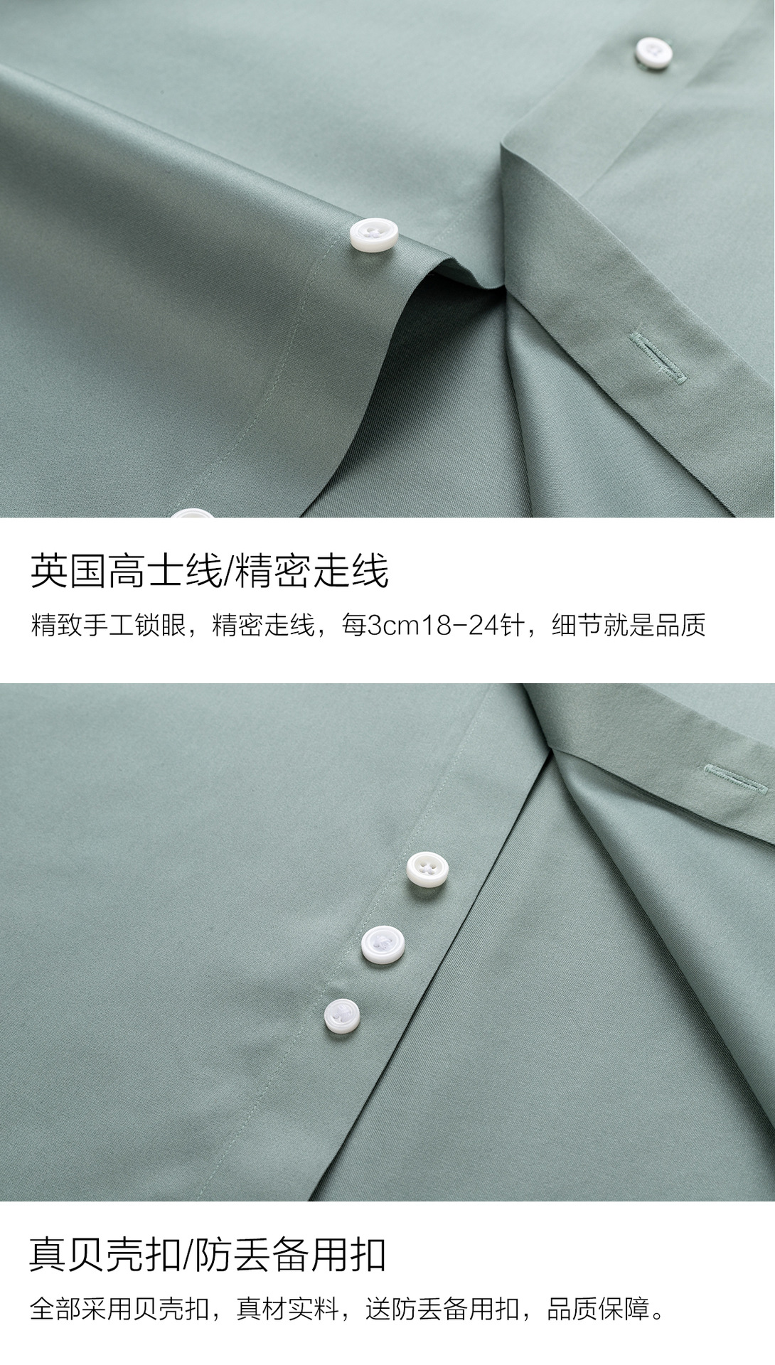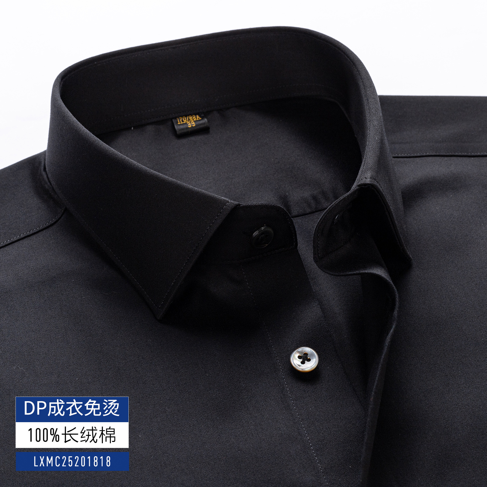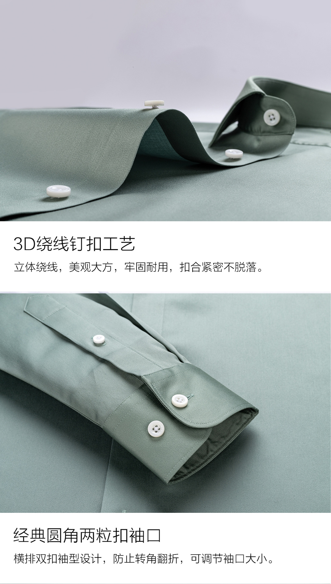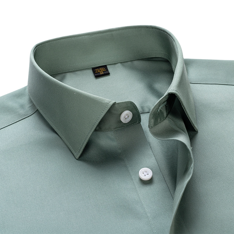 DP成衣免烫男士衬衫抗皱商务休闲豆绿色长袖纯棉衬衣男200支四股