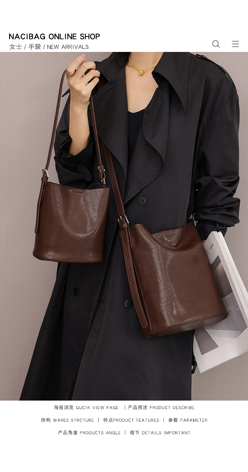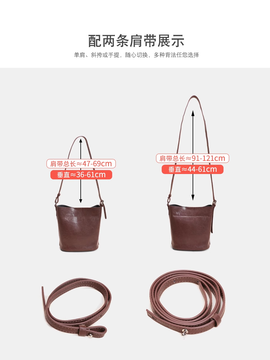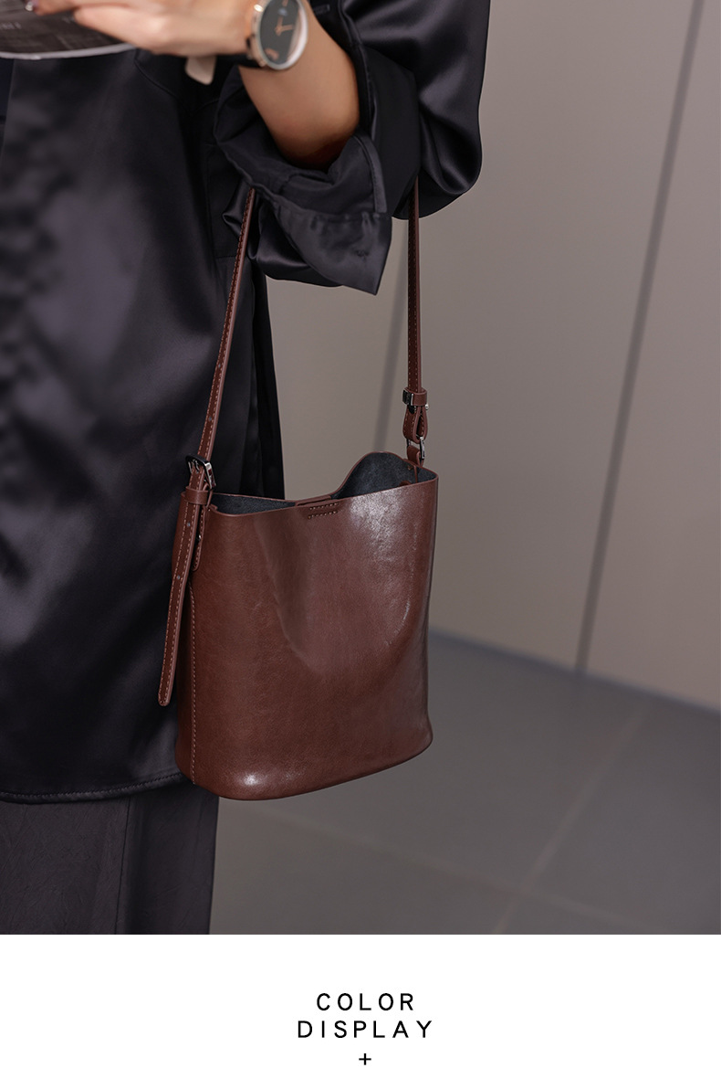 植鞣牛皮水桶包包女2025新款真皮女包时尚复古斜挎包通勤单肩包包