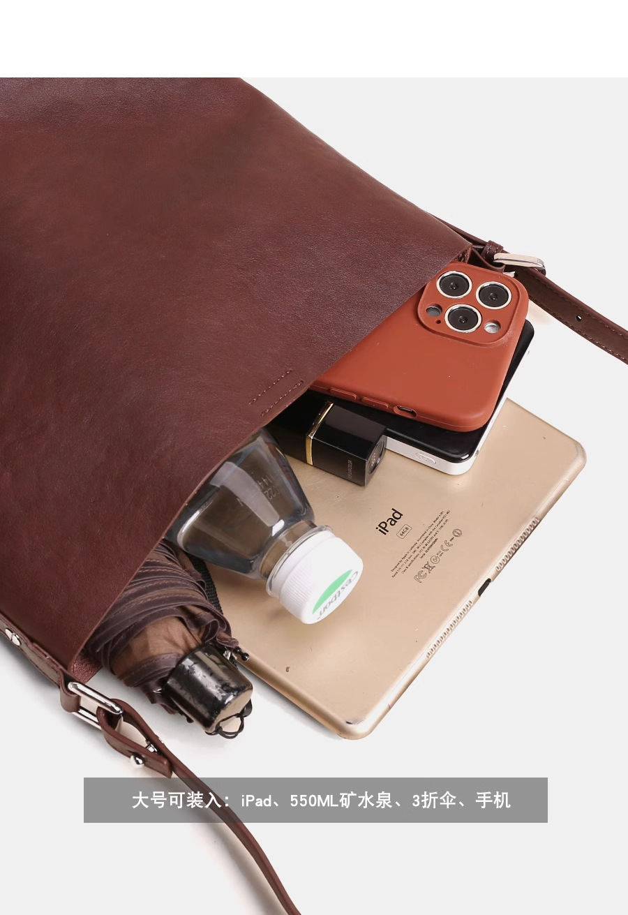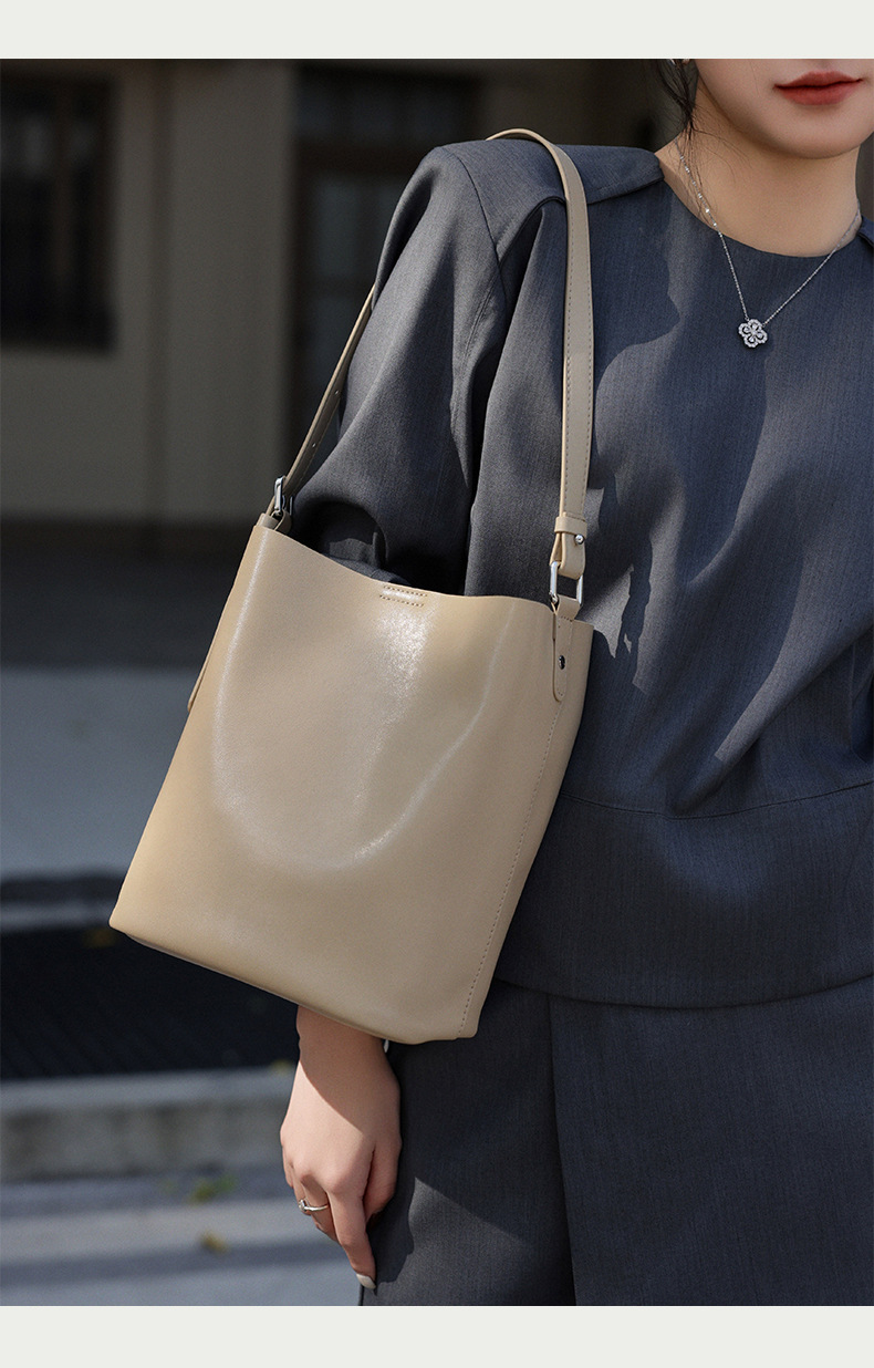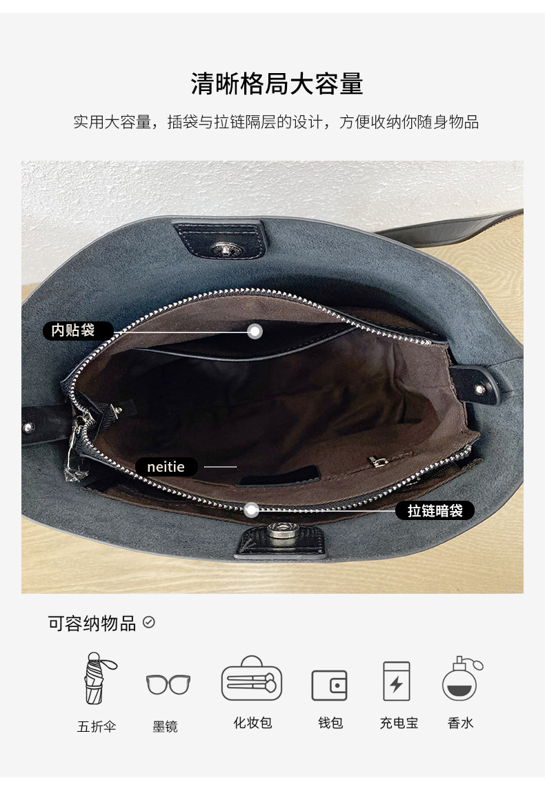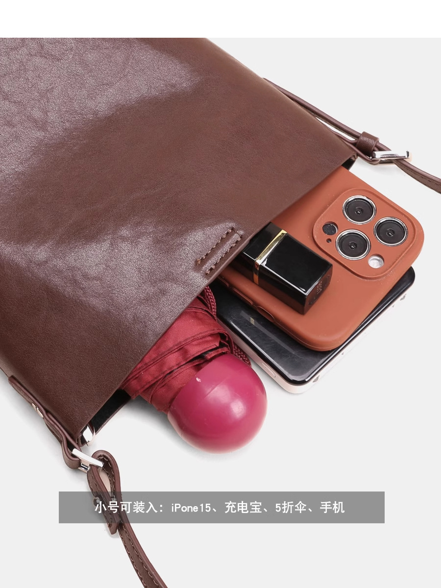 植鞣牛皮水桶包包女2025新款真皮女包时尚复古斜挎包通勤单肩包包