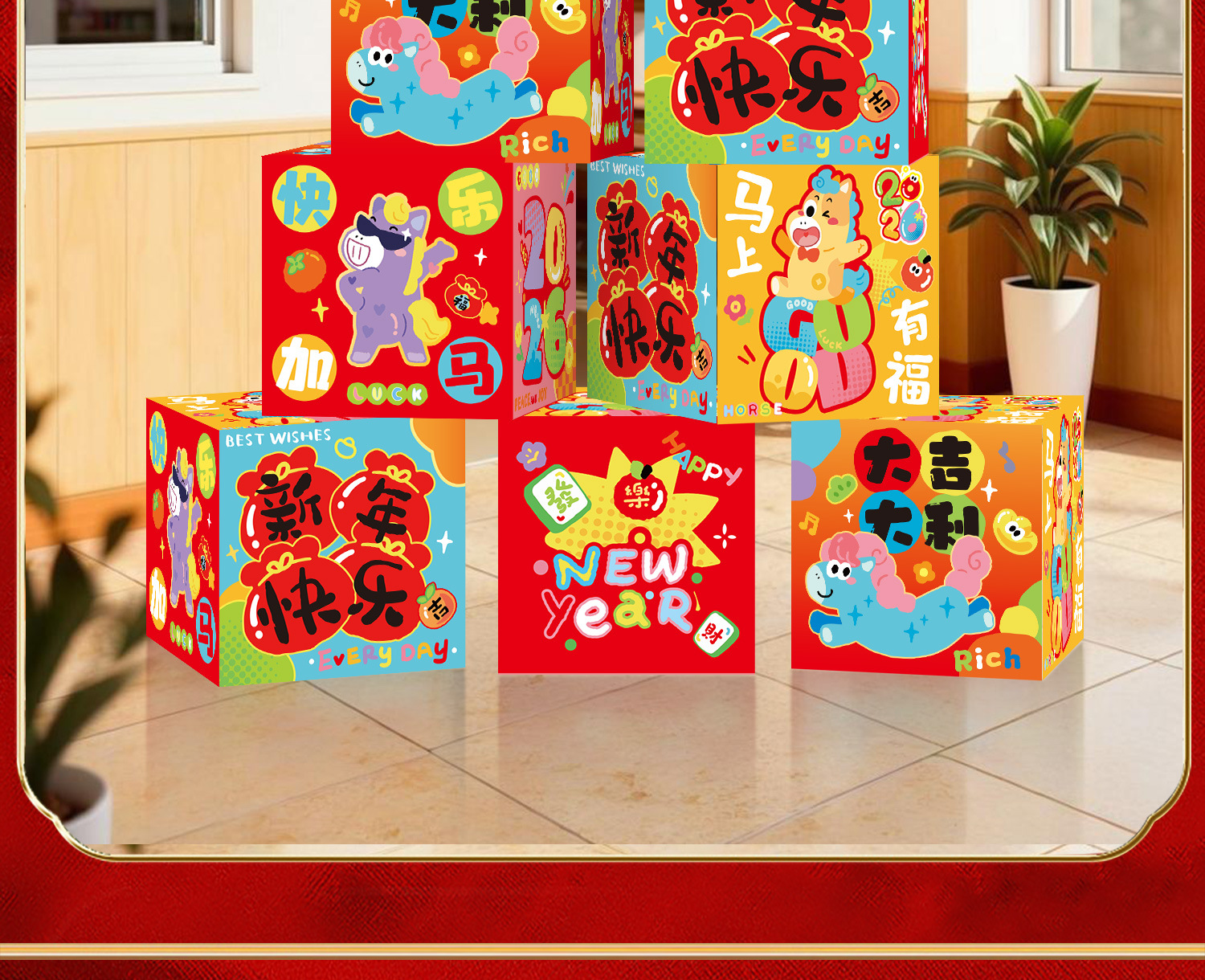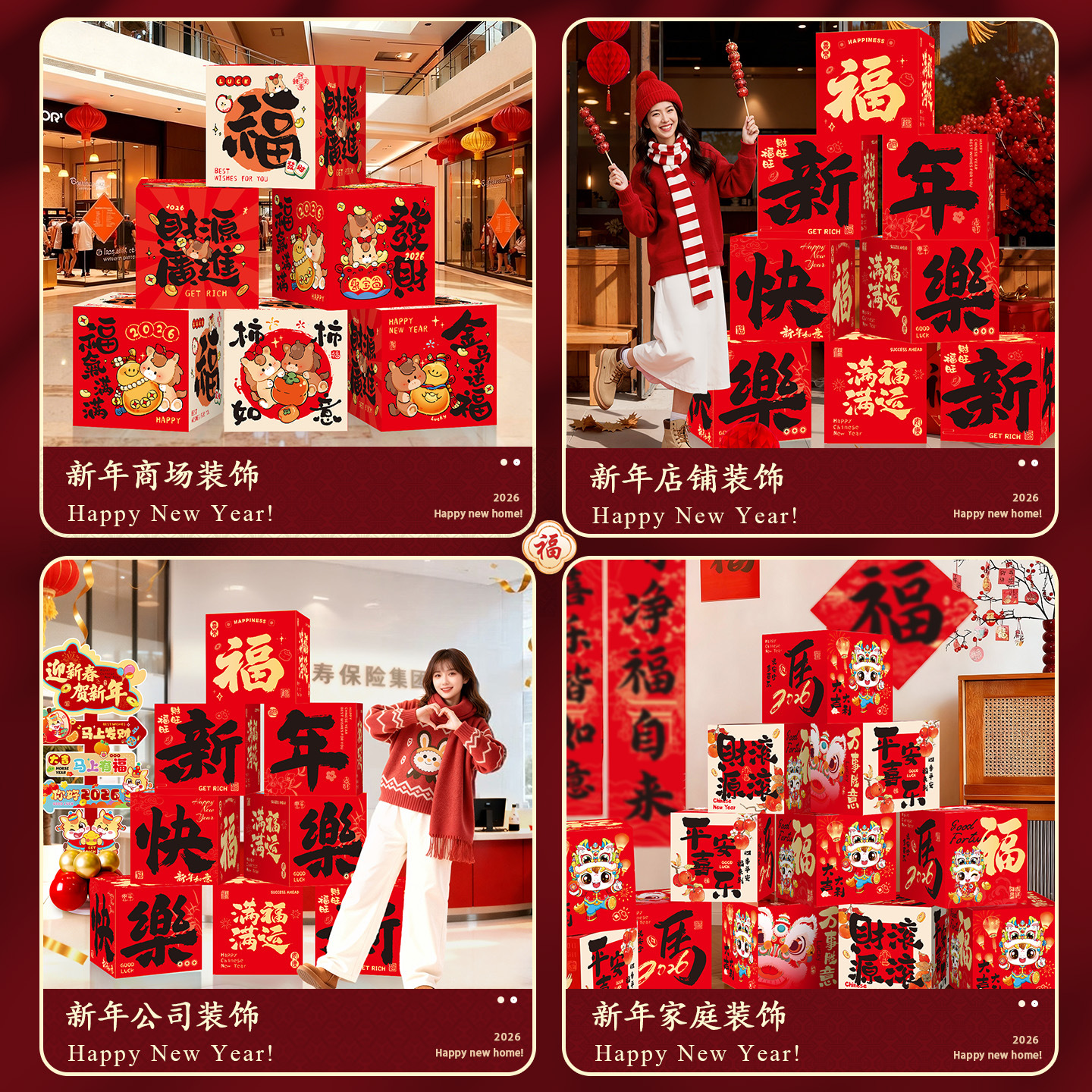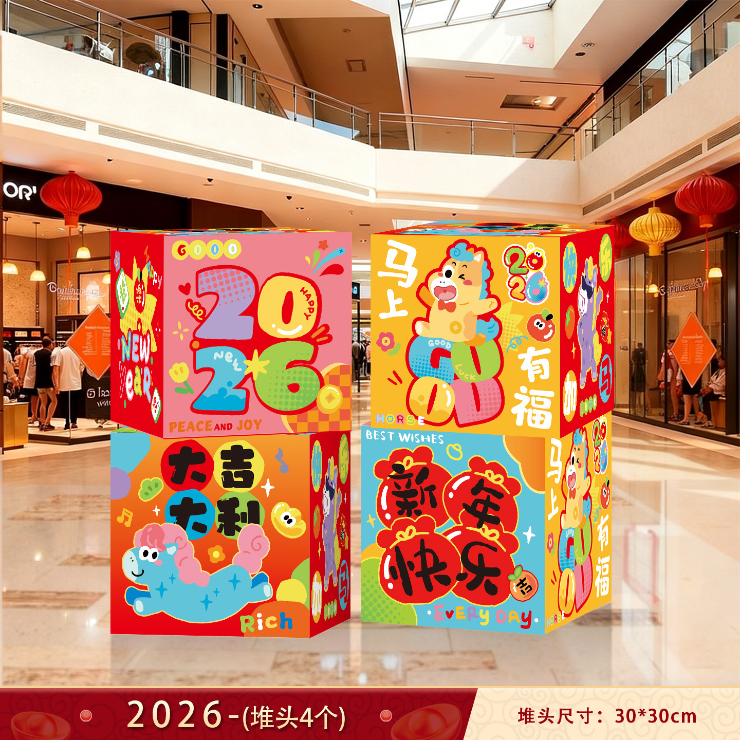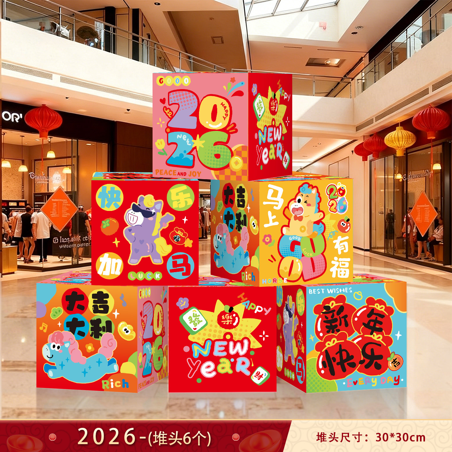 马年堆头2026新年氛围场景布置装饰地堆盒子春节学校商场店铺摆件