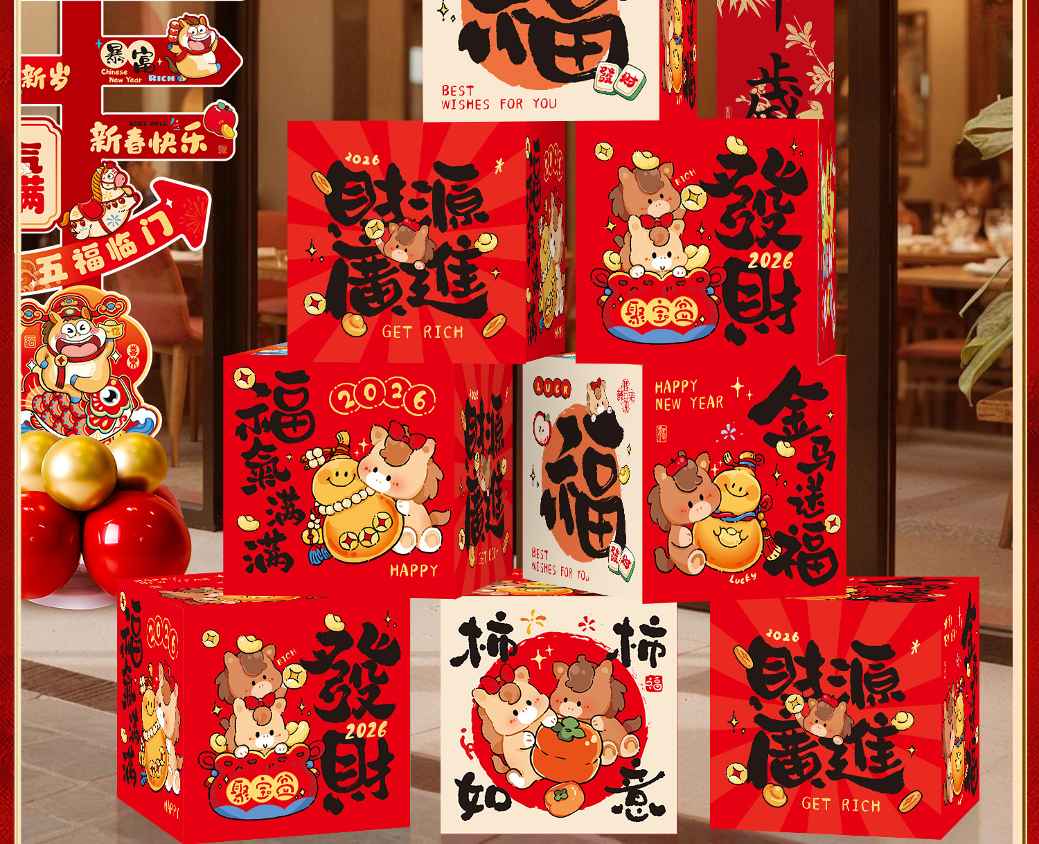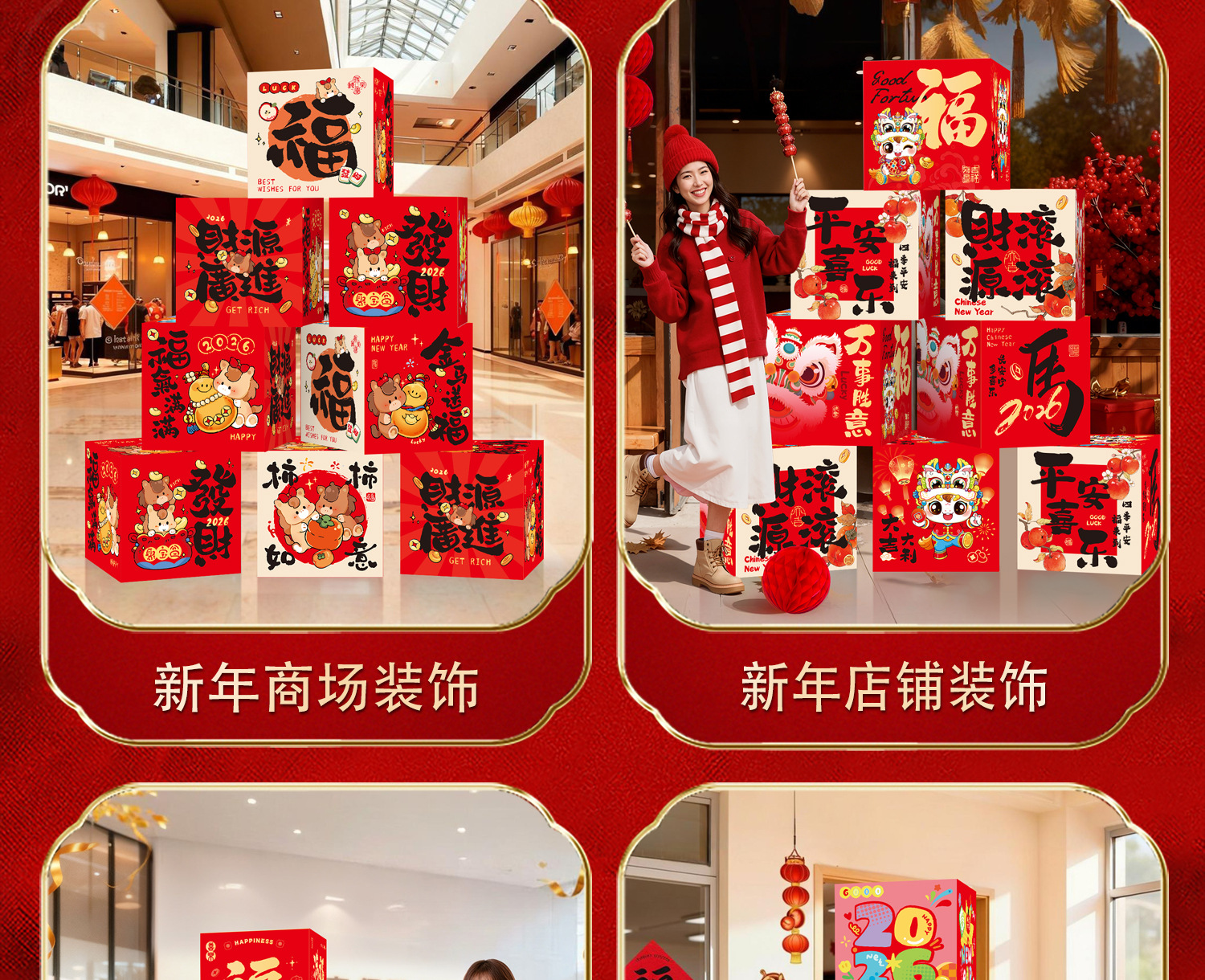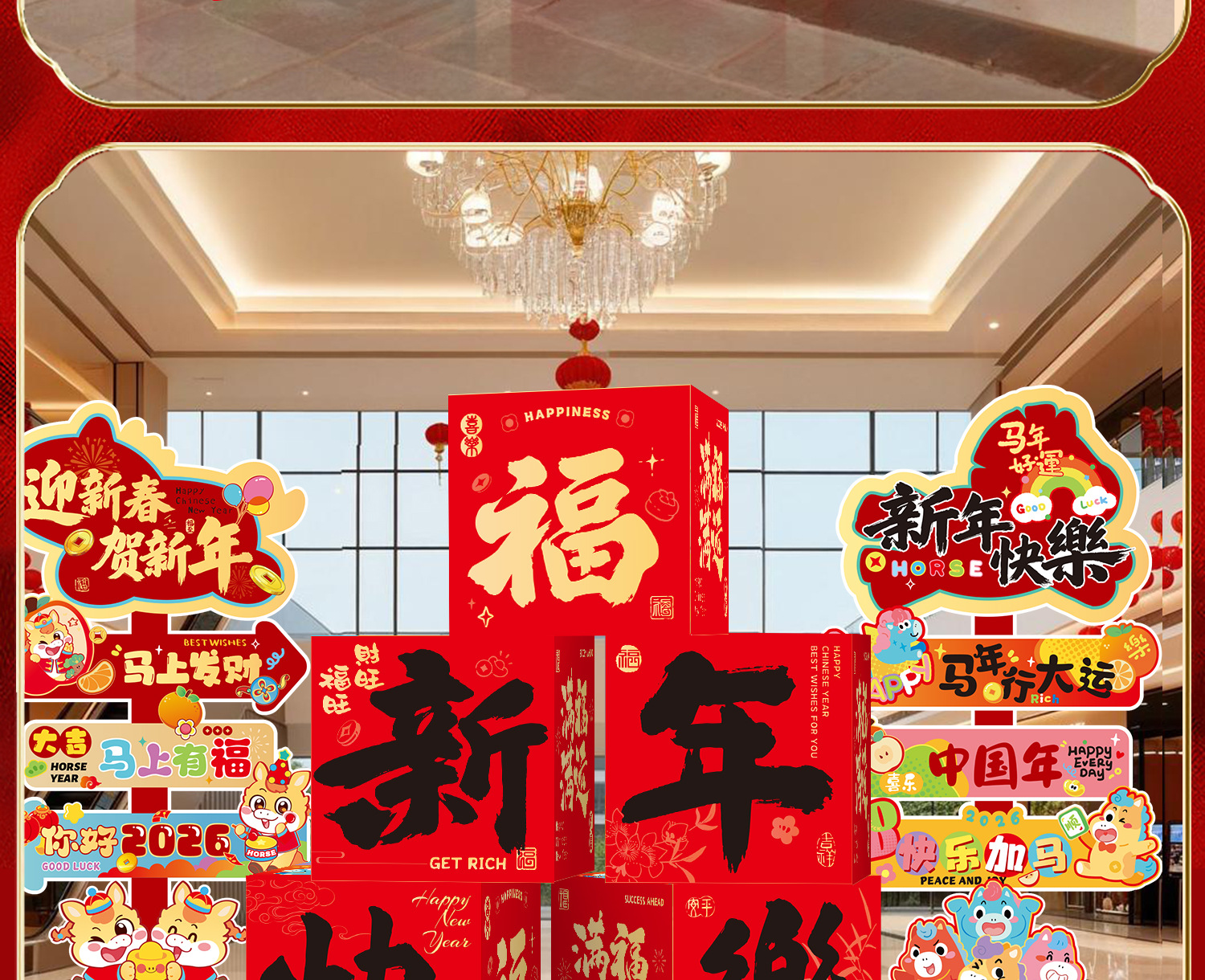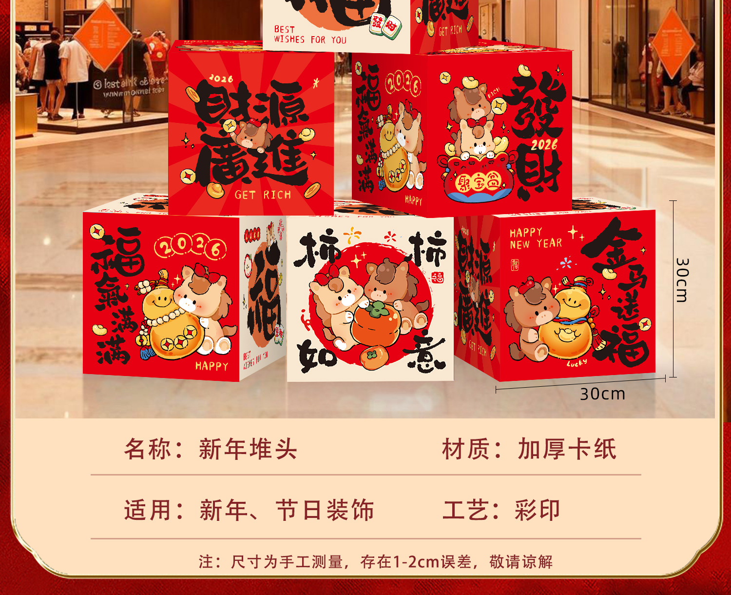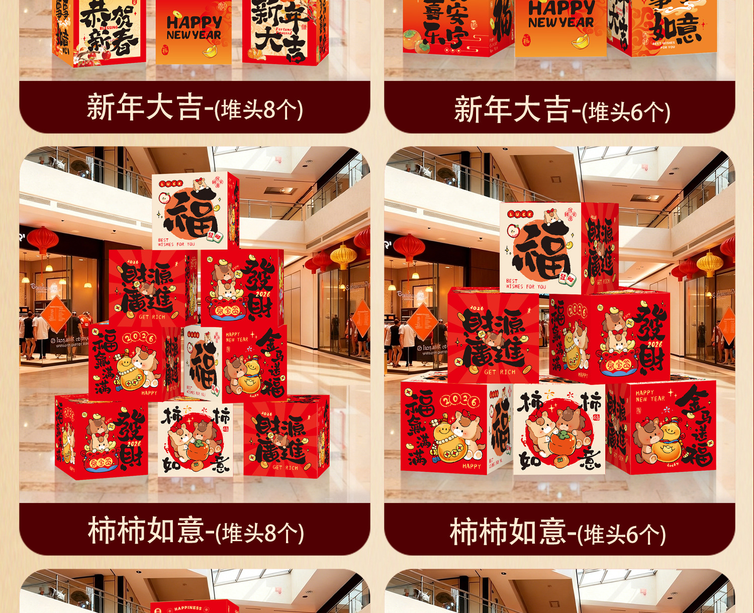 马年堆头2026新年氛围场景布置装饰地堆盒子春节学校商场店铺摆件