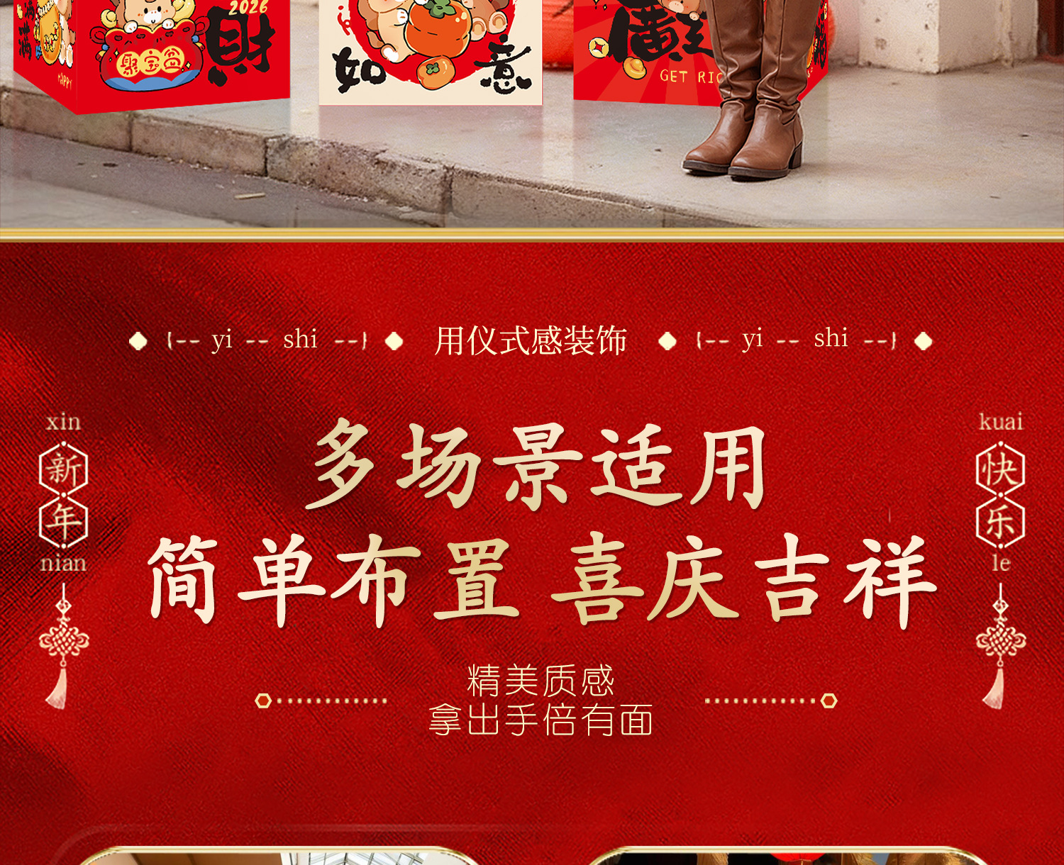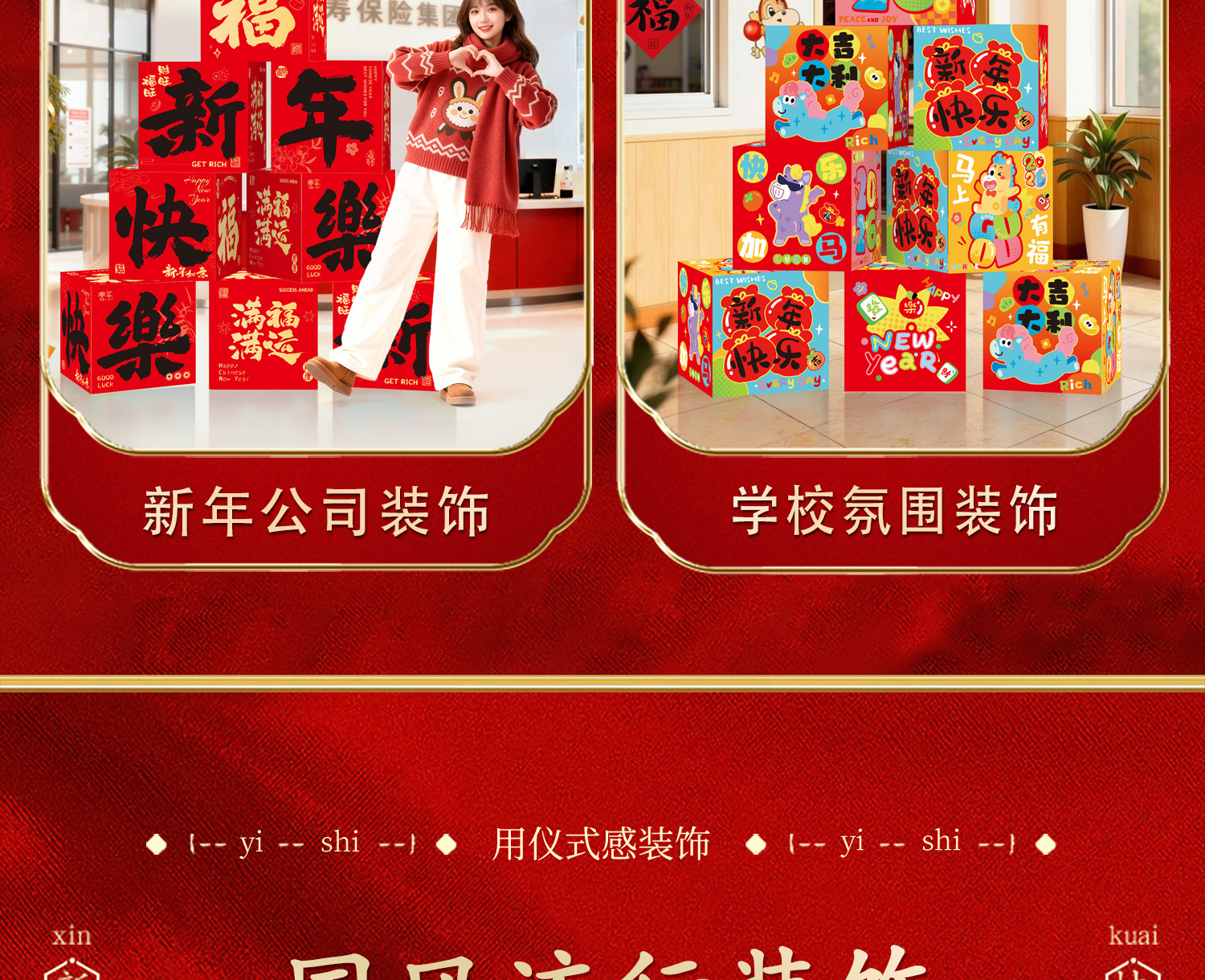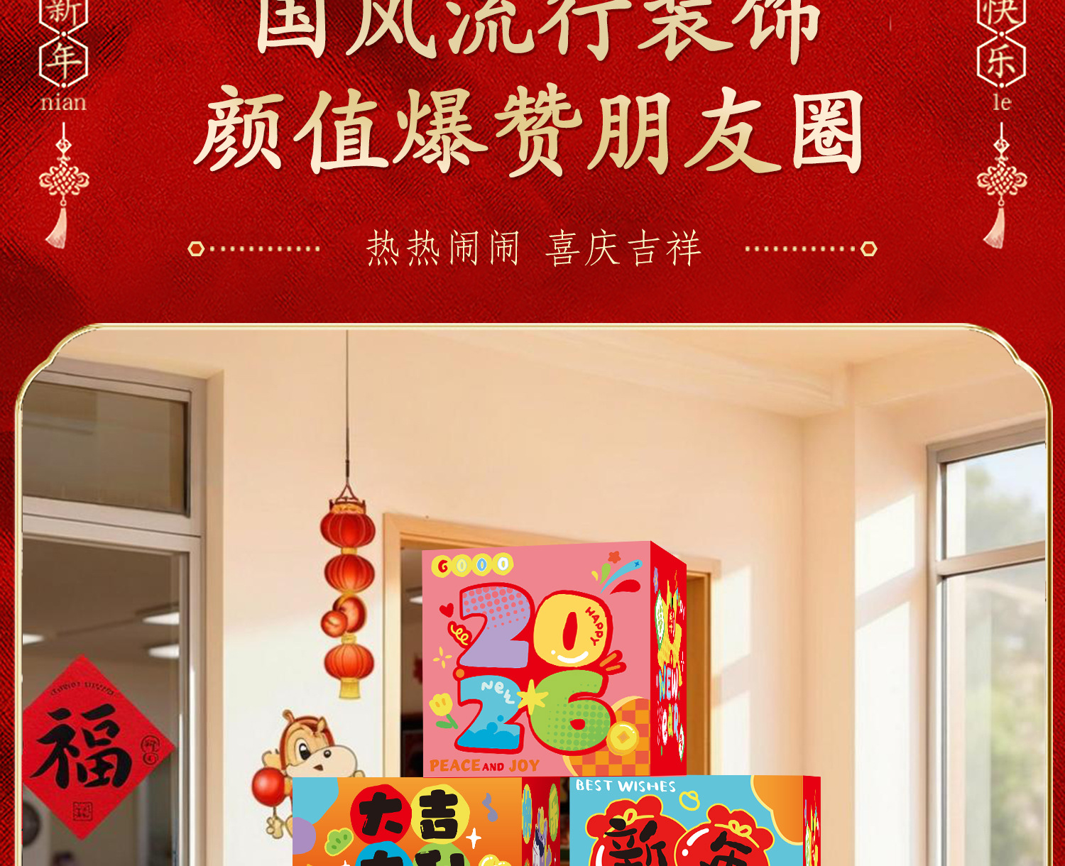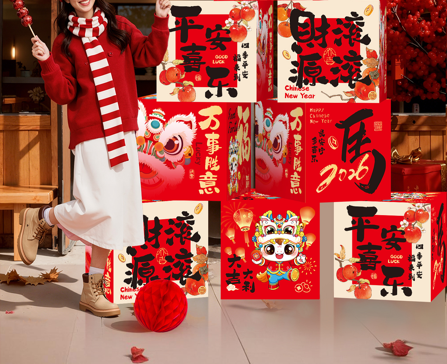 马年堆头2026新年氛围场景布置装饰地堆盒子春节学校商场店铺摆件