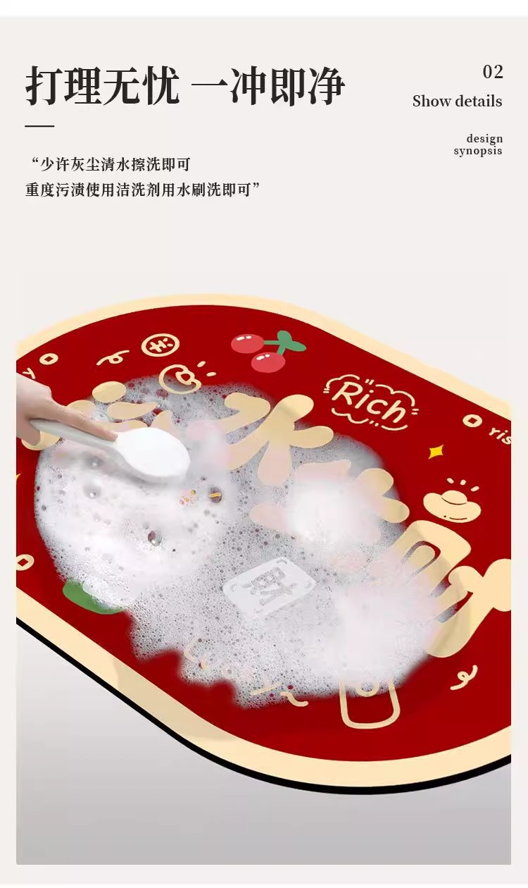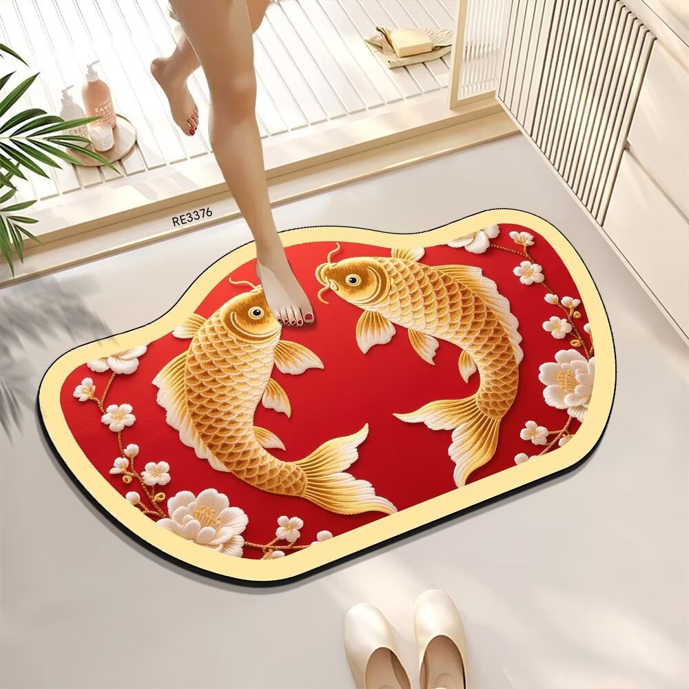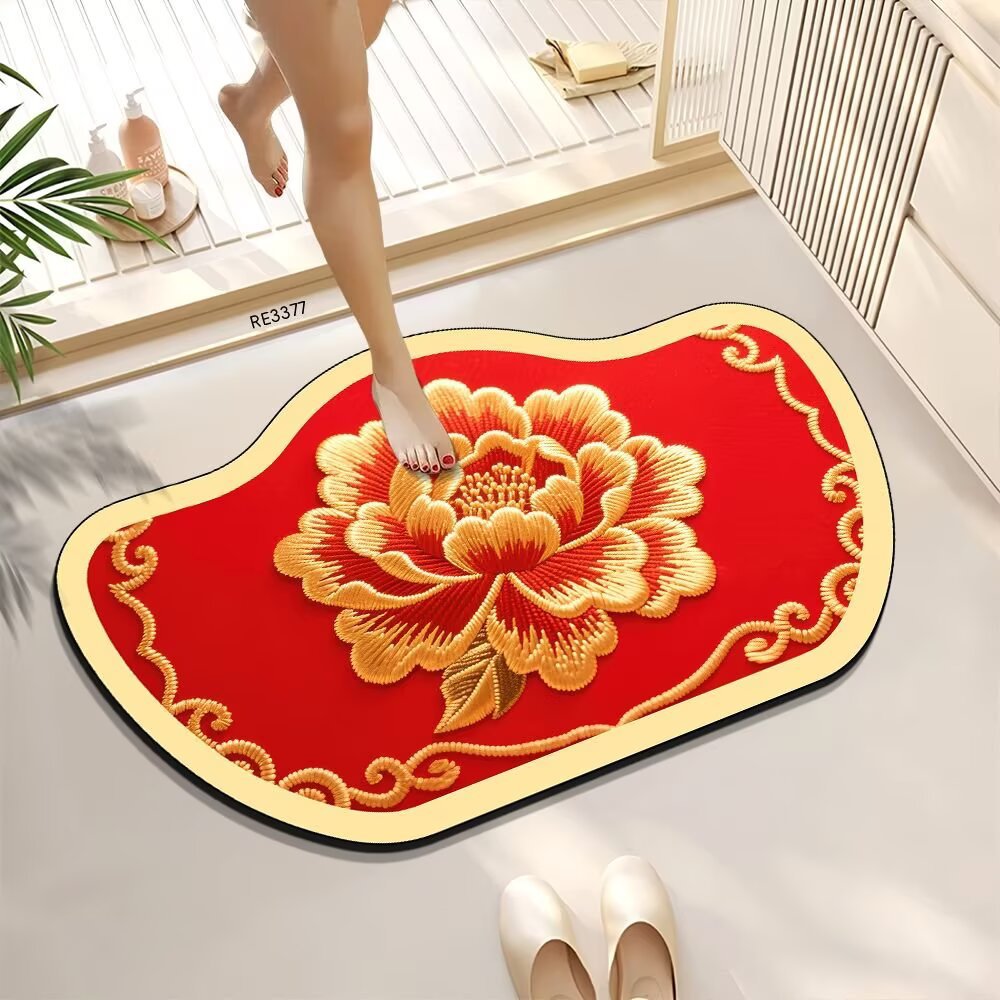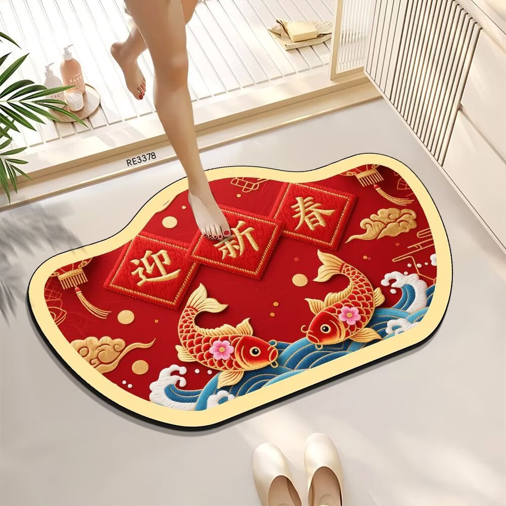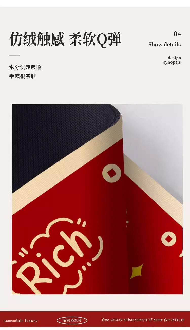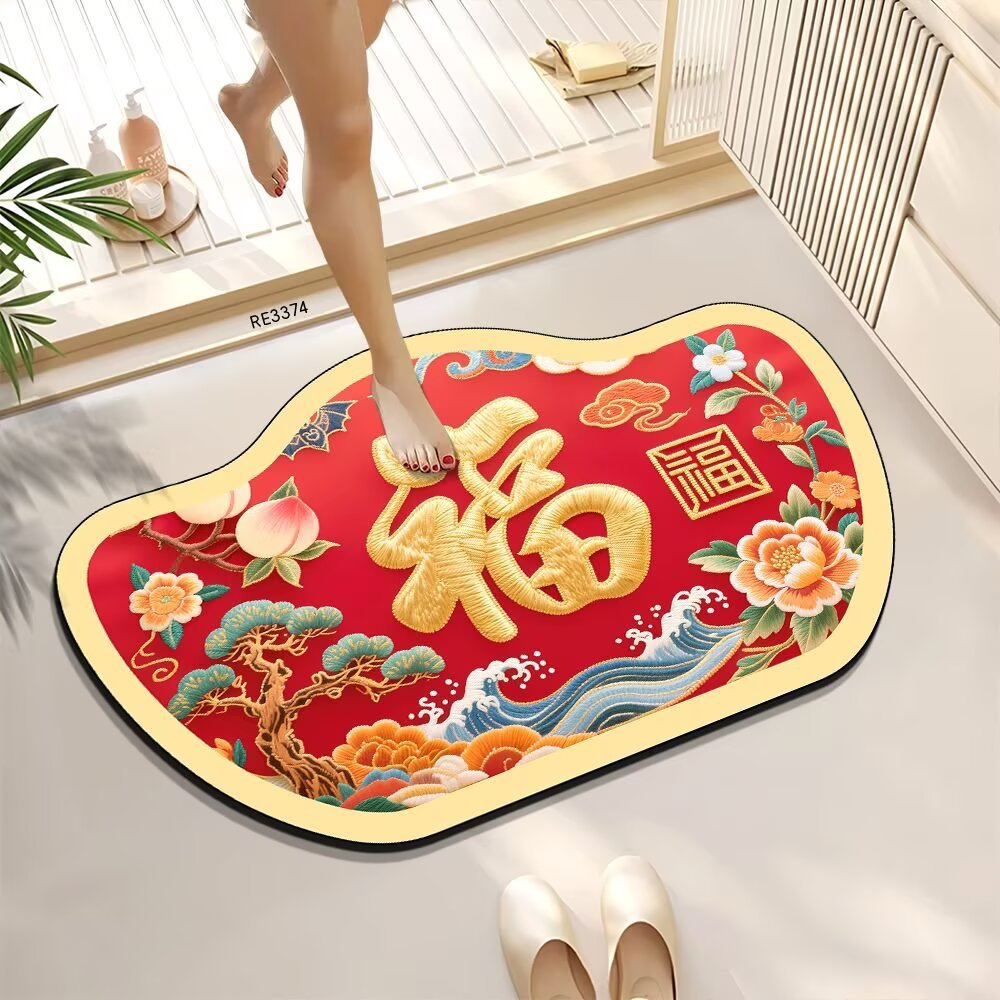 马年春节硅藻泥地垫家用红色喜庆防滑浴室地垫吸水速干卫生间脚垫
