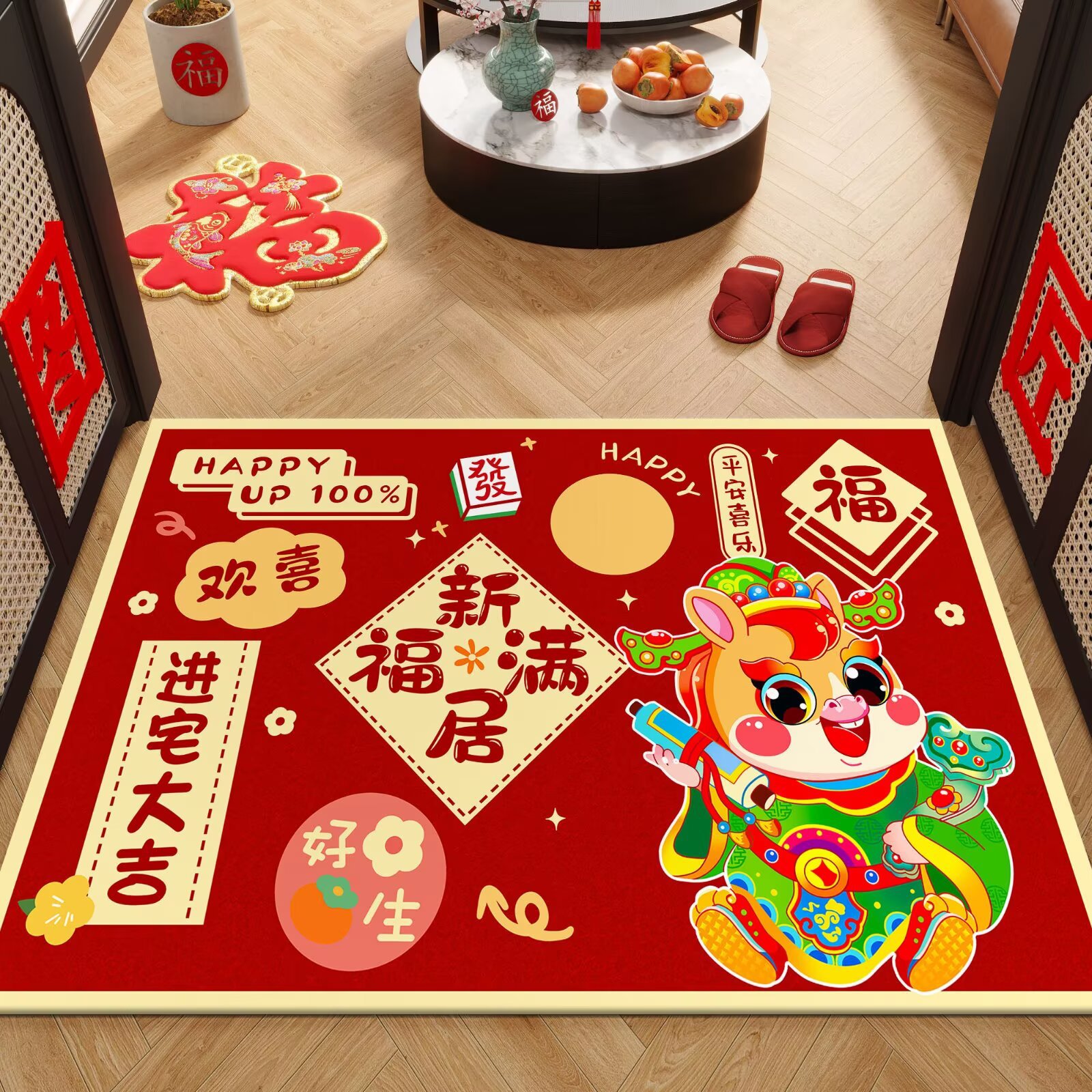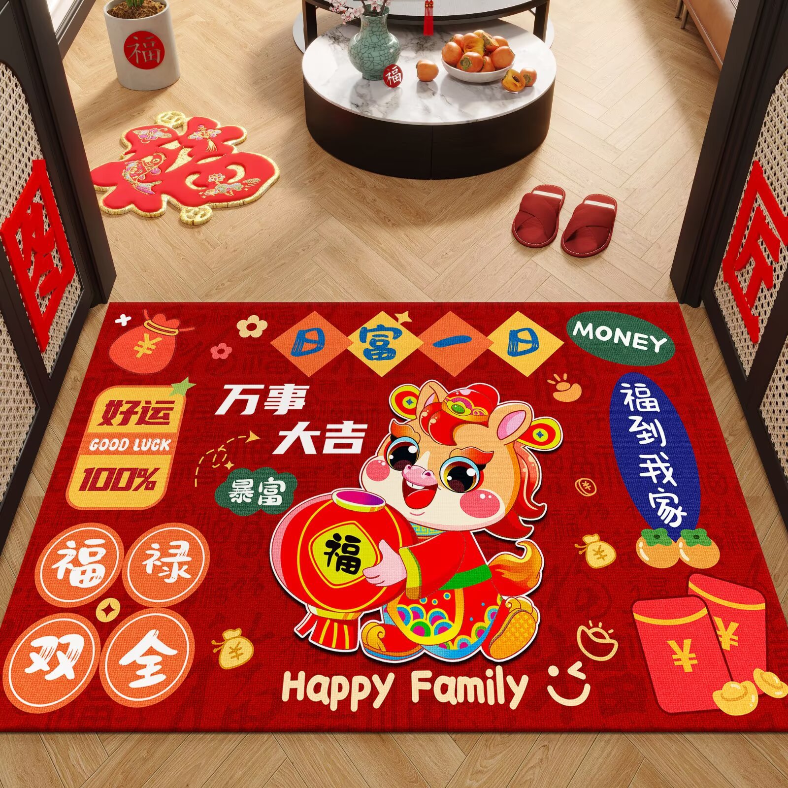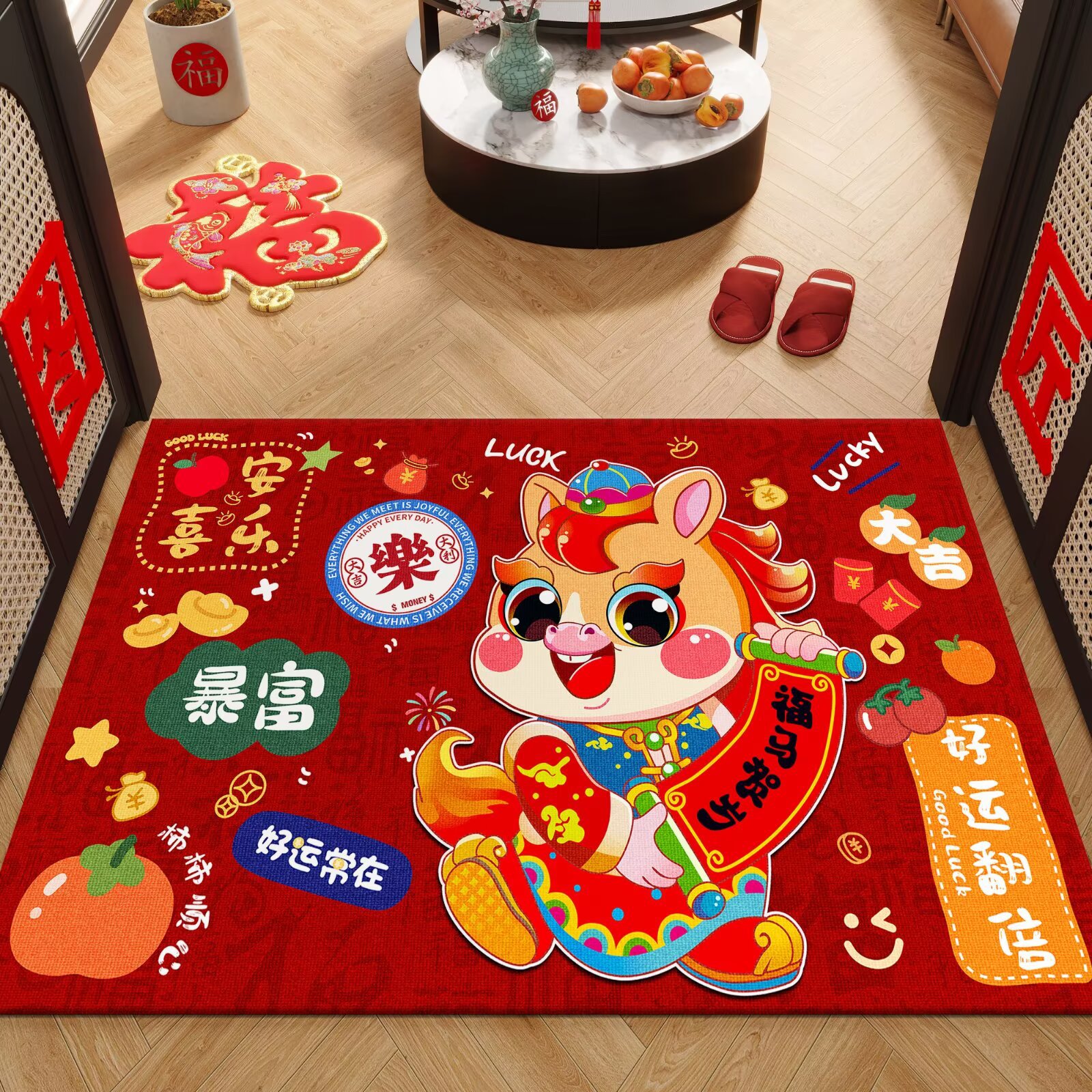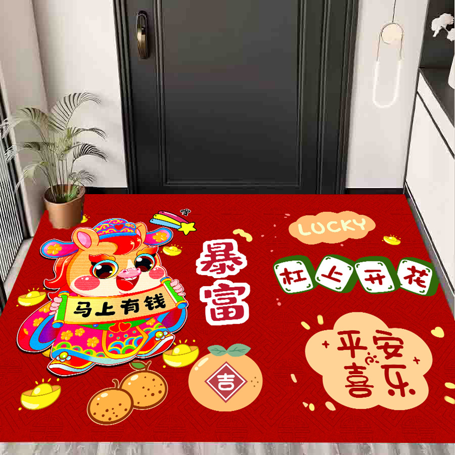 2026年马年地垫红色春节入户喜庆装饰保险公司加LOGO广告语可代发