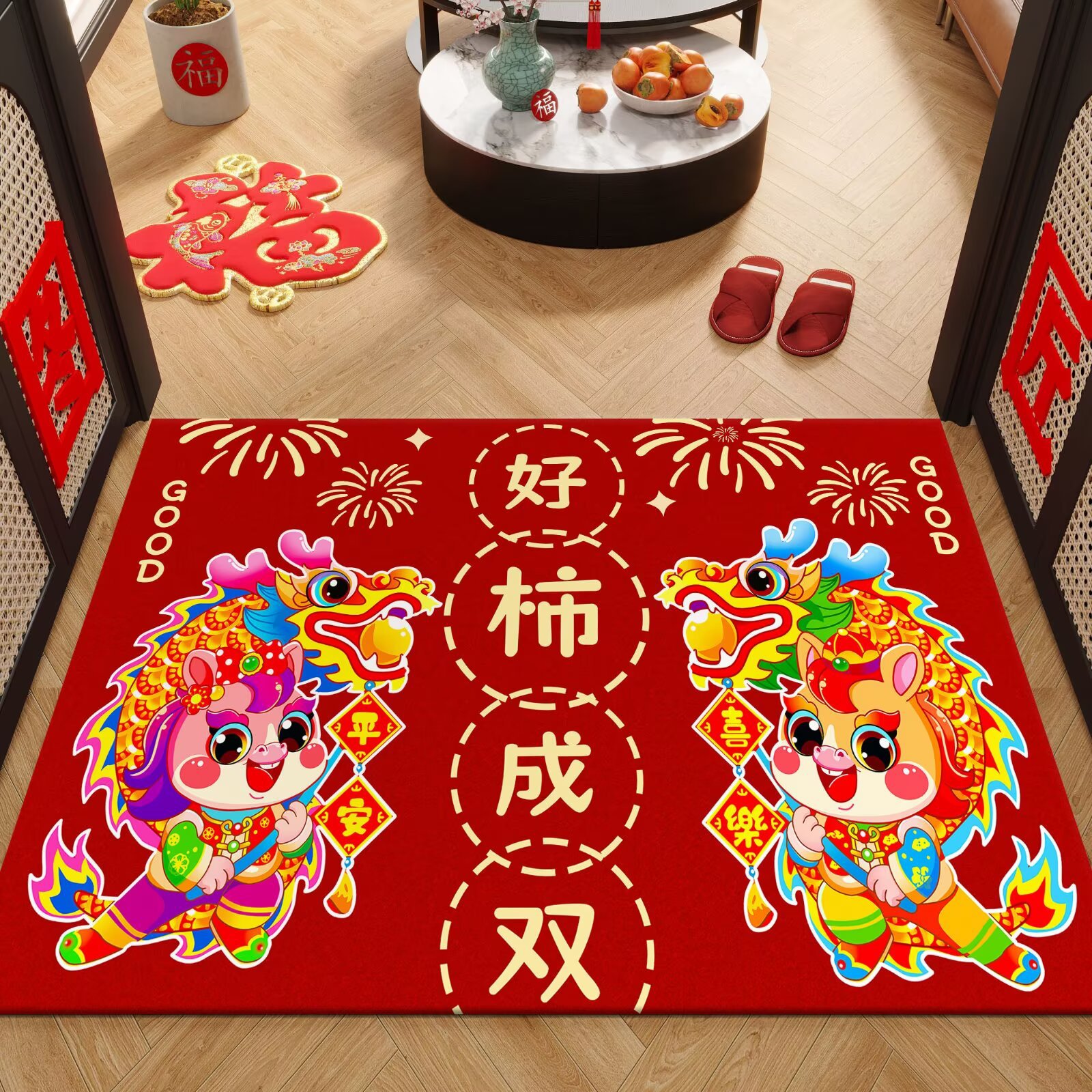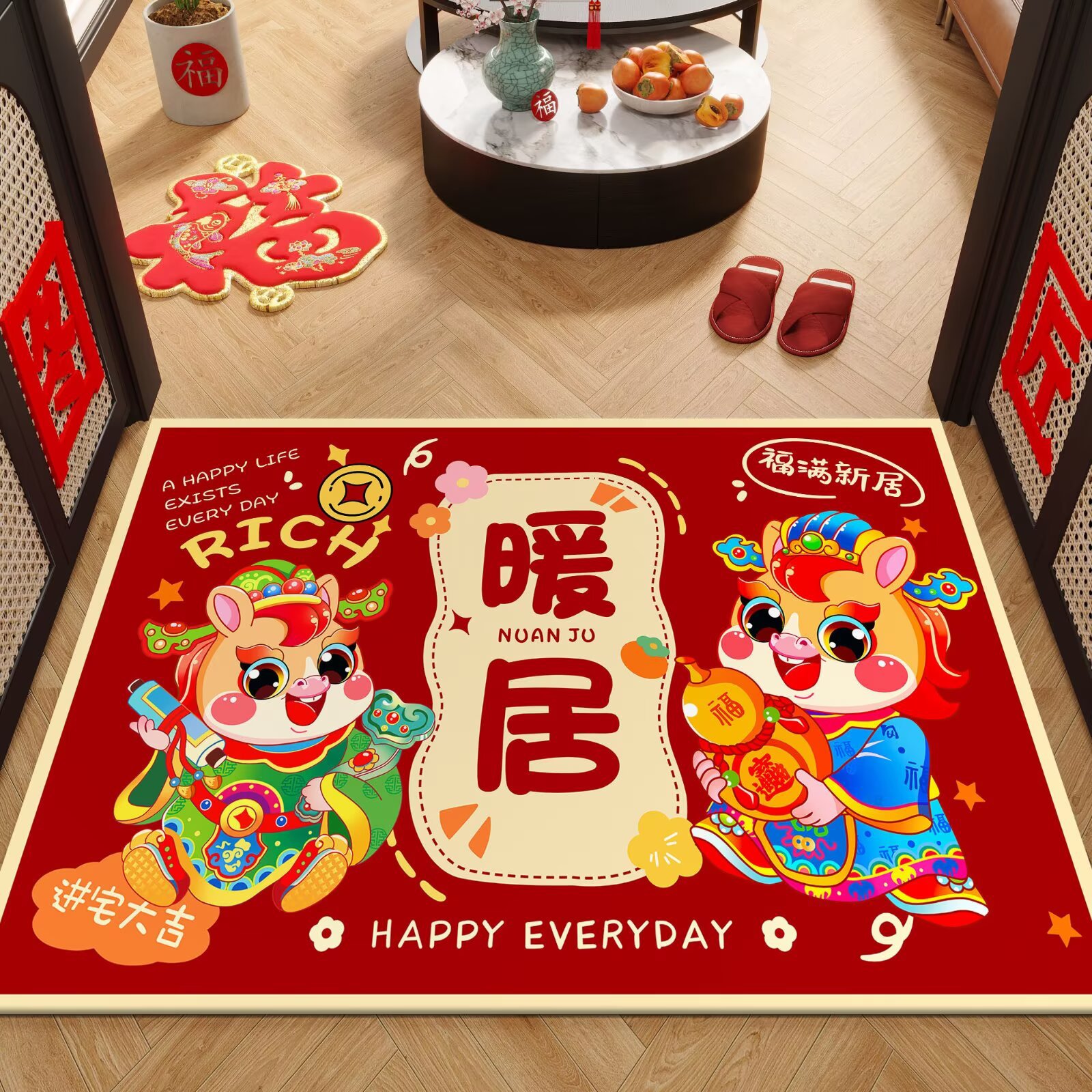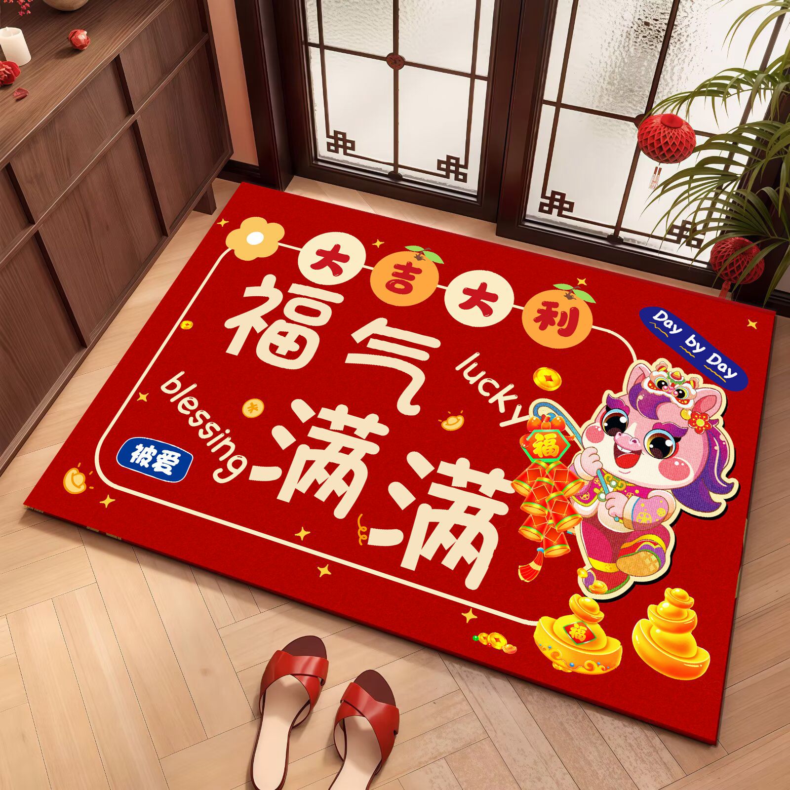 2026年马年地垫红色春节入户喜庆装饰保险公司加LOGO广告语可代发