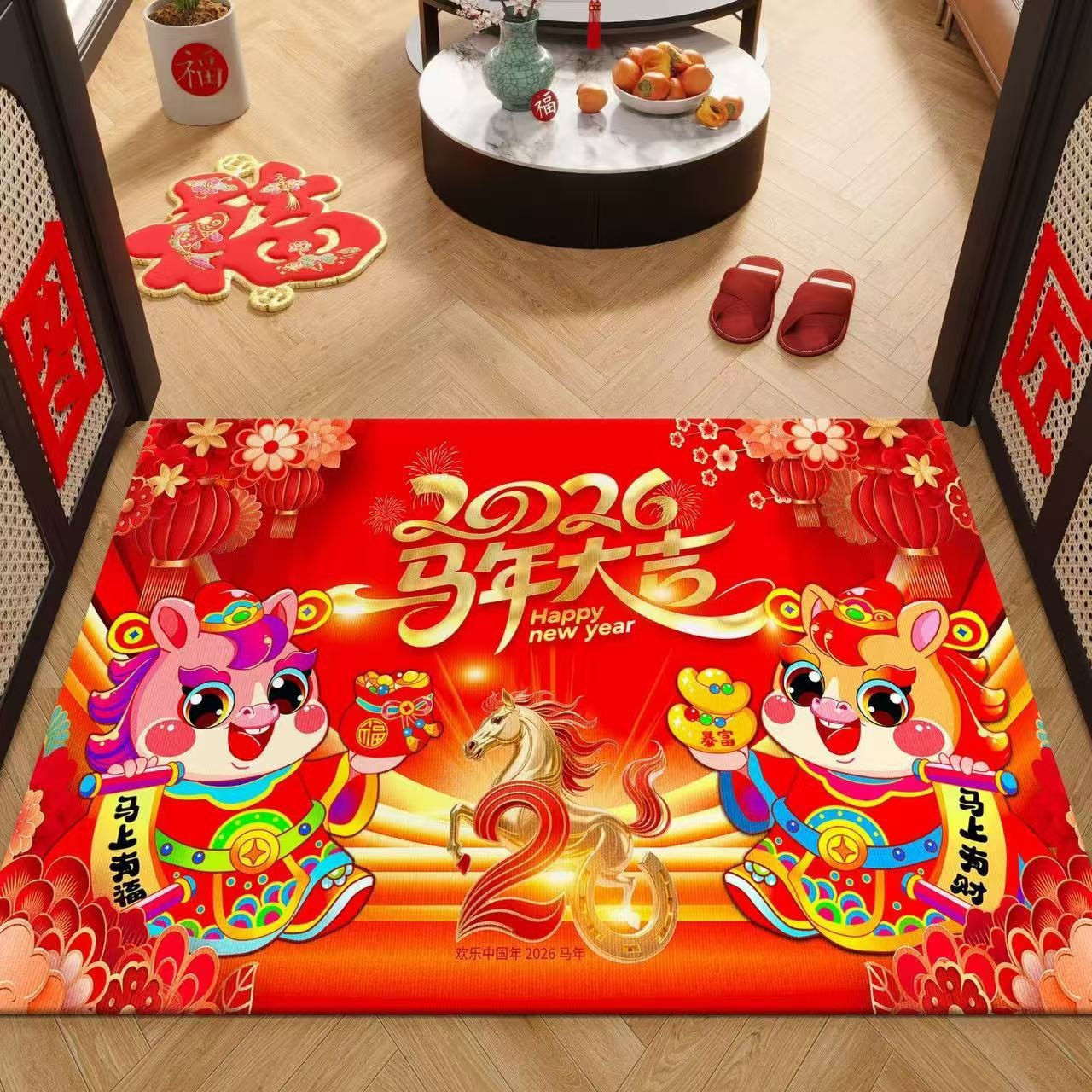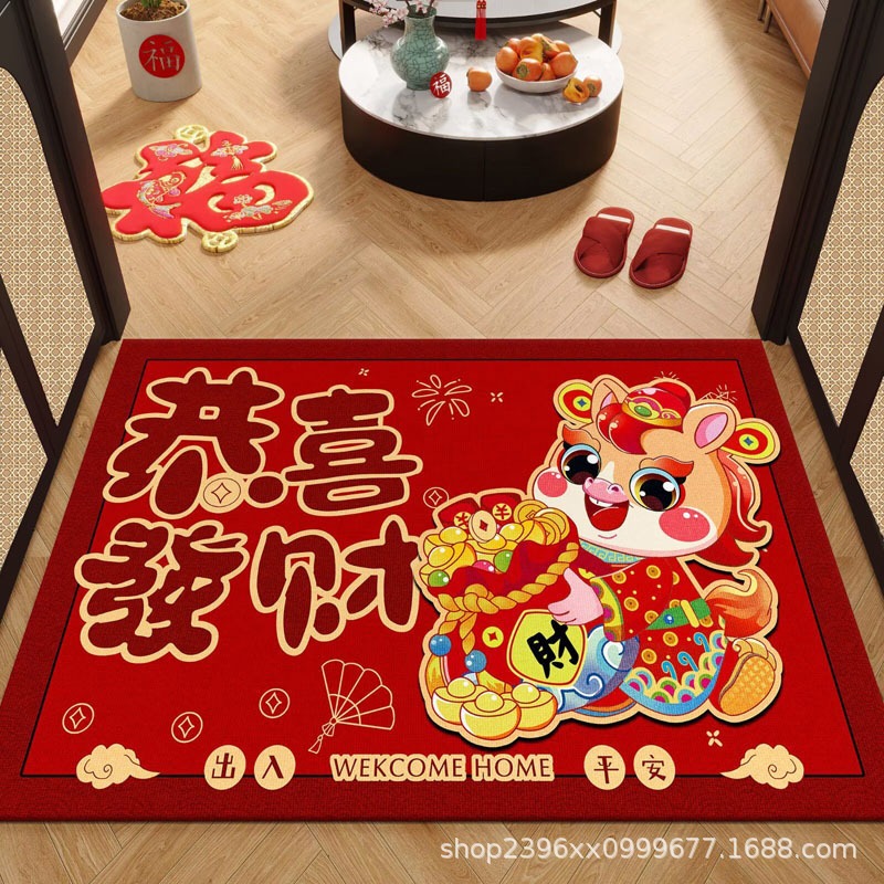 马年地垫入户红门垫进门蹭土脚垫卡通喜庆耐脏易打理门垫新款批发