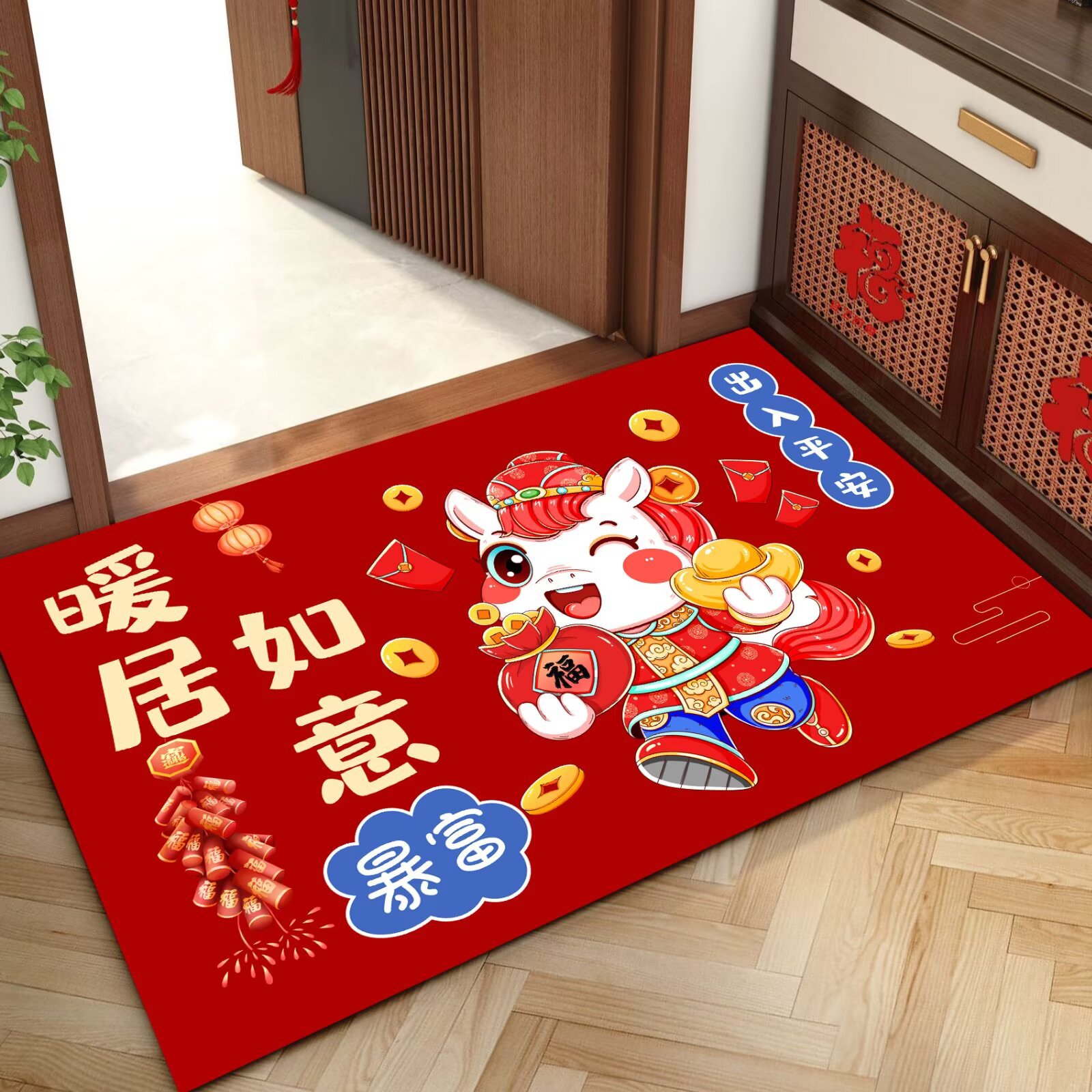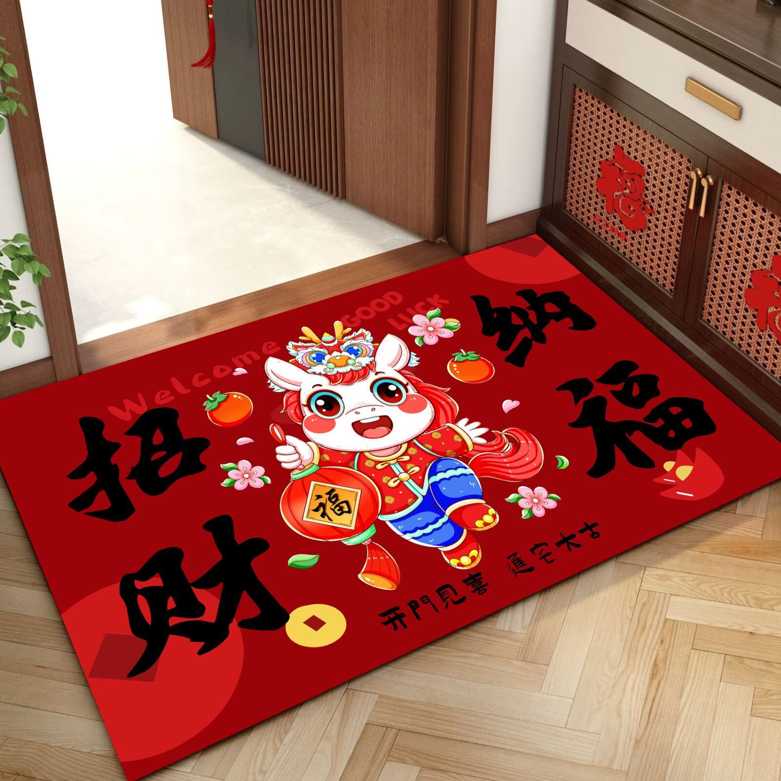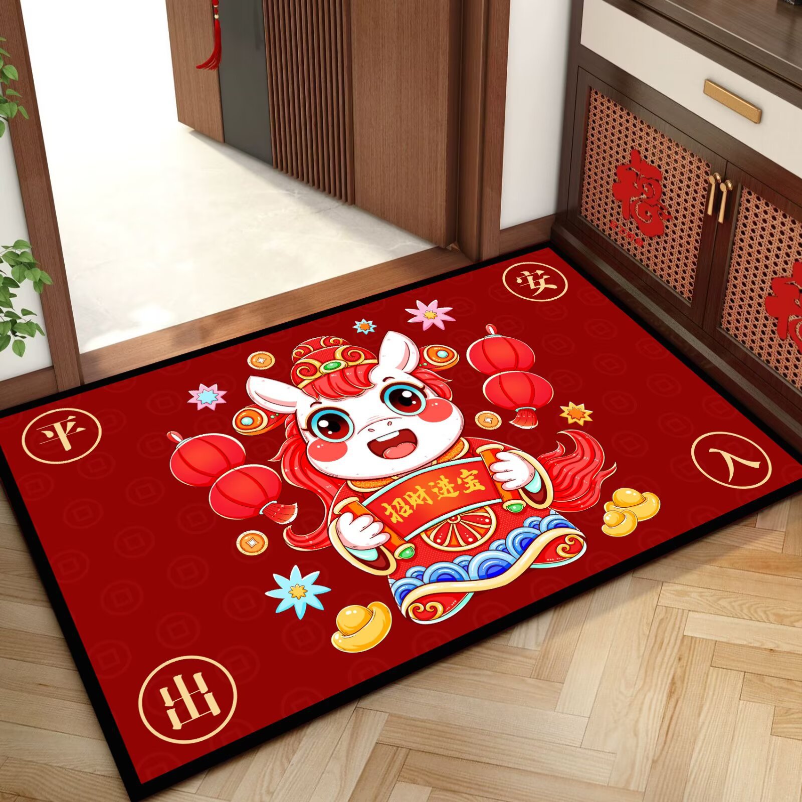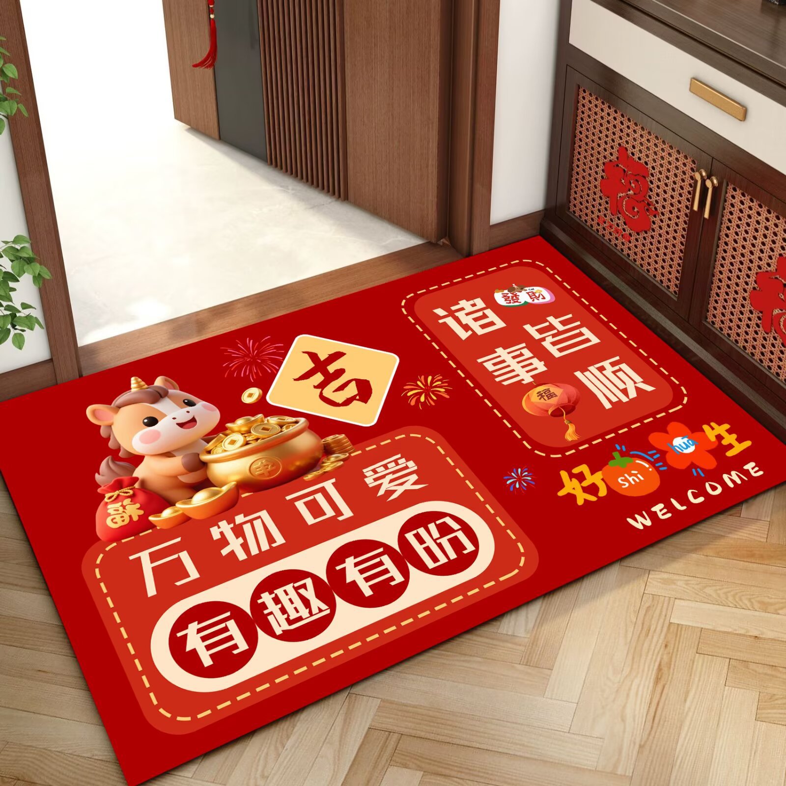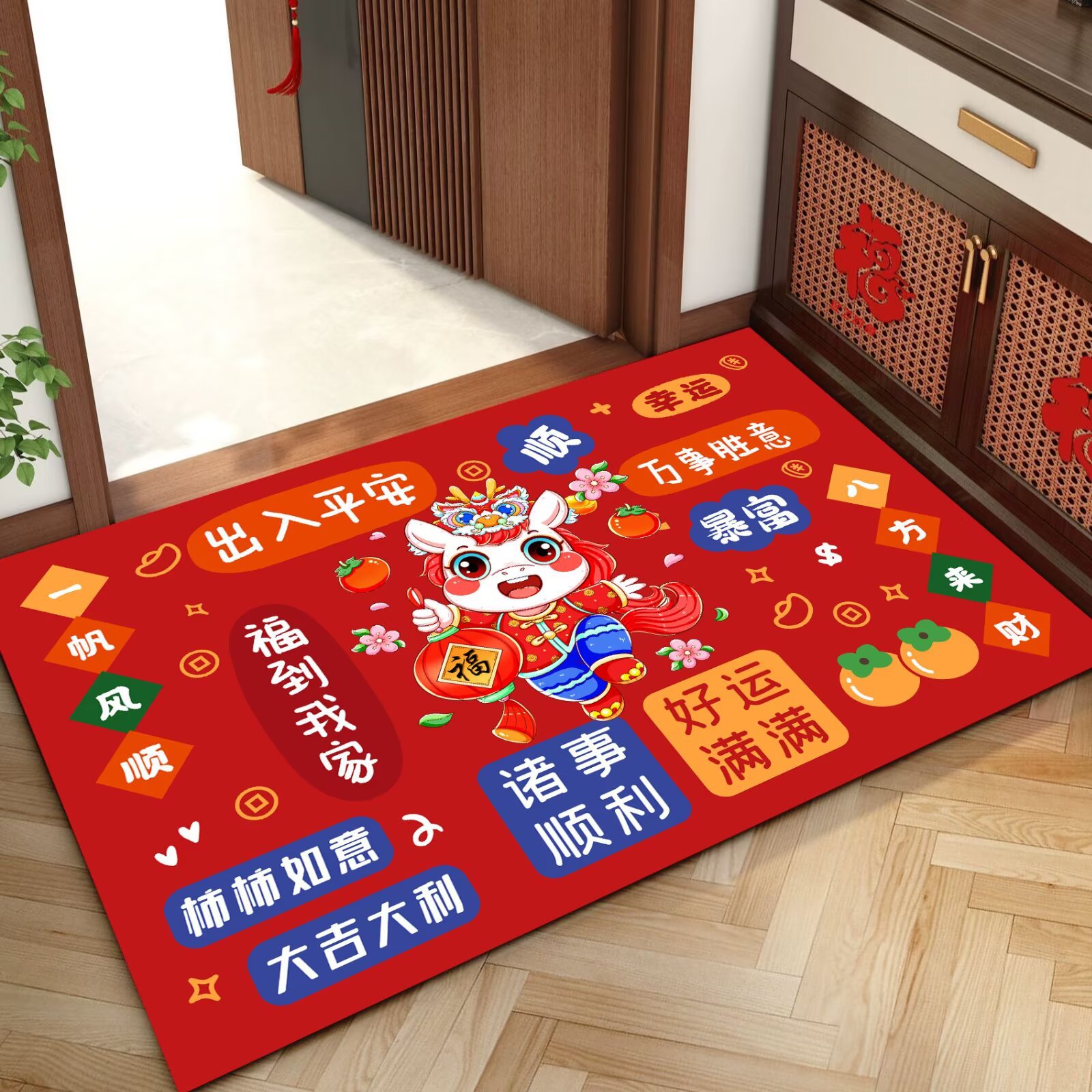 马年入户门垫开门红地垫卡通新年脚垫子纳福新居乔迁之喜地毯