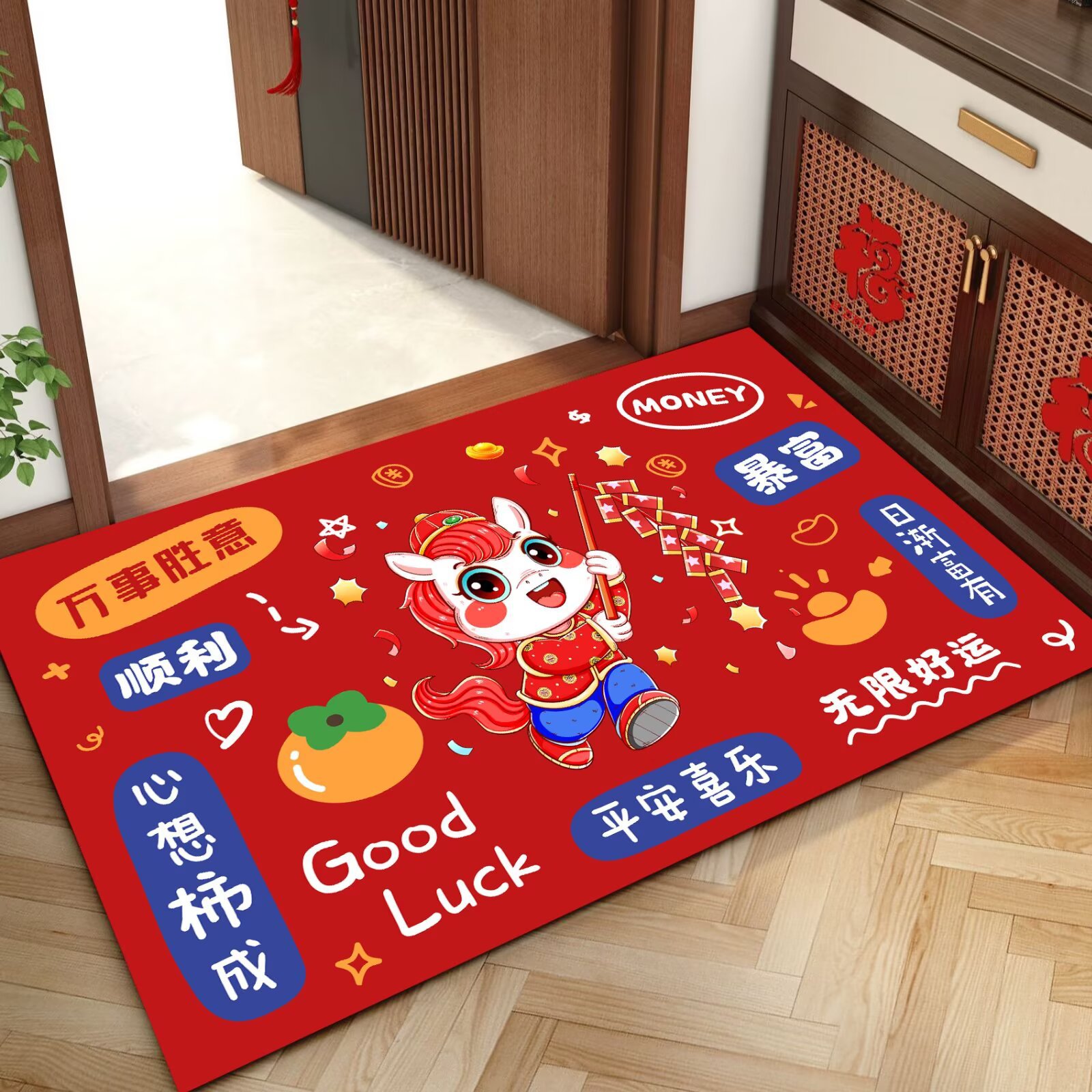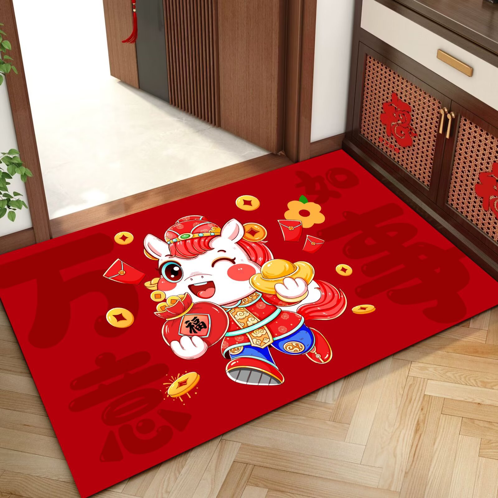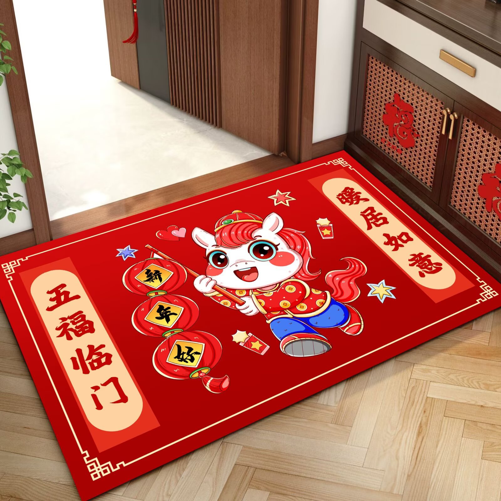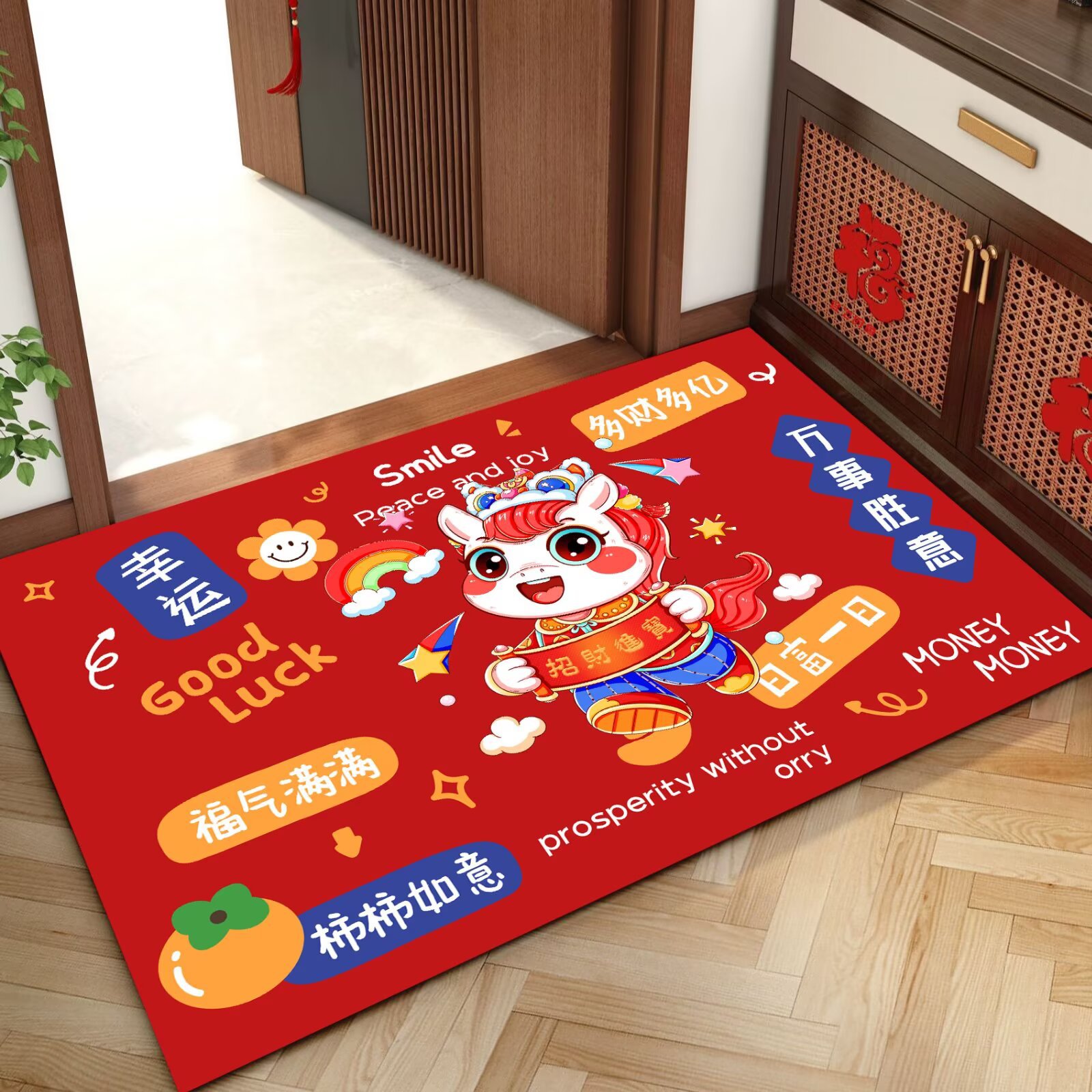 马年入户门垫开门红地垫卡通新年脚垫子纳福新居乔迁之喜地毯