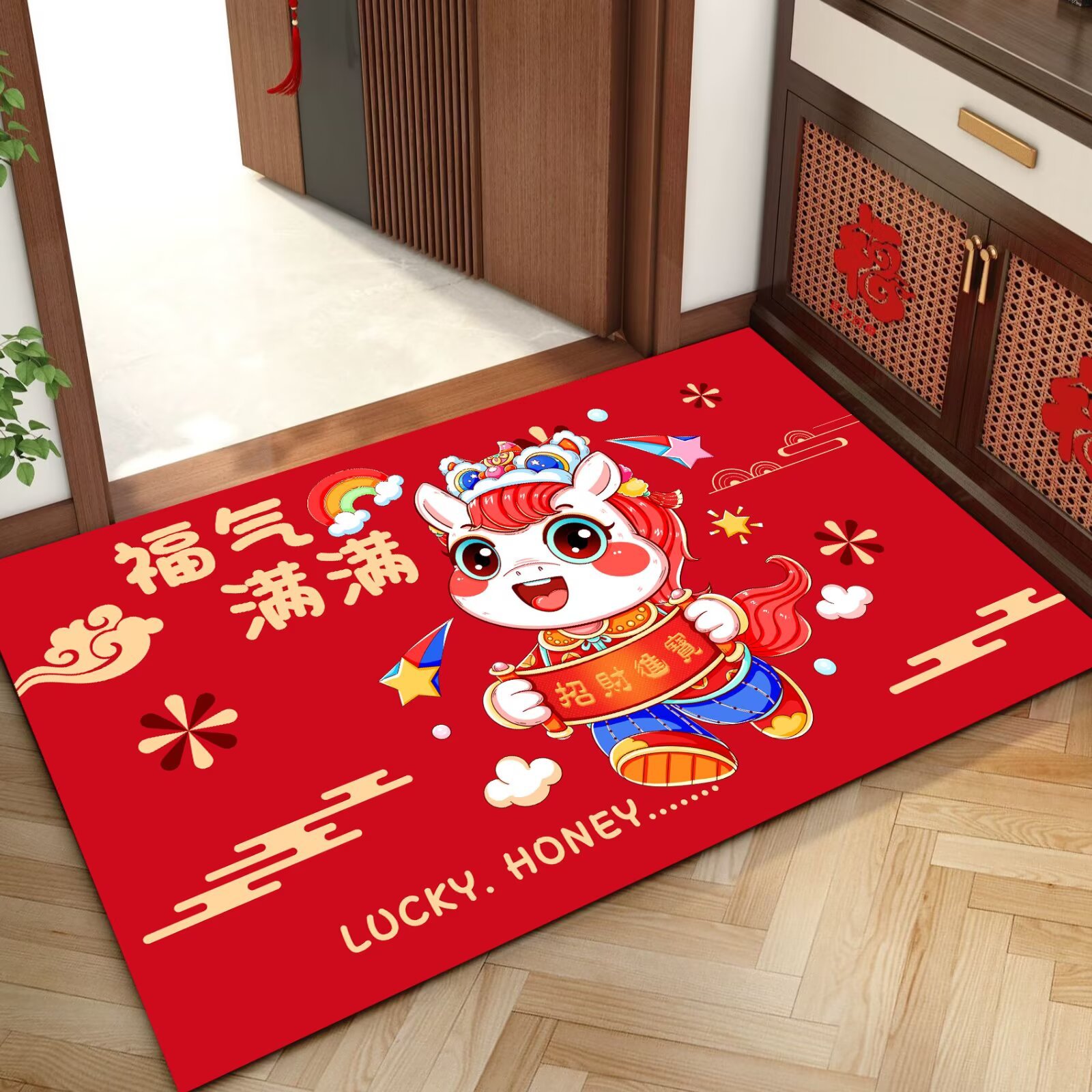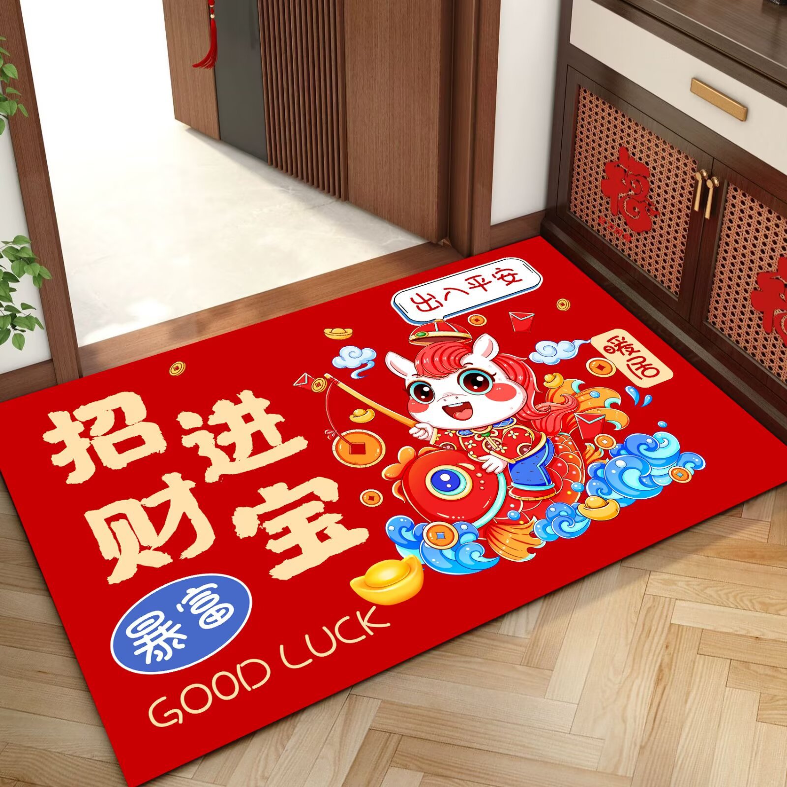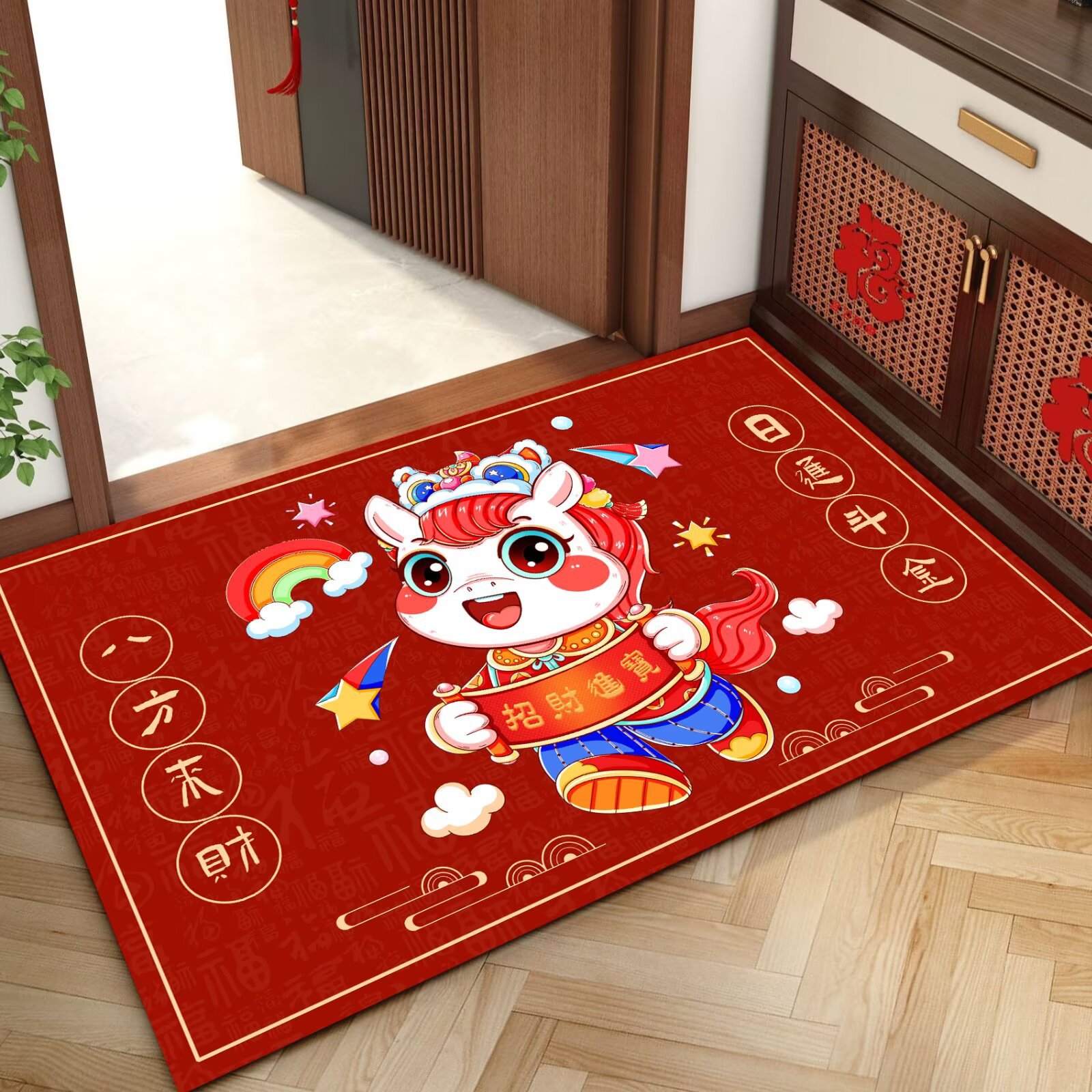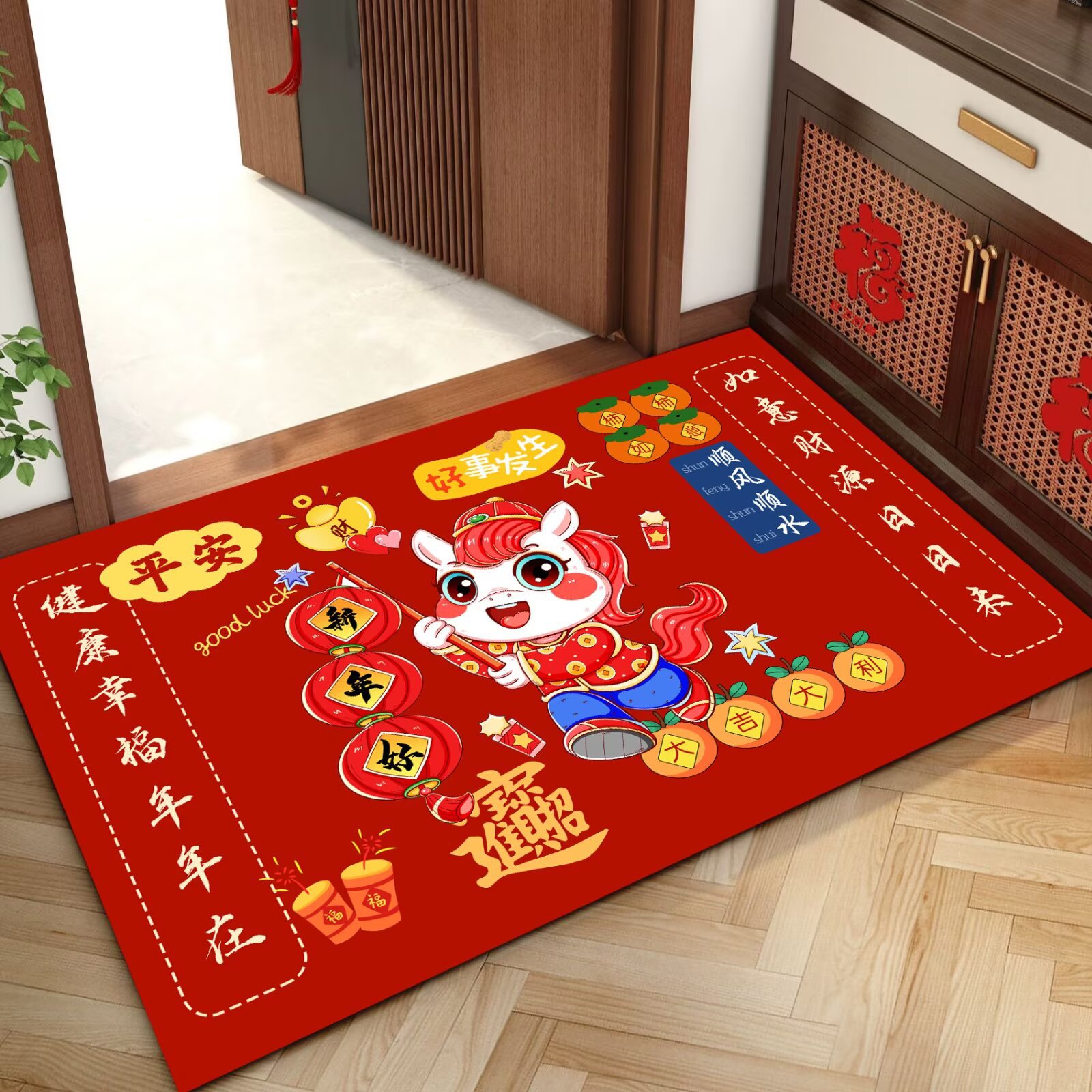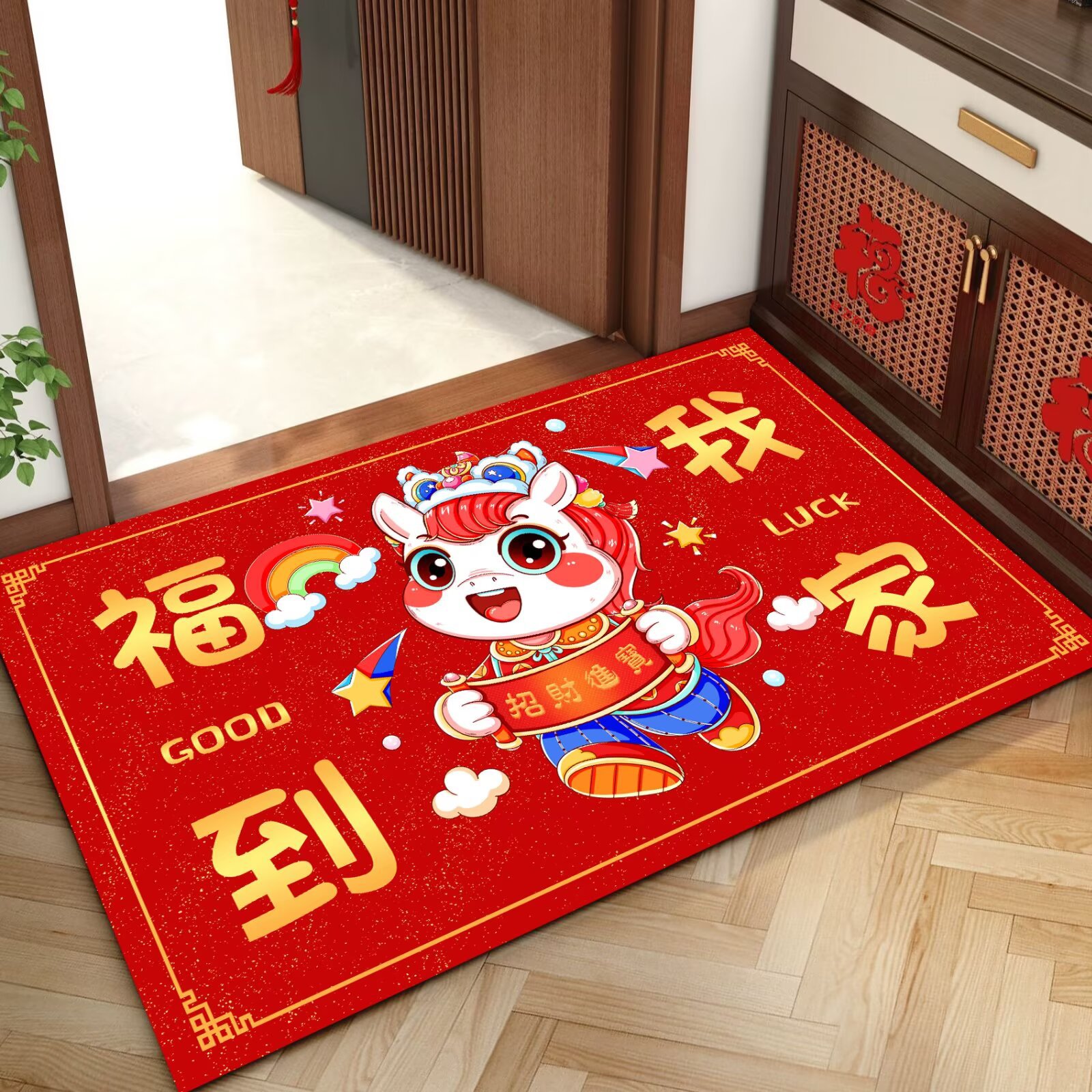 马年入户门垫开门红地垫卡通新年脚垫子纳福新居乔迁之喜地毯