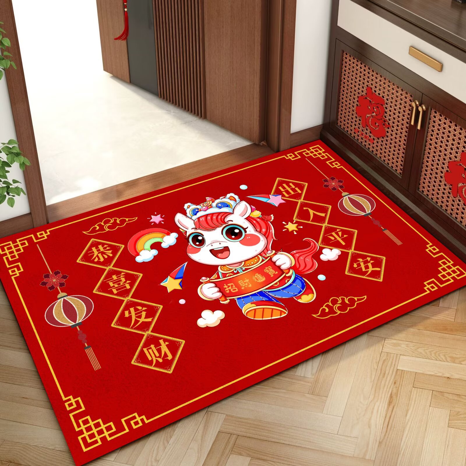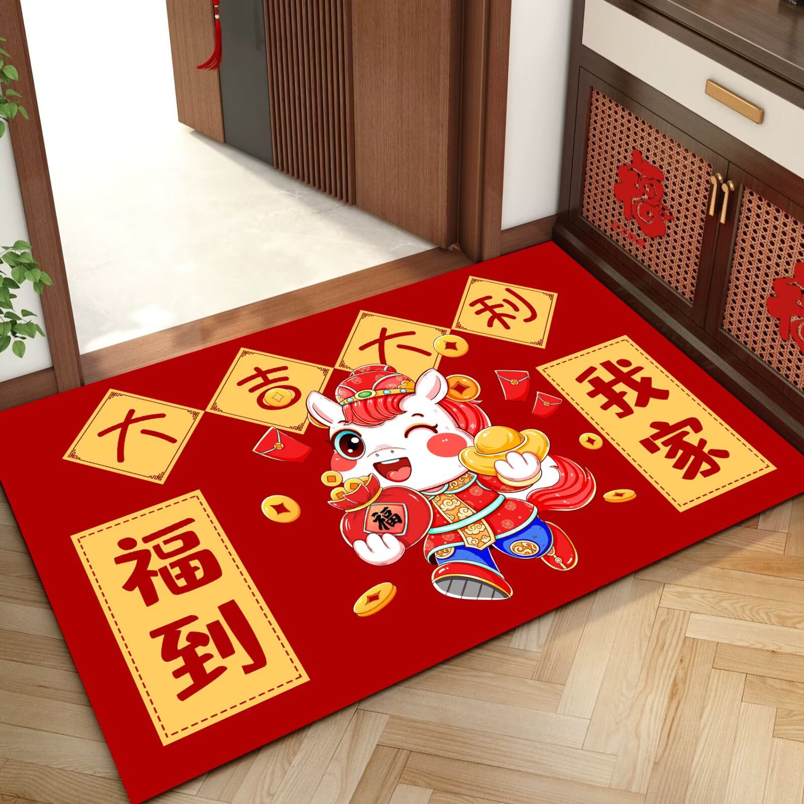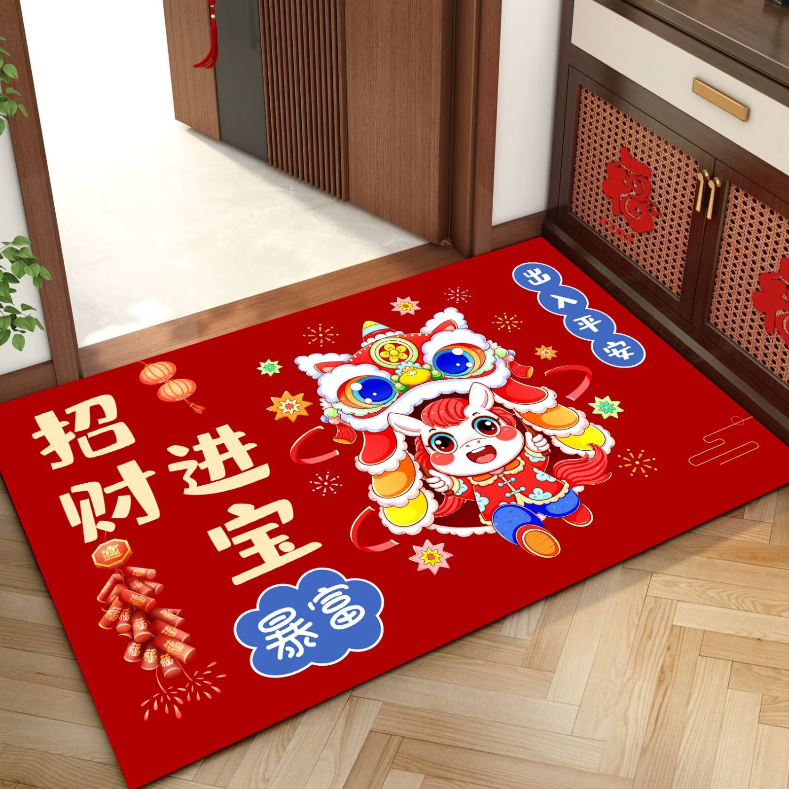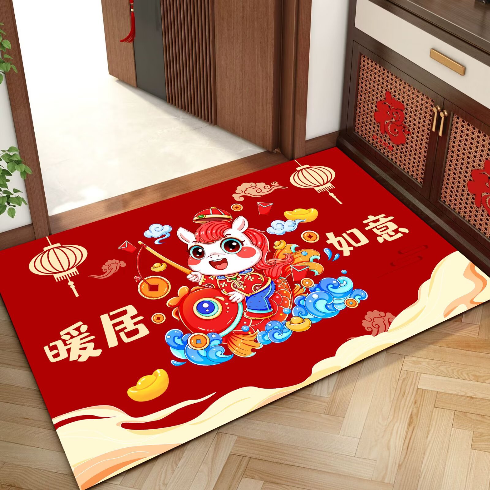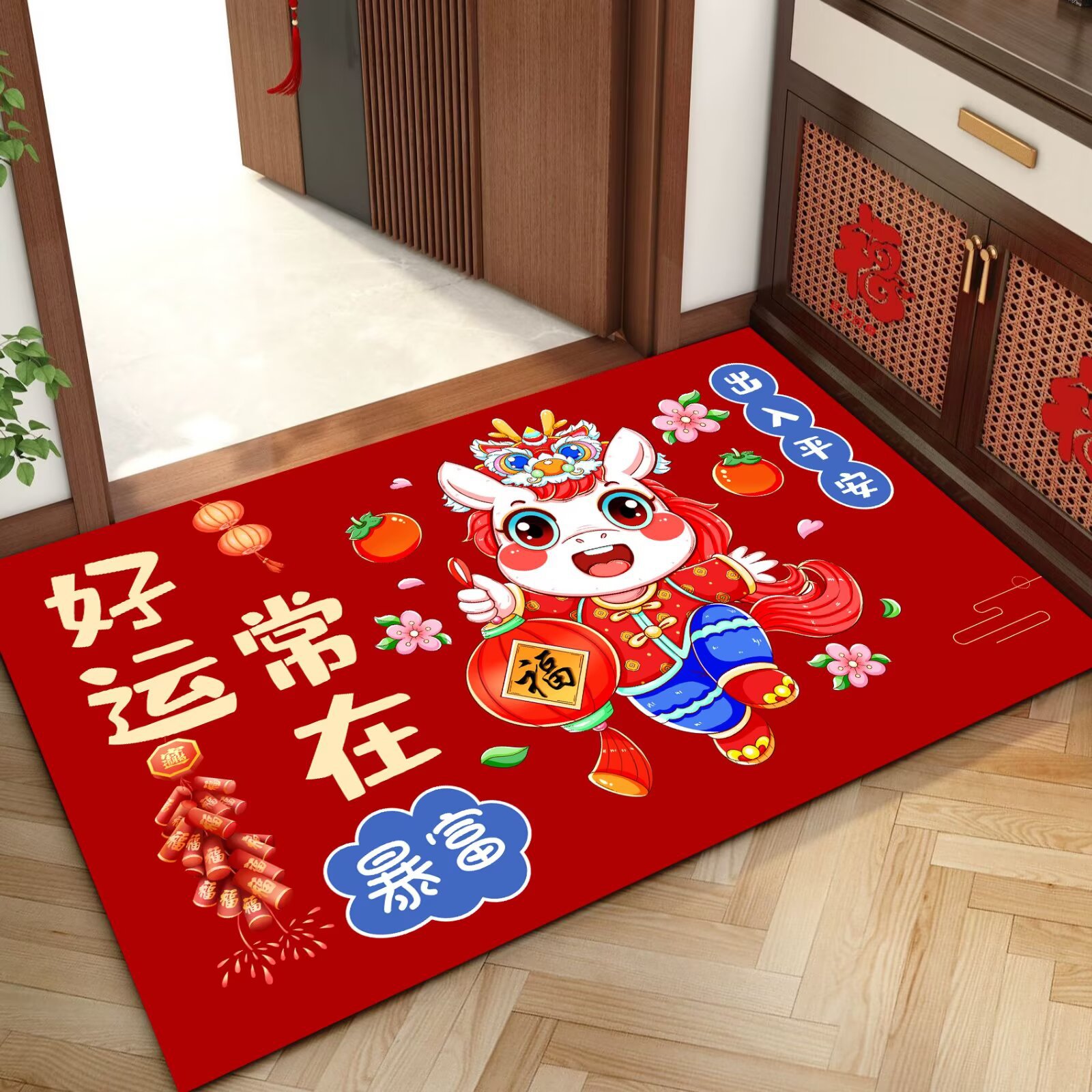 马年入户门垫开门红地垫卡通新年脚垫子纳福新居乔迁之喜地毯