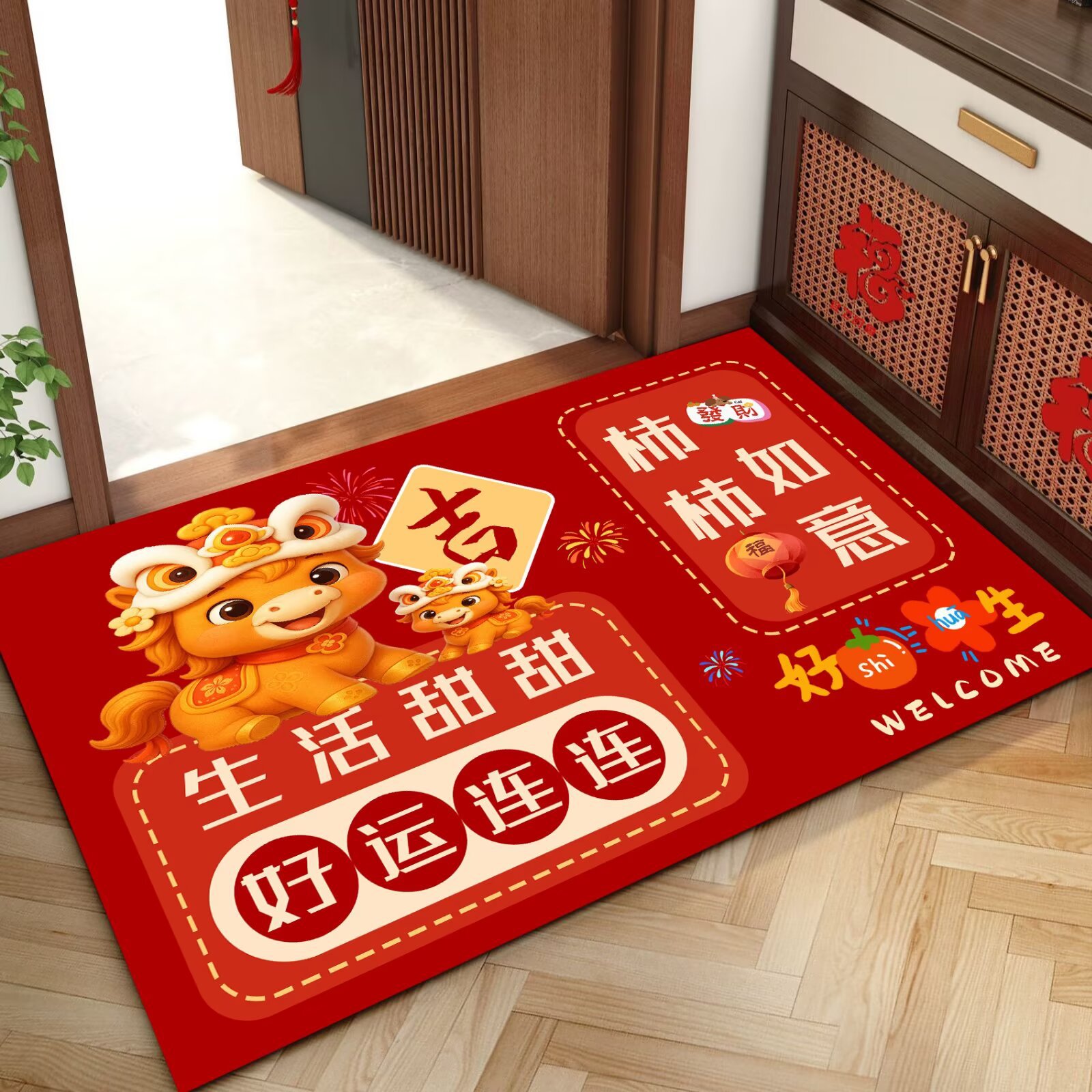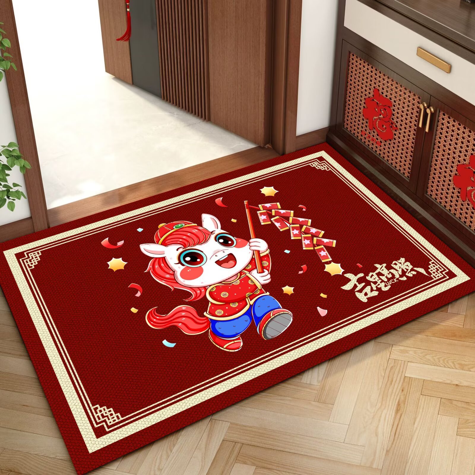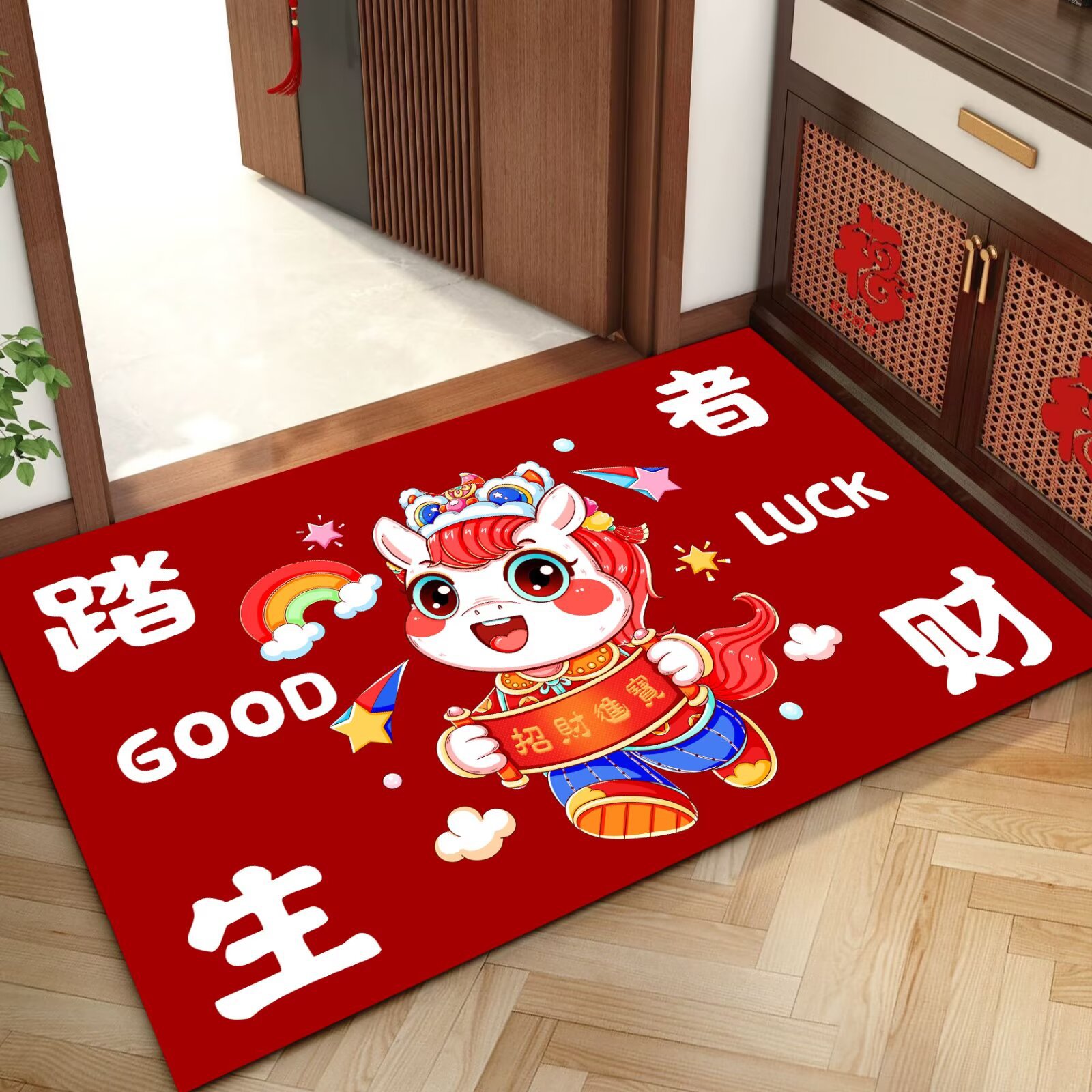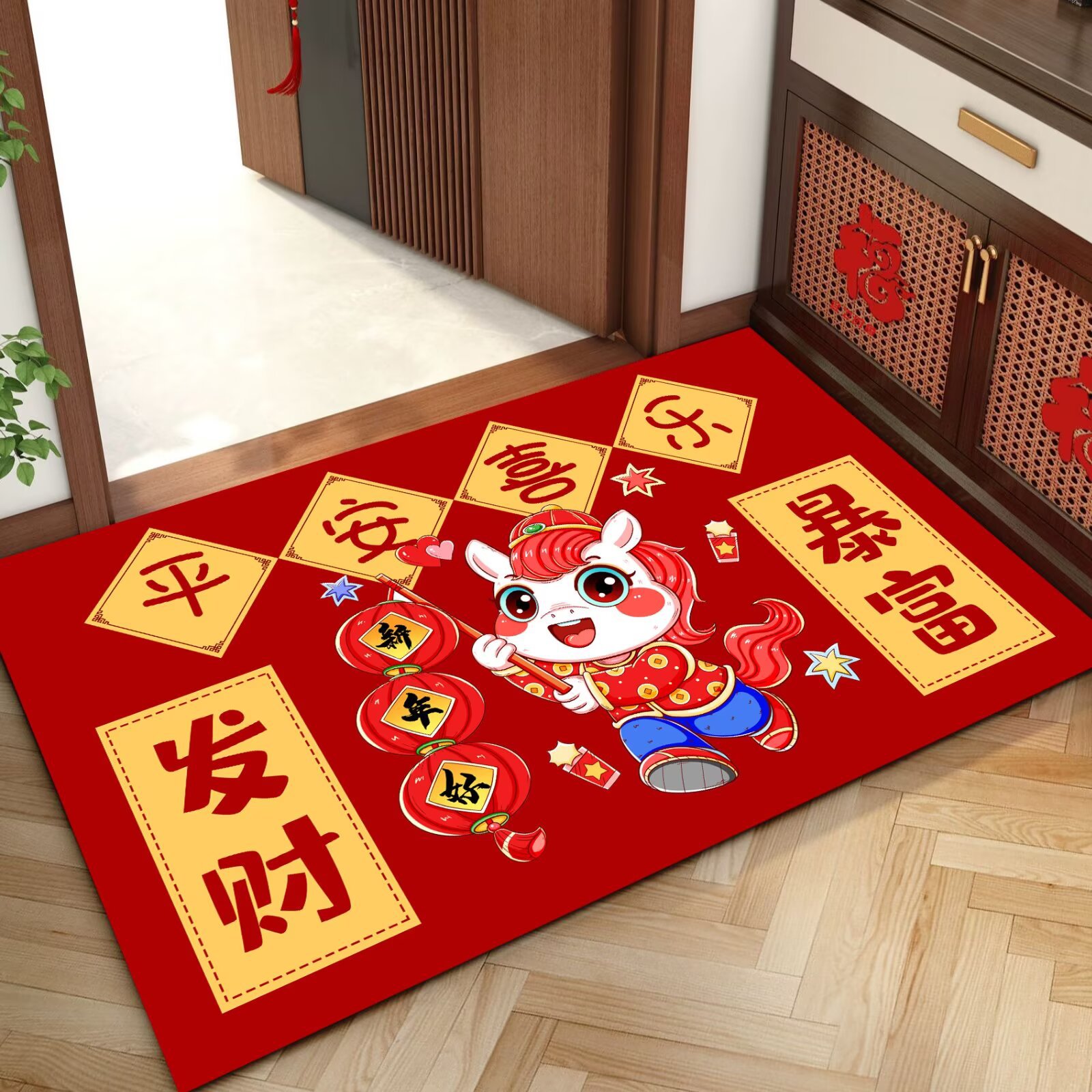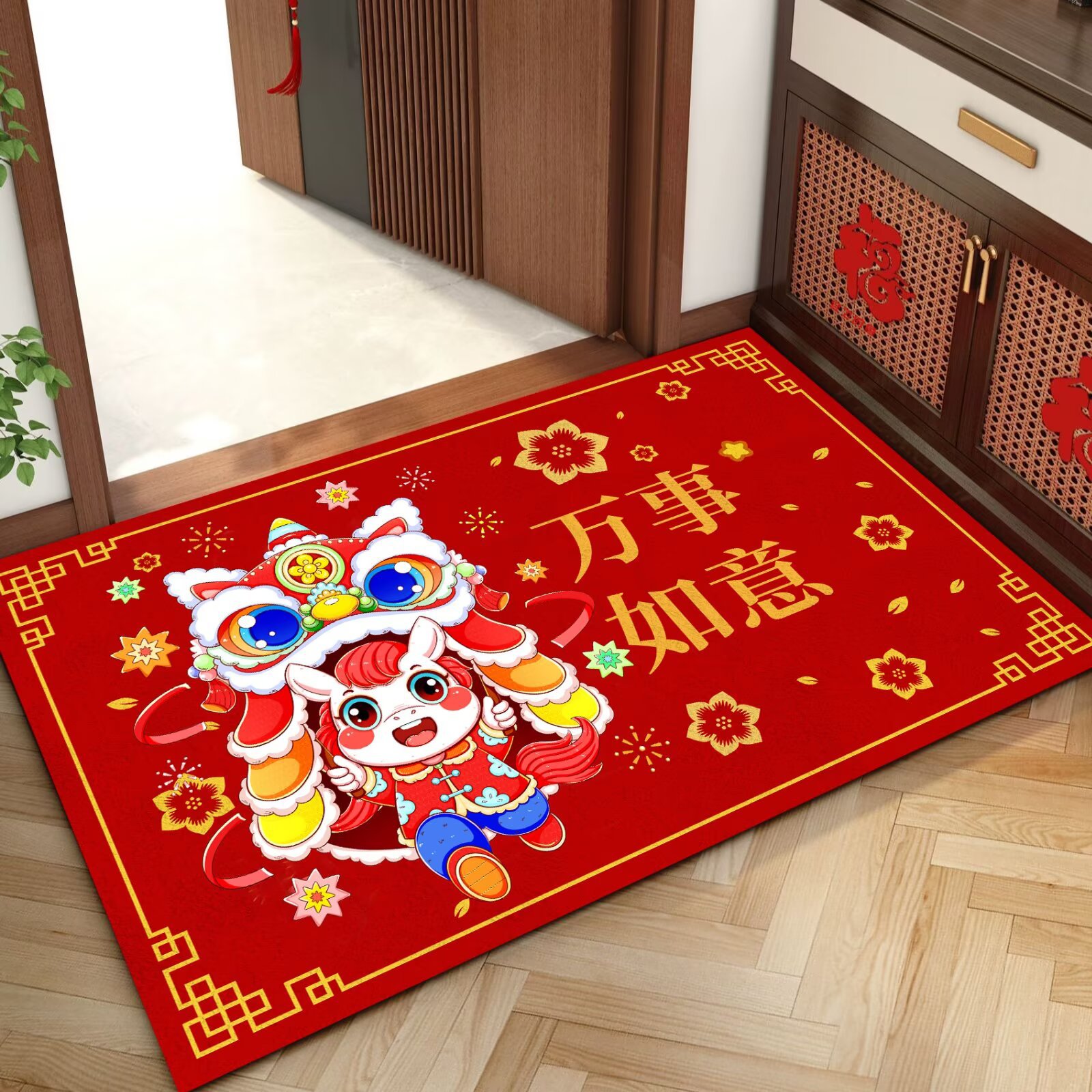 马年入户门垫开门红地垫卡通新年脚垫子纳福新居乔迁之喜地毯
