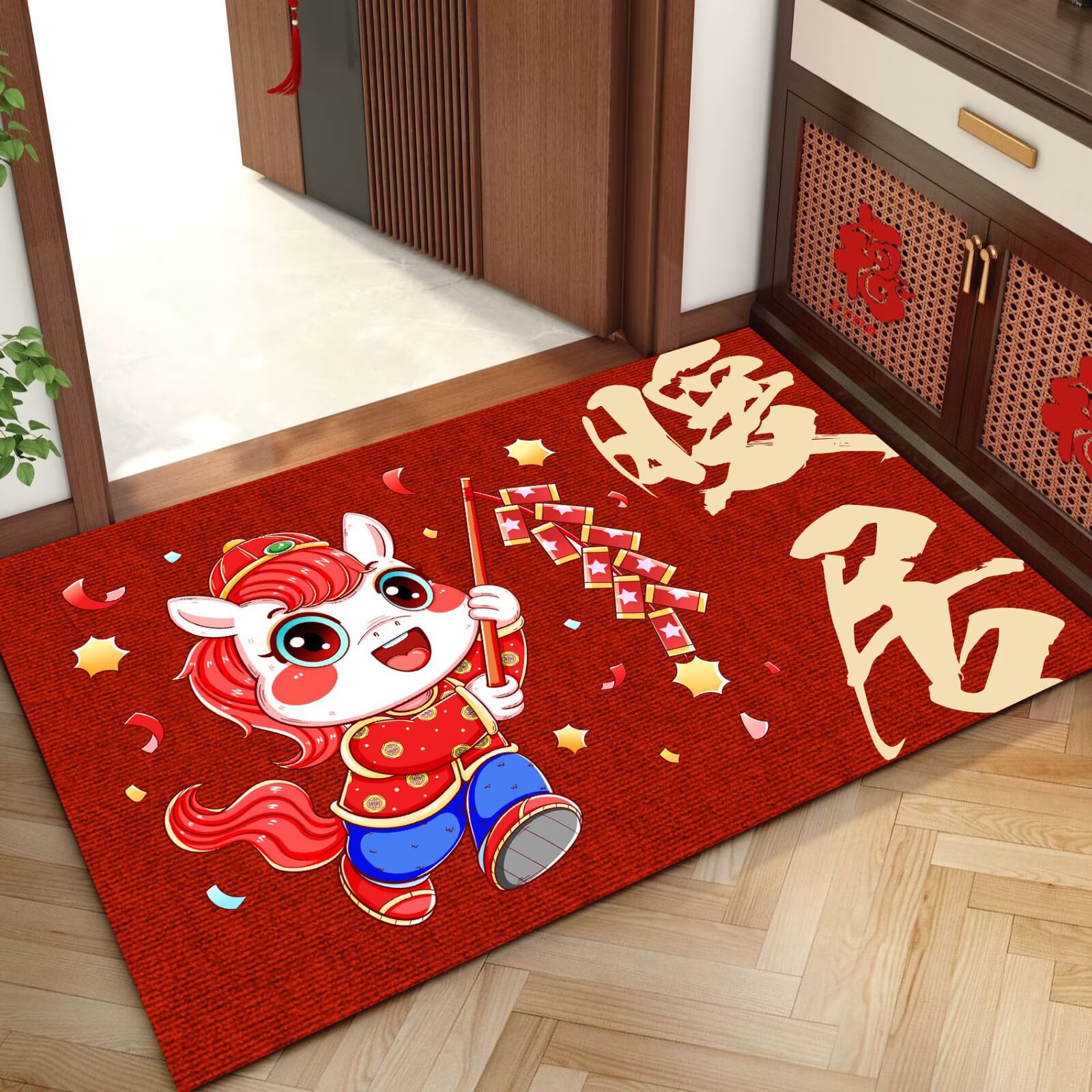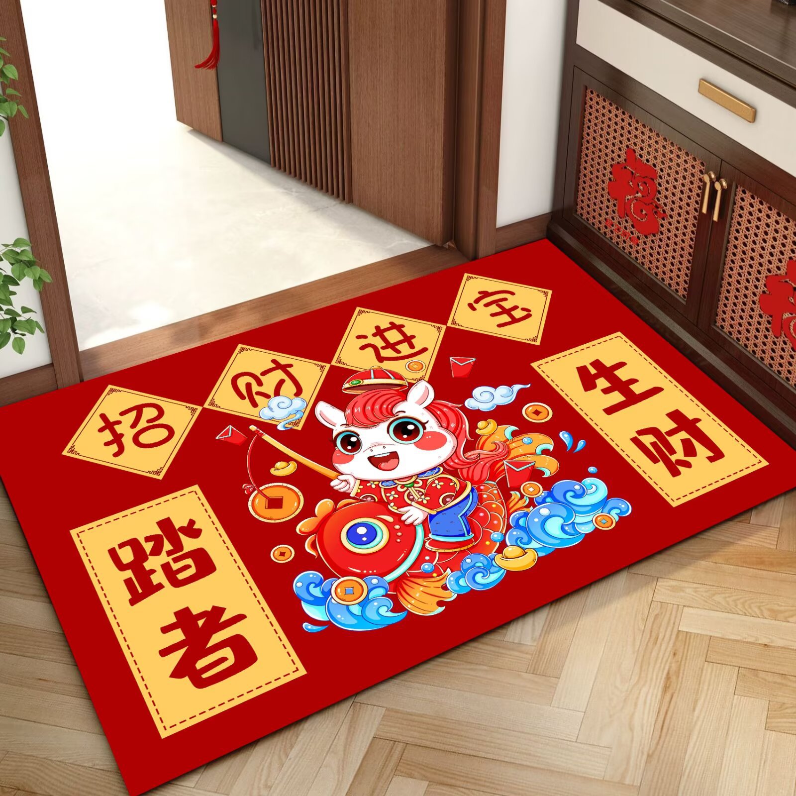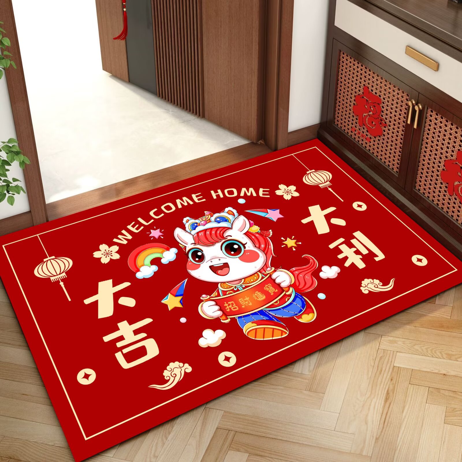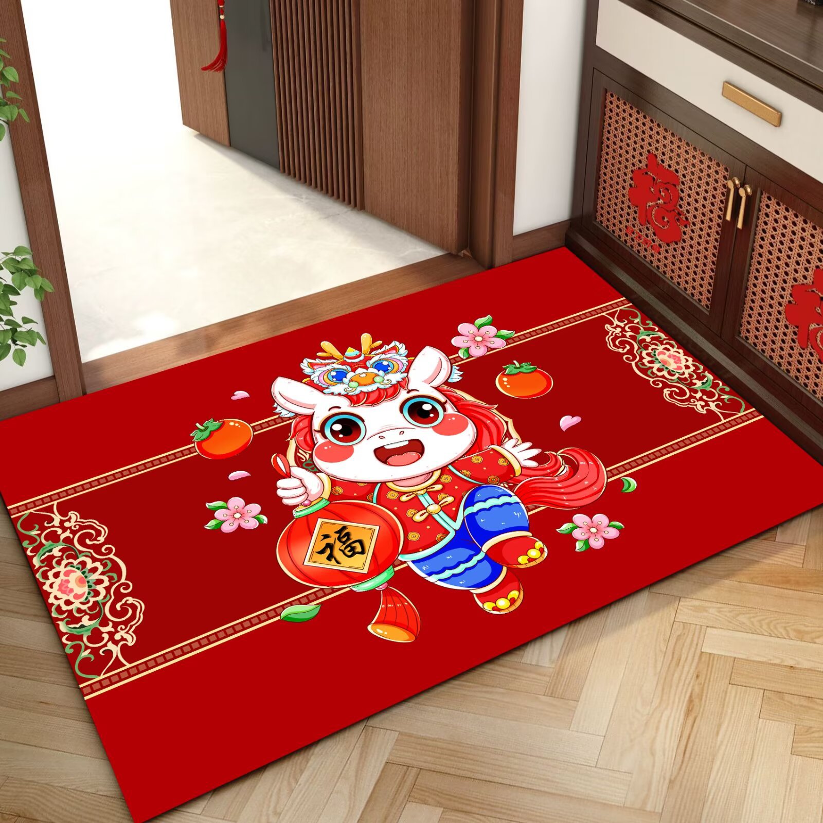 马年入户门垫开门红地垫卡通新年脚垫子纳福新居乔迁之喜地毯
