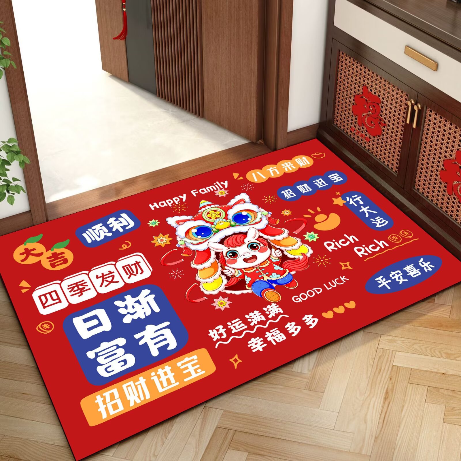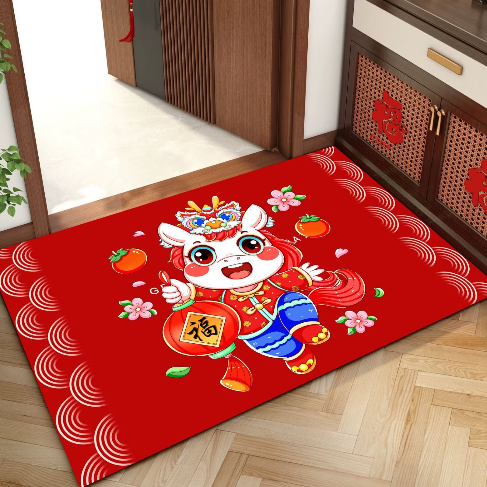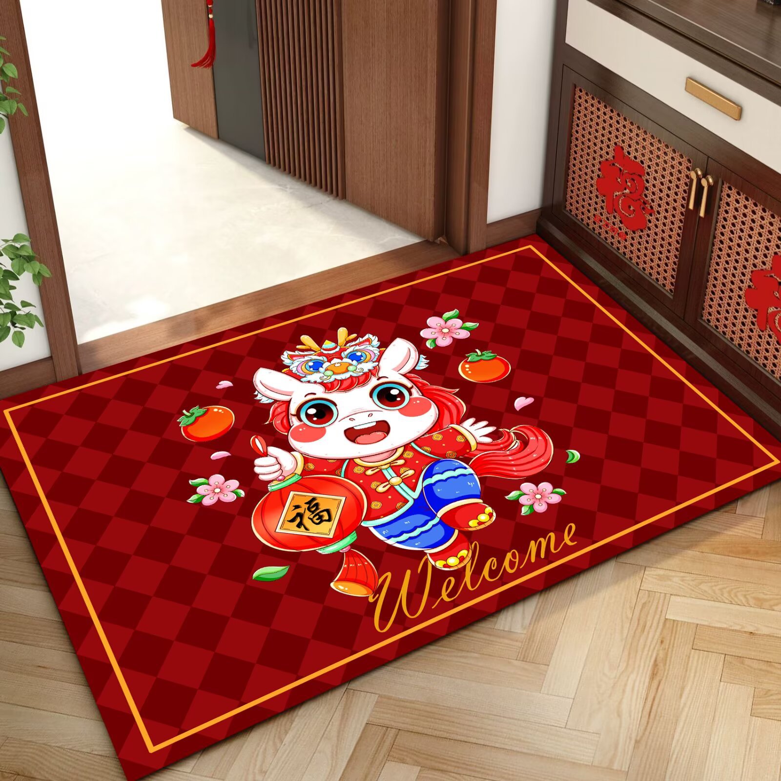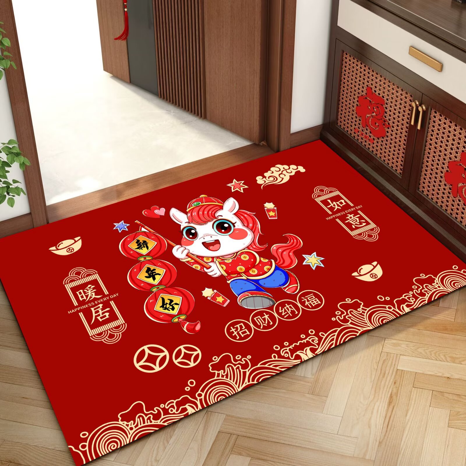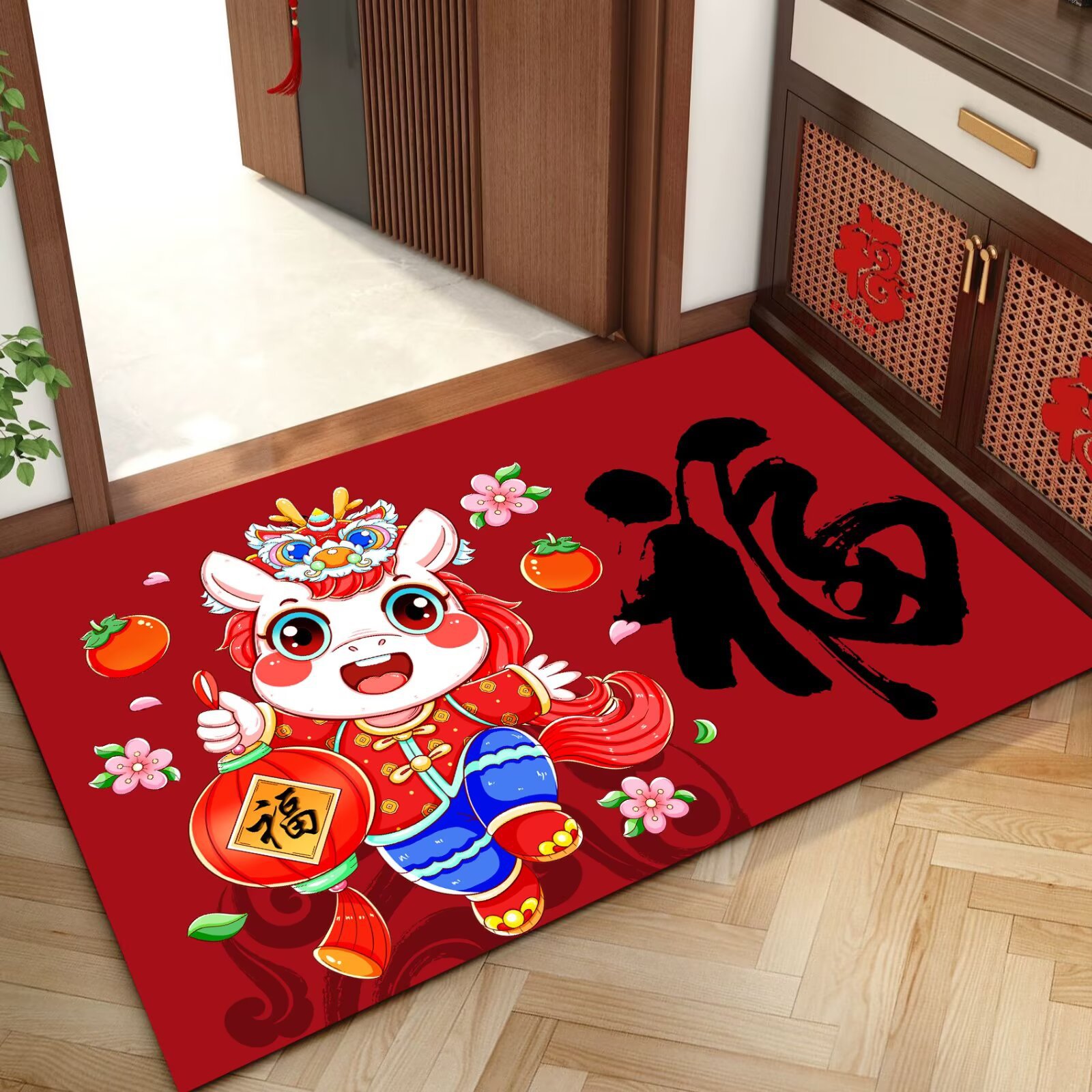 马年入户门垫开门红地垫卡通新年脚垫子纳福新居乔迁之喜地毯
