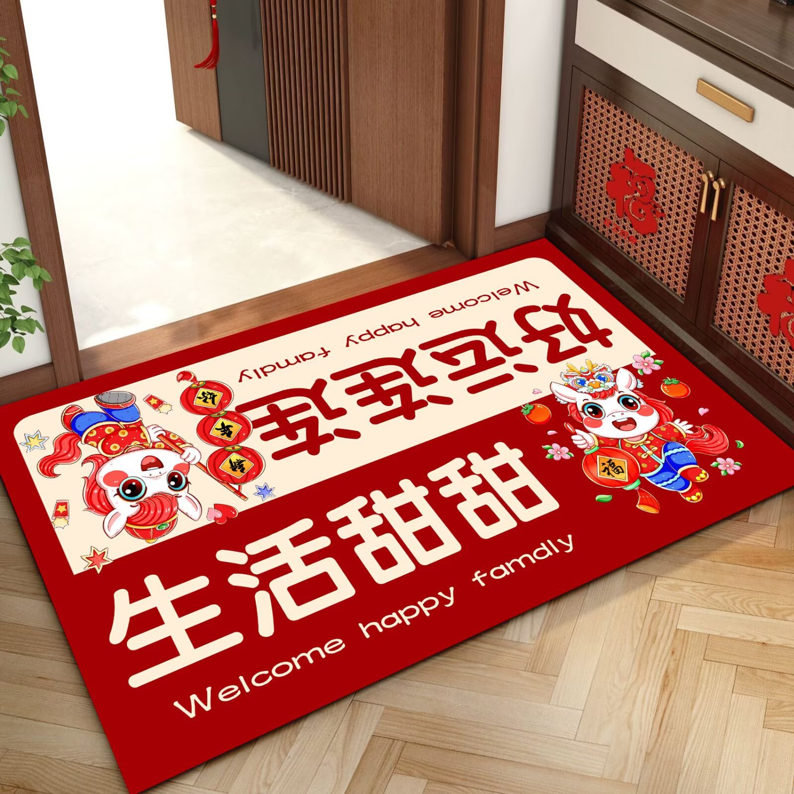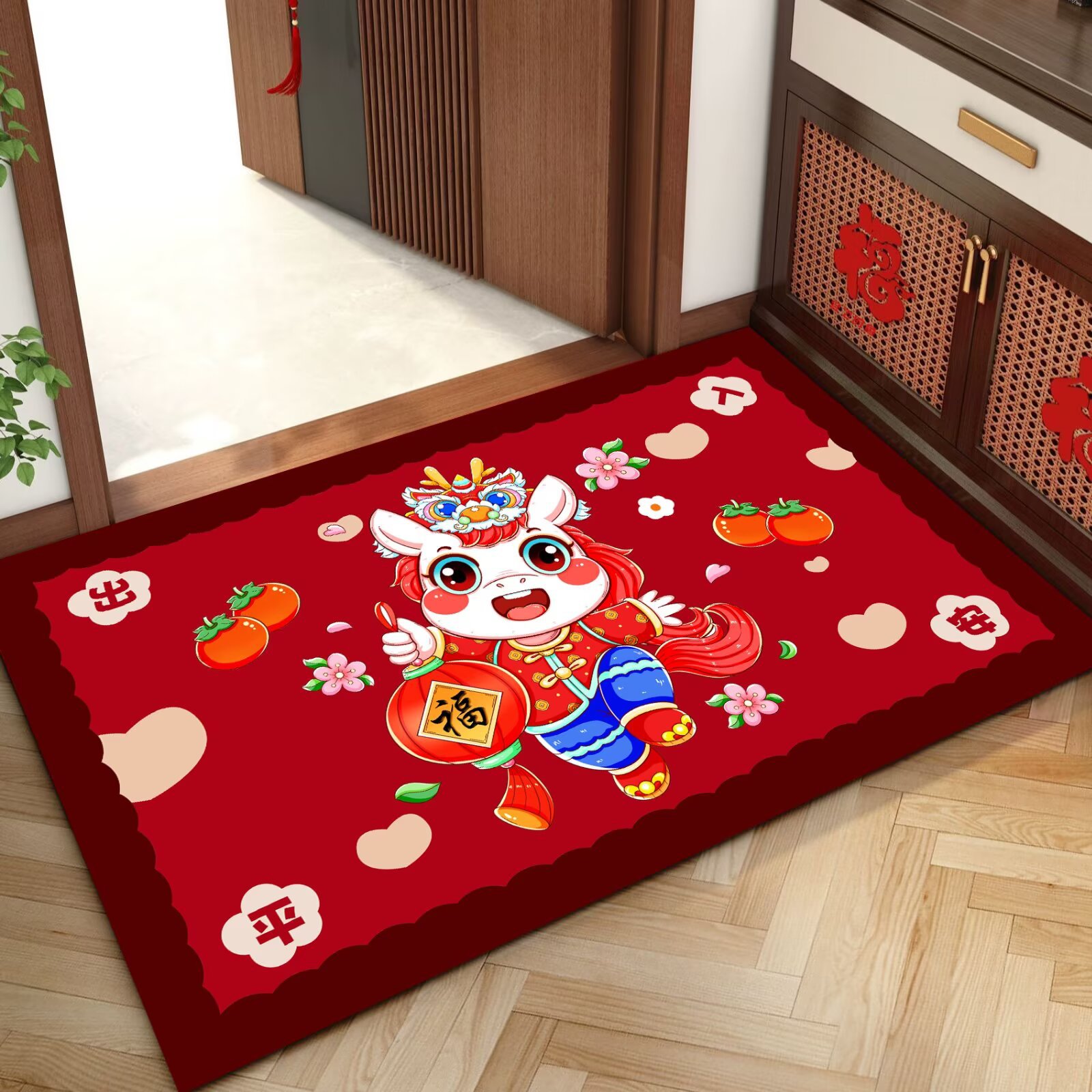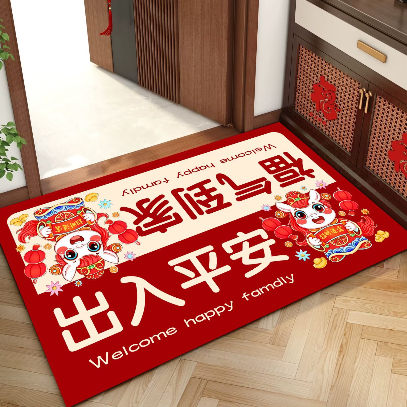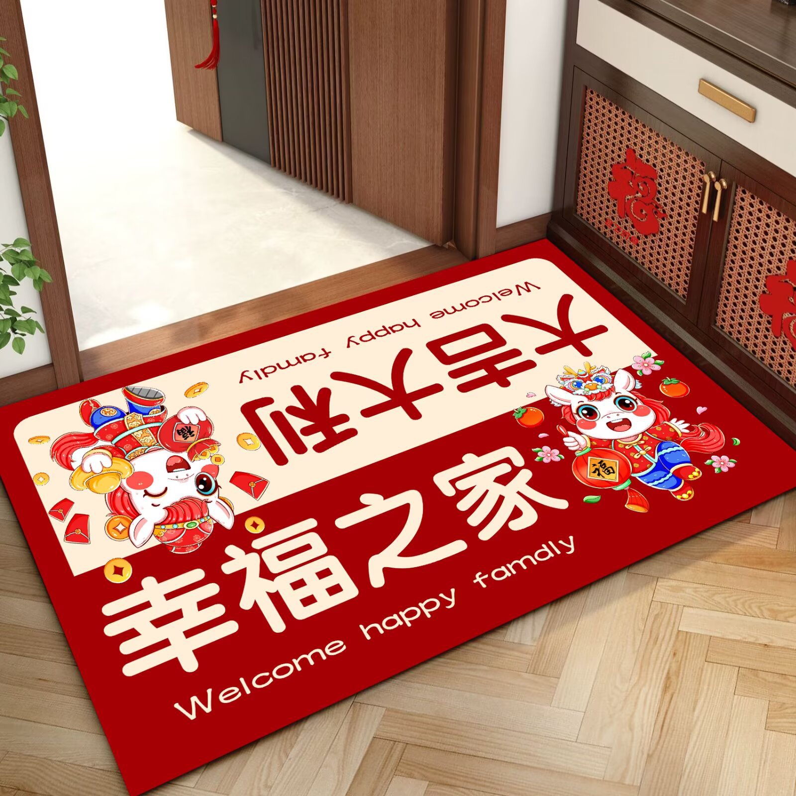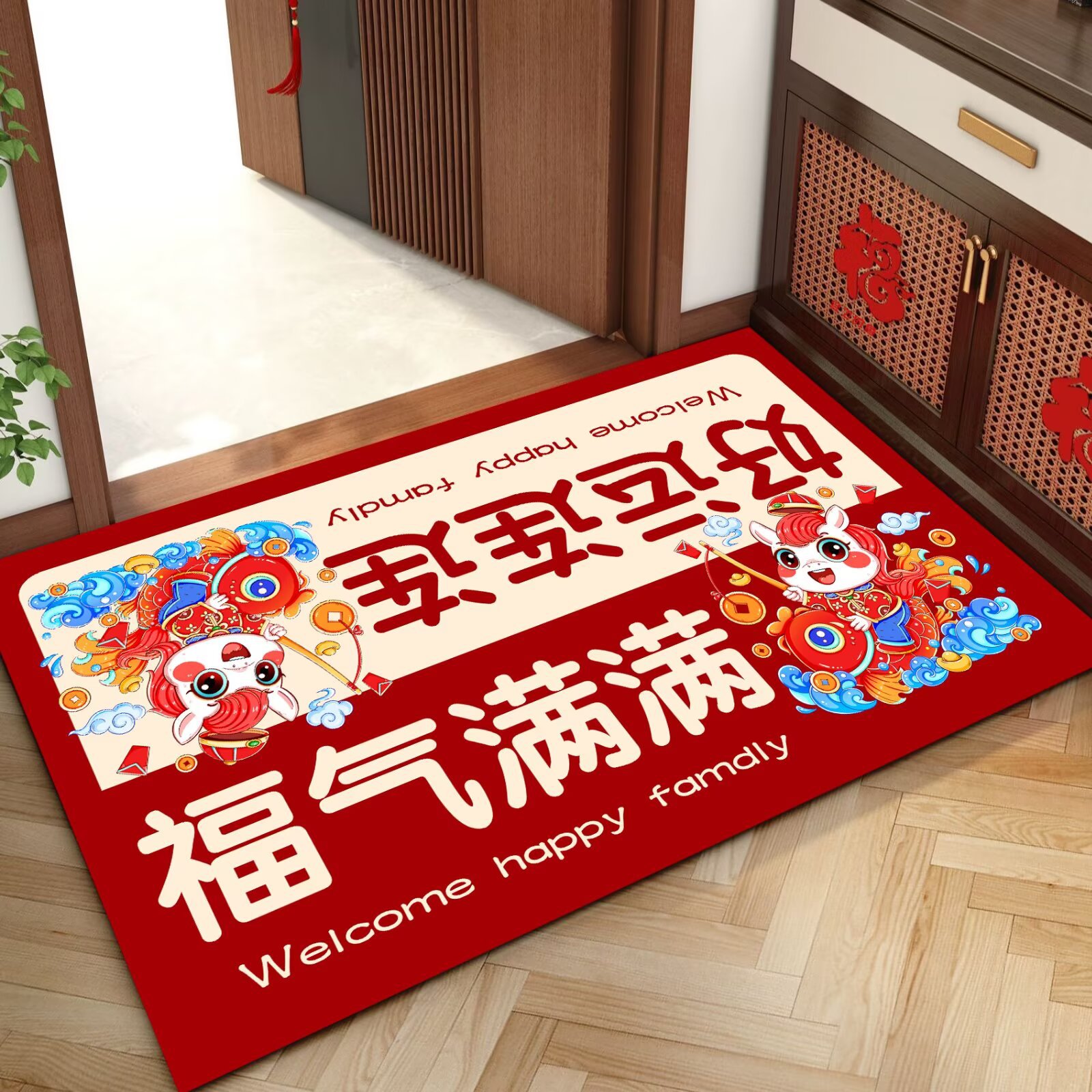 马年入户门垫开门红地垫卡通新年脚垫子纳福新居乔迁之喜地毯