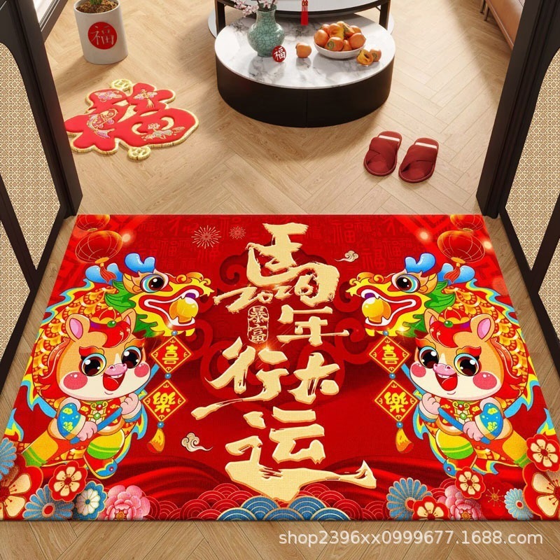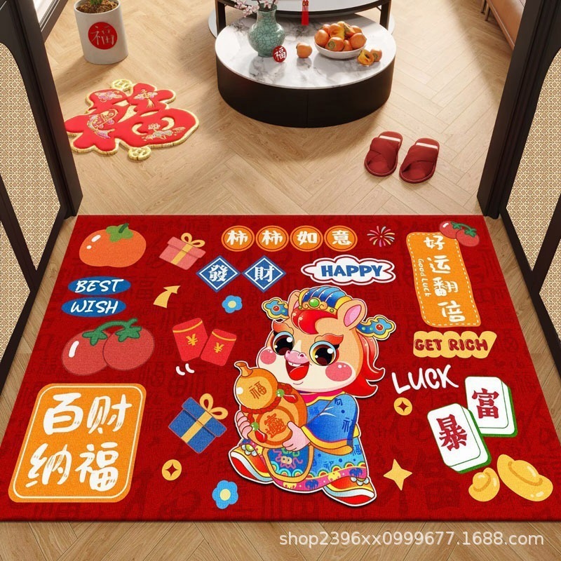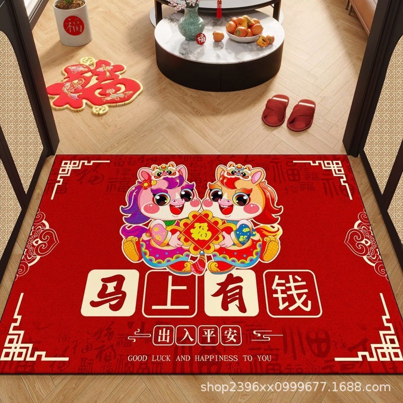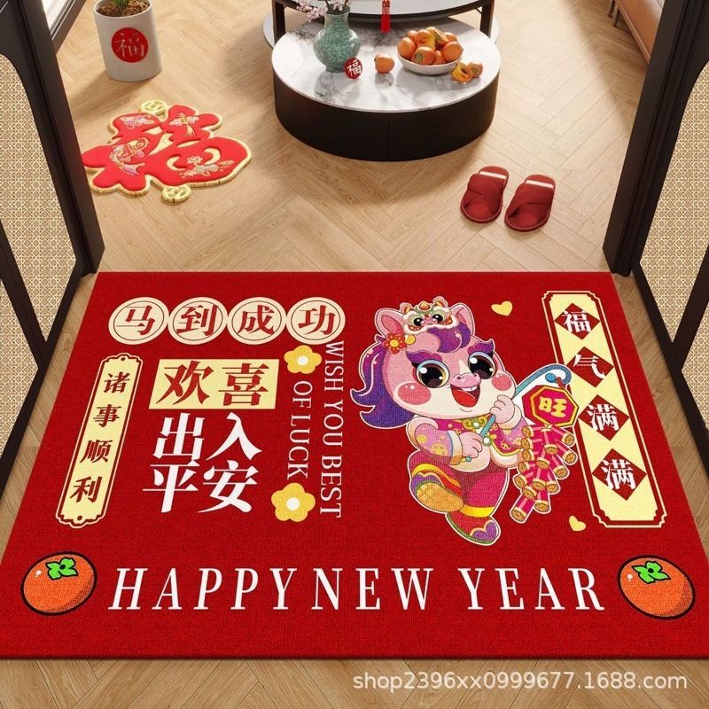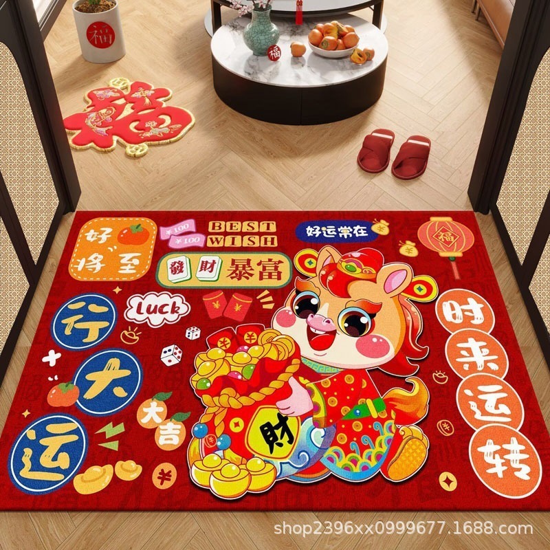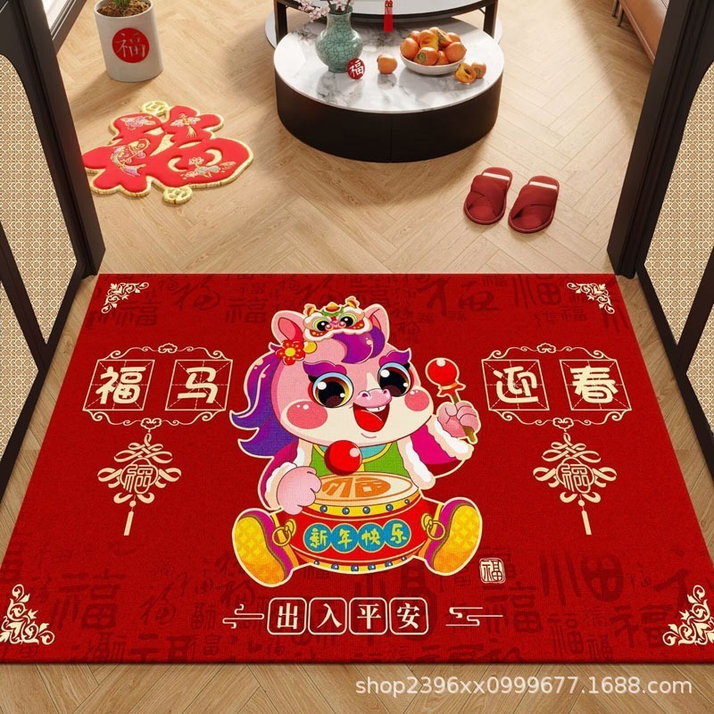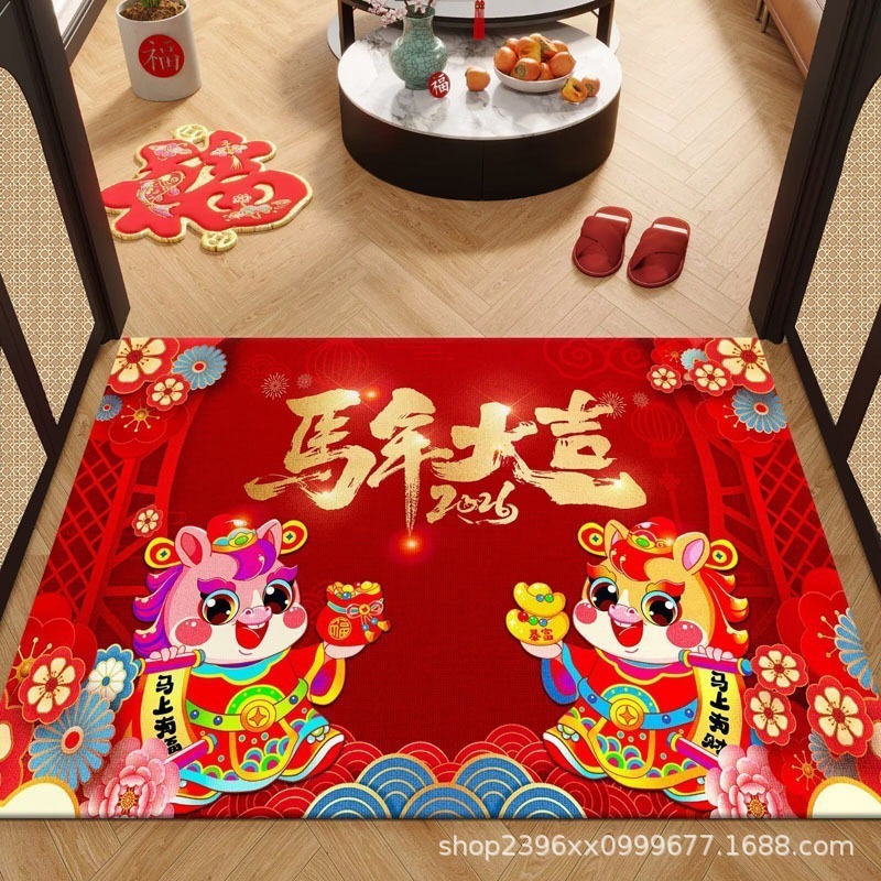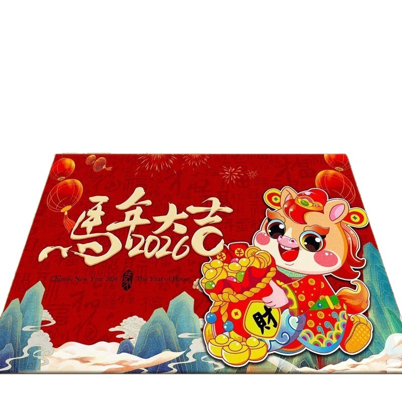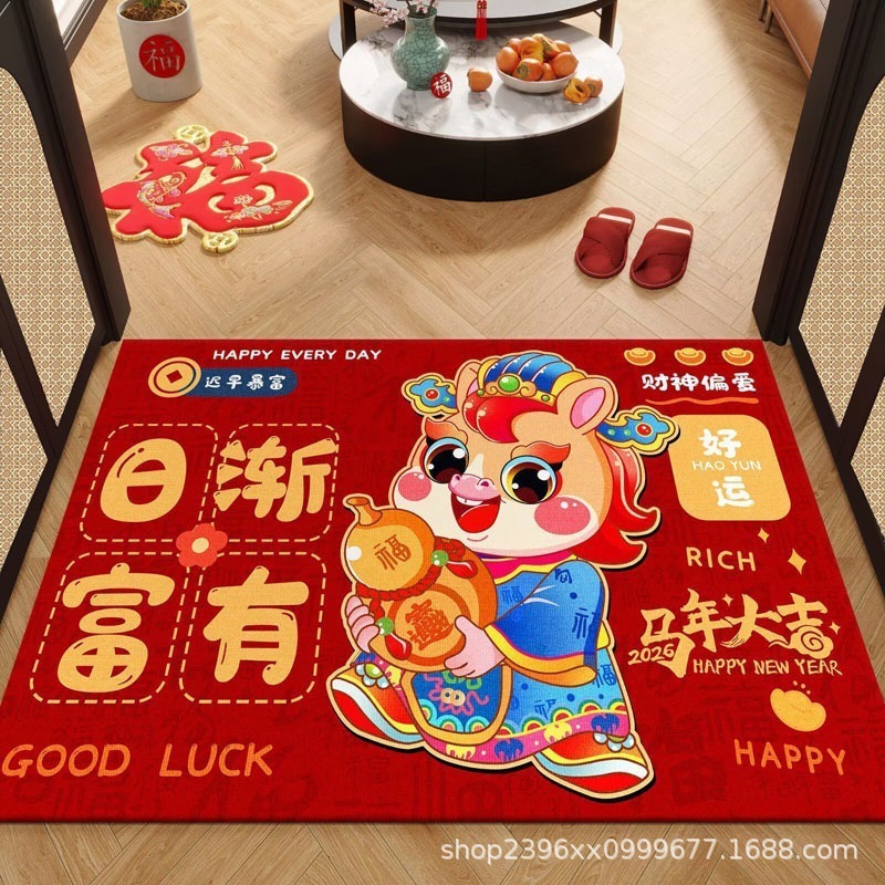 2026年马年地垫水晶绒卡通可爱喜庆门垫耐脏易打理门垫红门垫新款