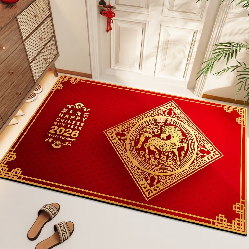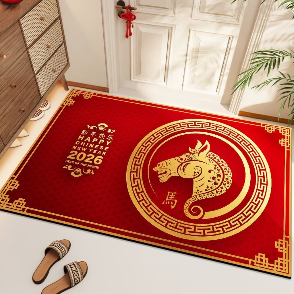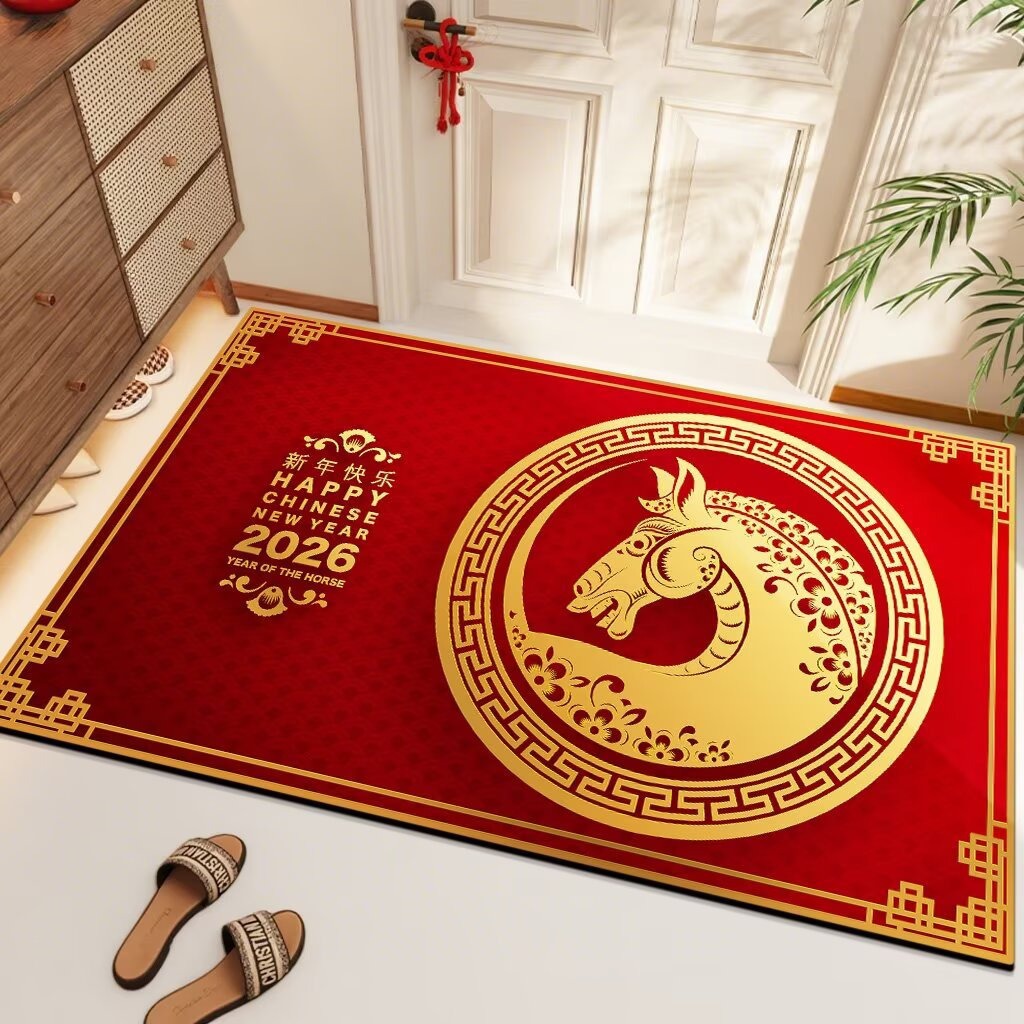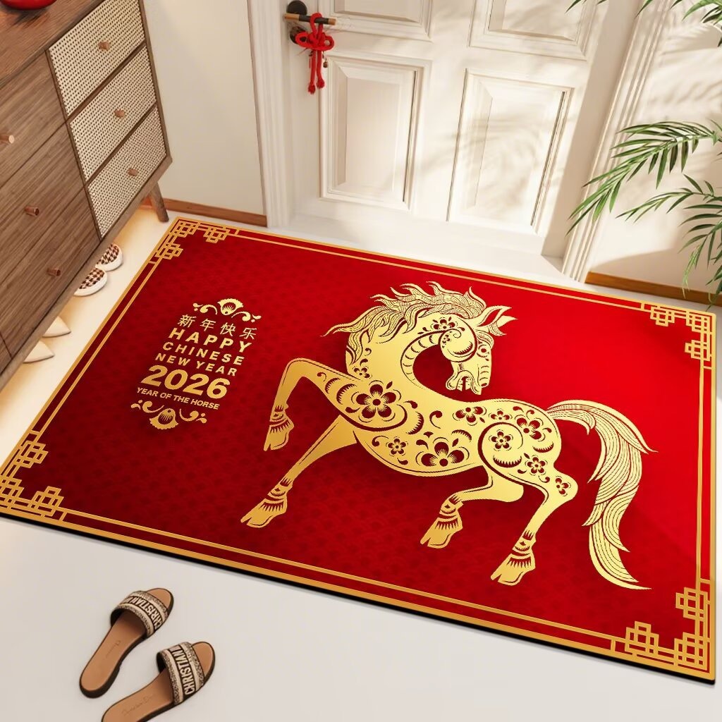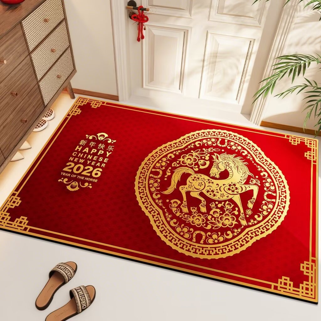 2026马年喜庆红色水晶绒地垫入户玄关地毯厨房耐磨耐脏家用脚垫