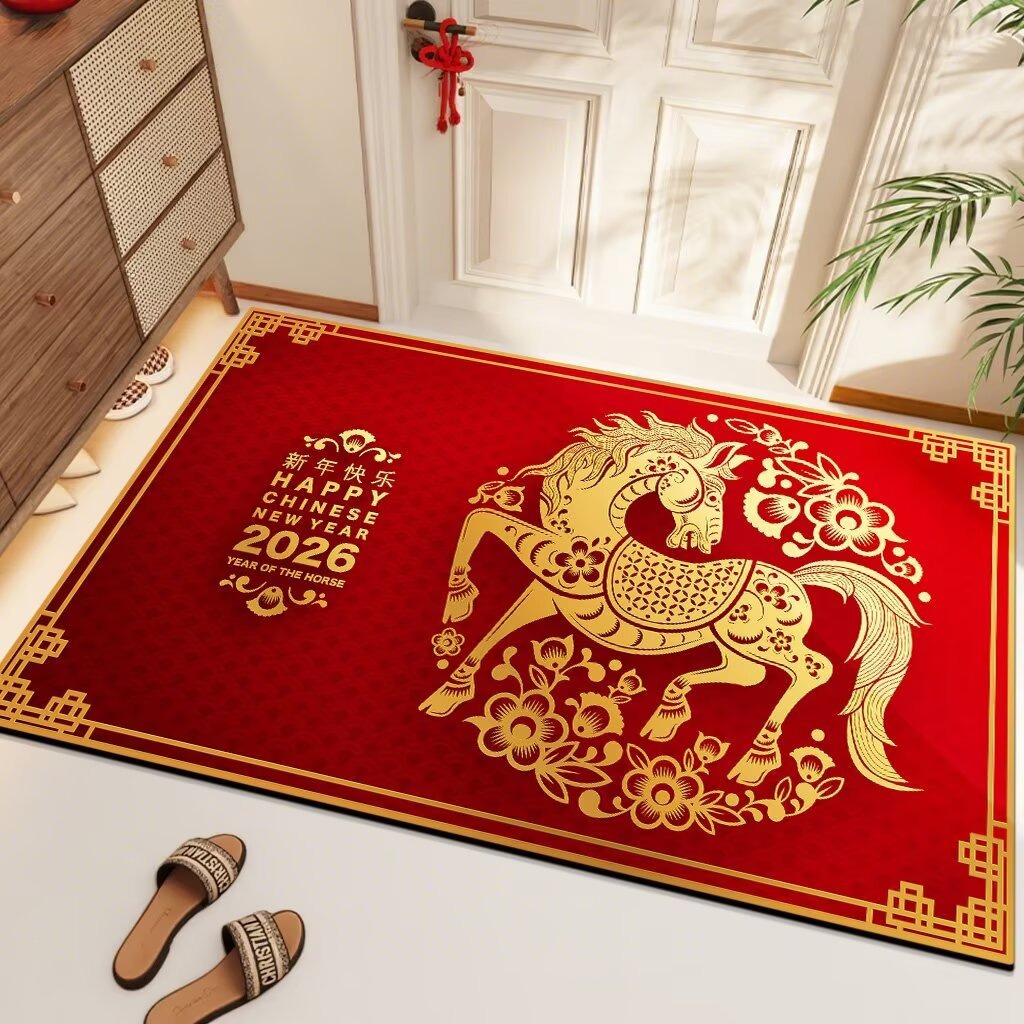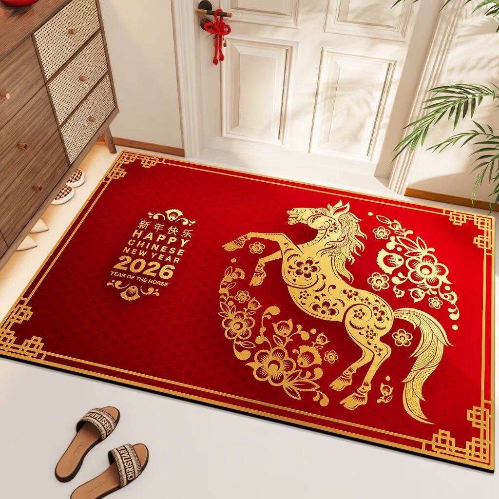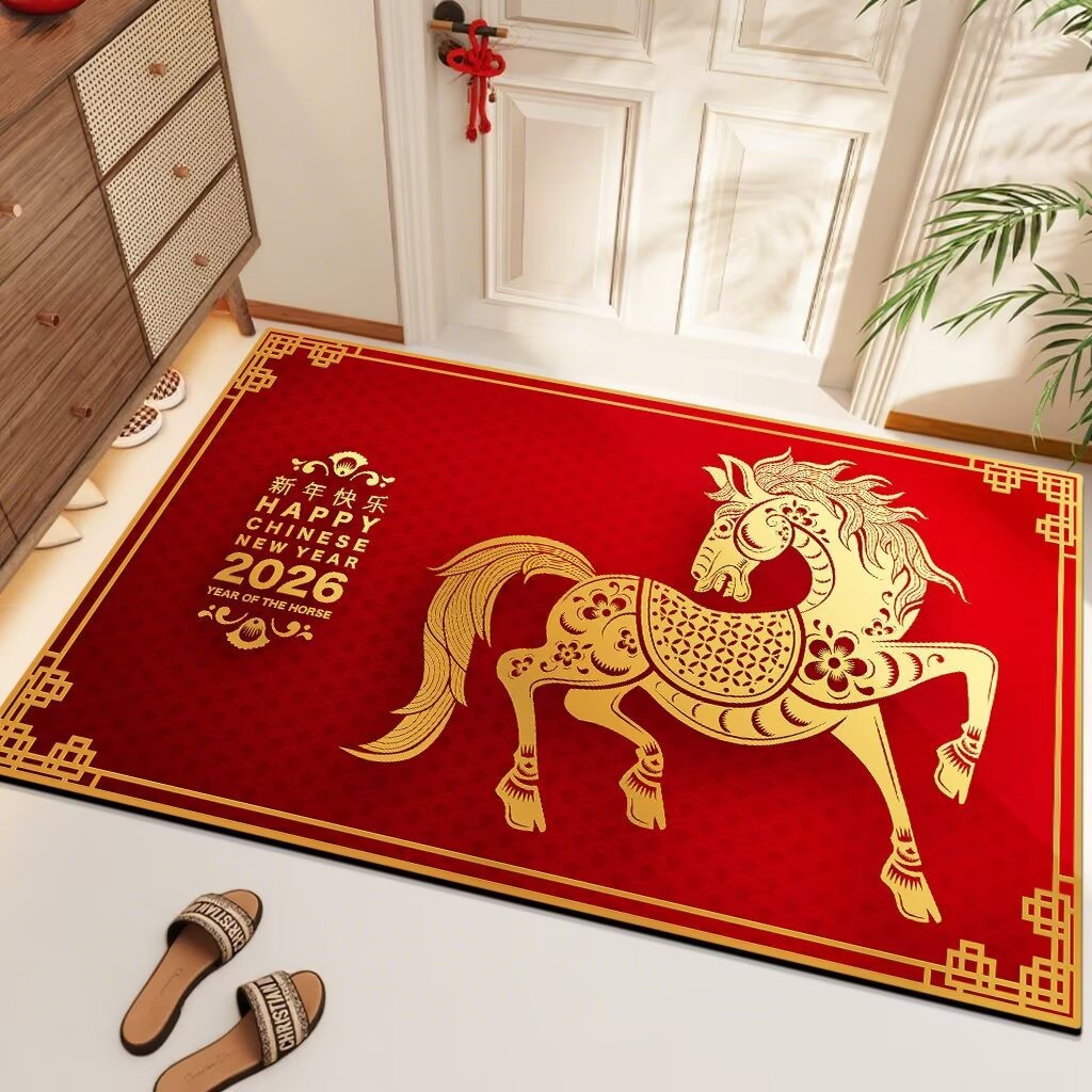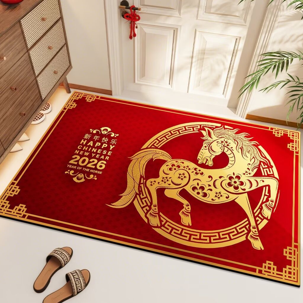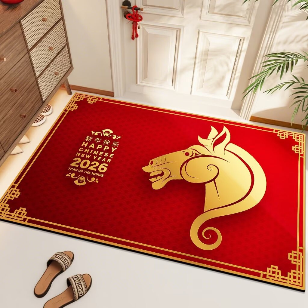 2026马年喜庆红色水晶绒地垫入户玄关地毯厨房耐磨耐脏家用脚垫