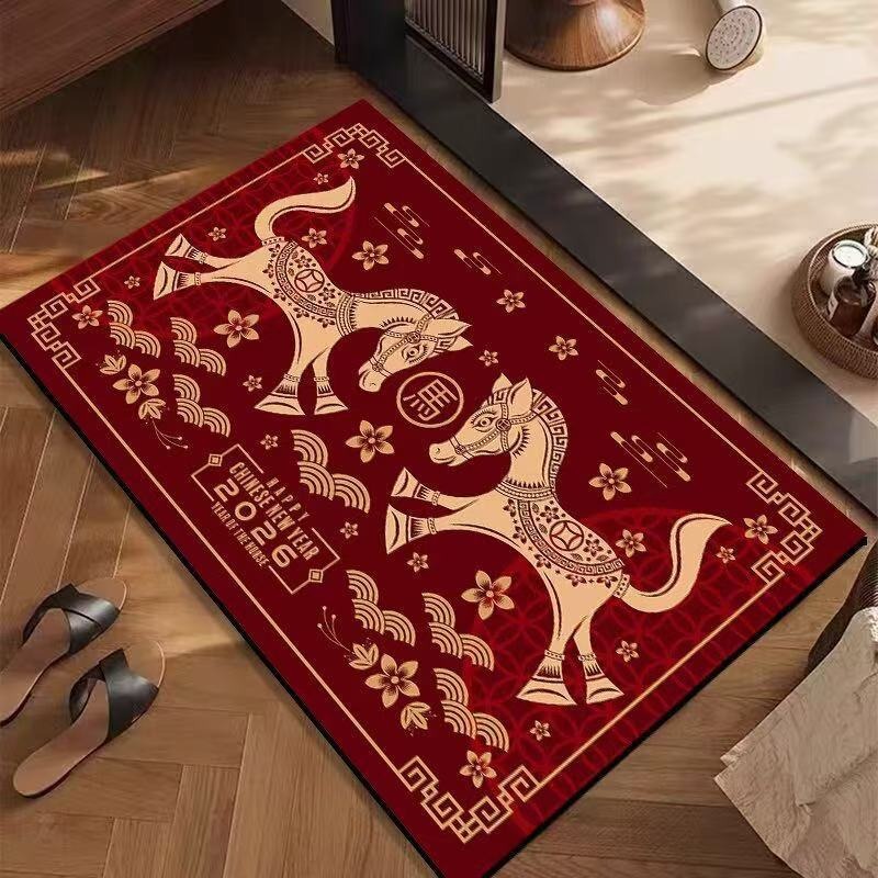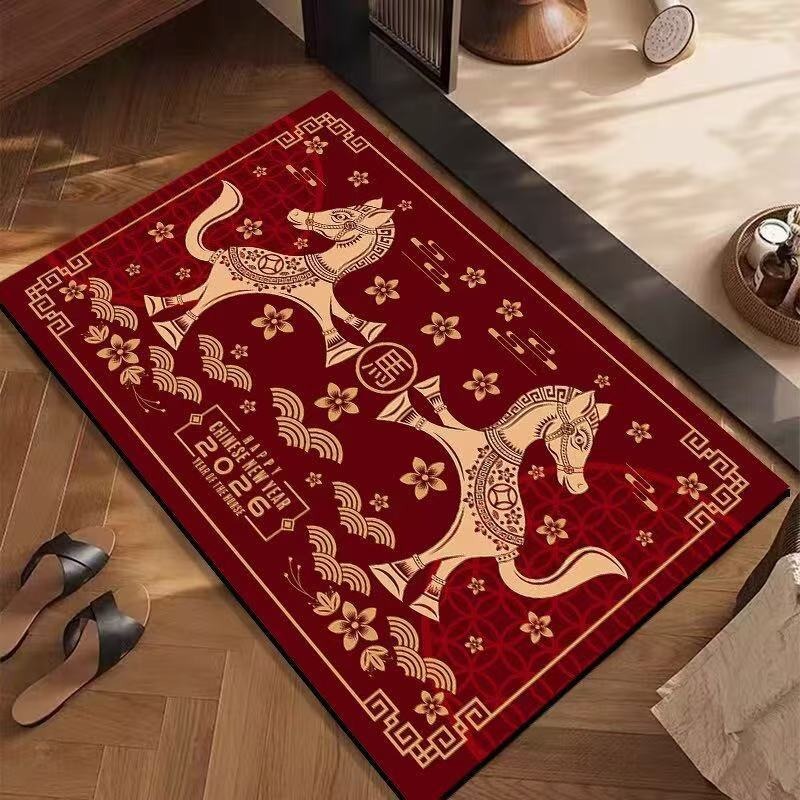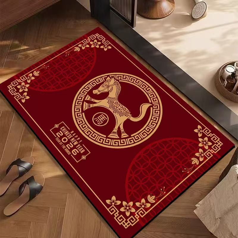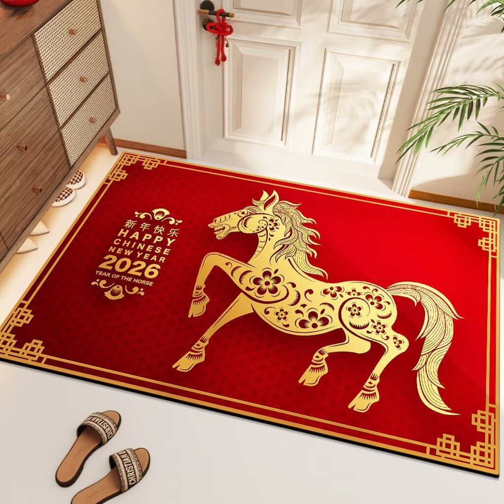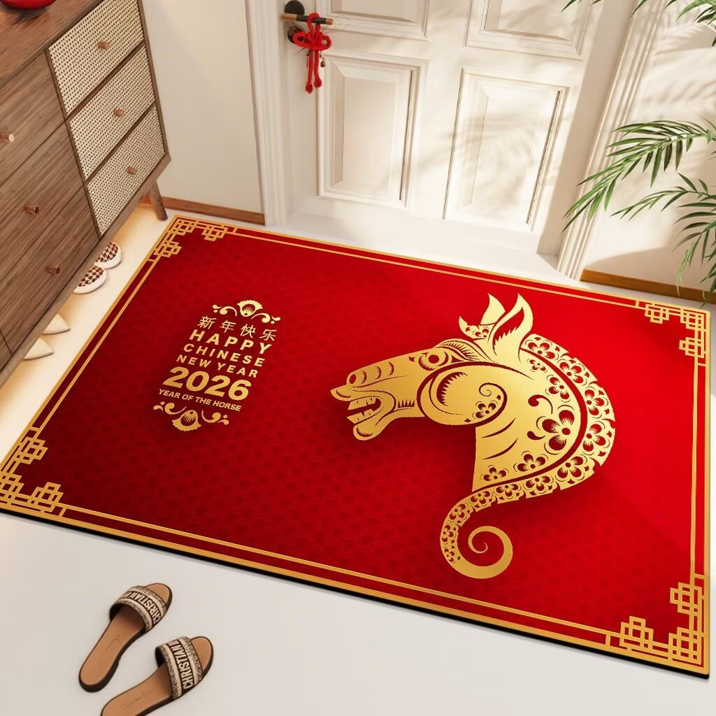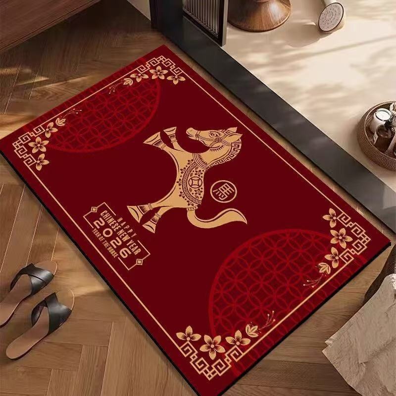 2026马年喜庆红色水晶绒地垫入户玄关地毯厨房耐磨耐脏家用脚垫