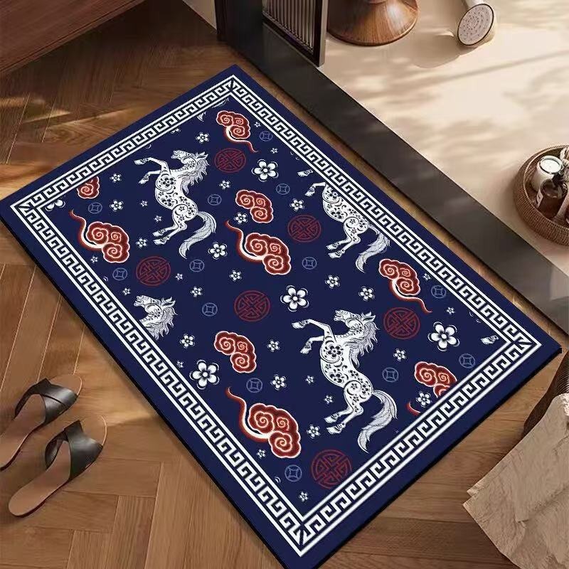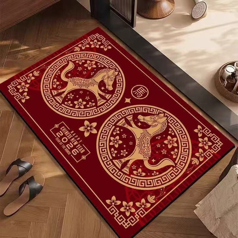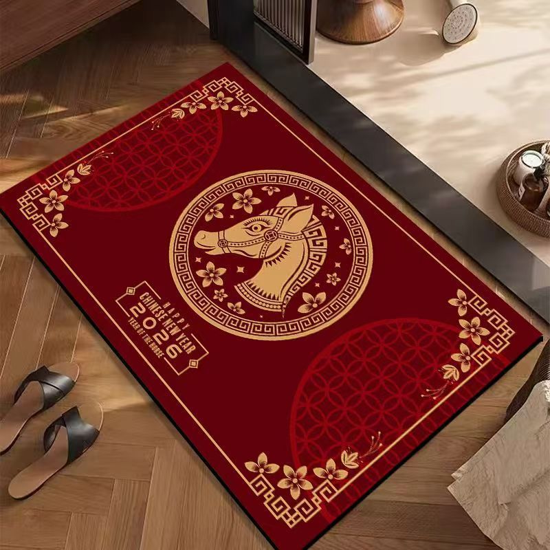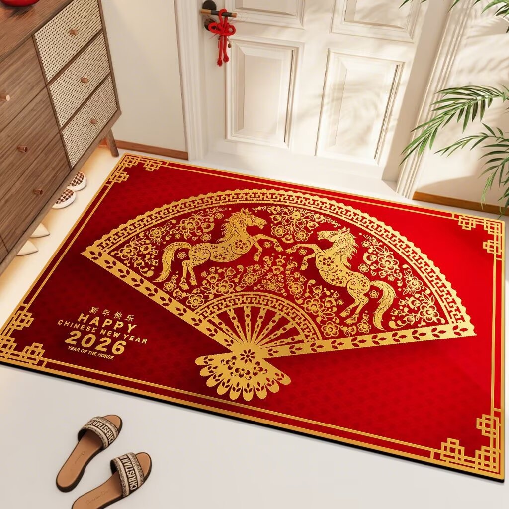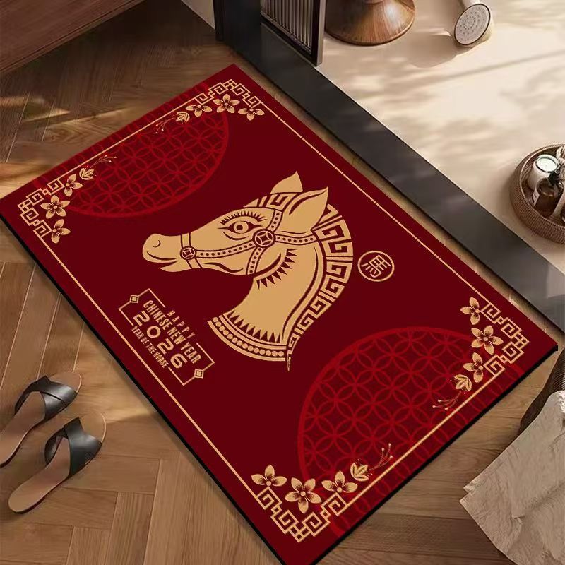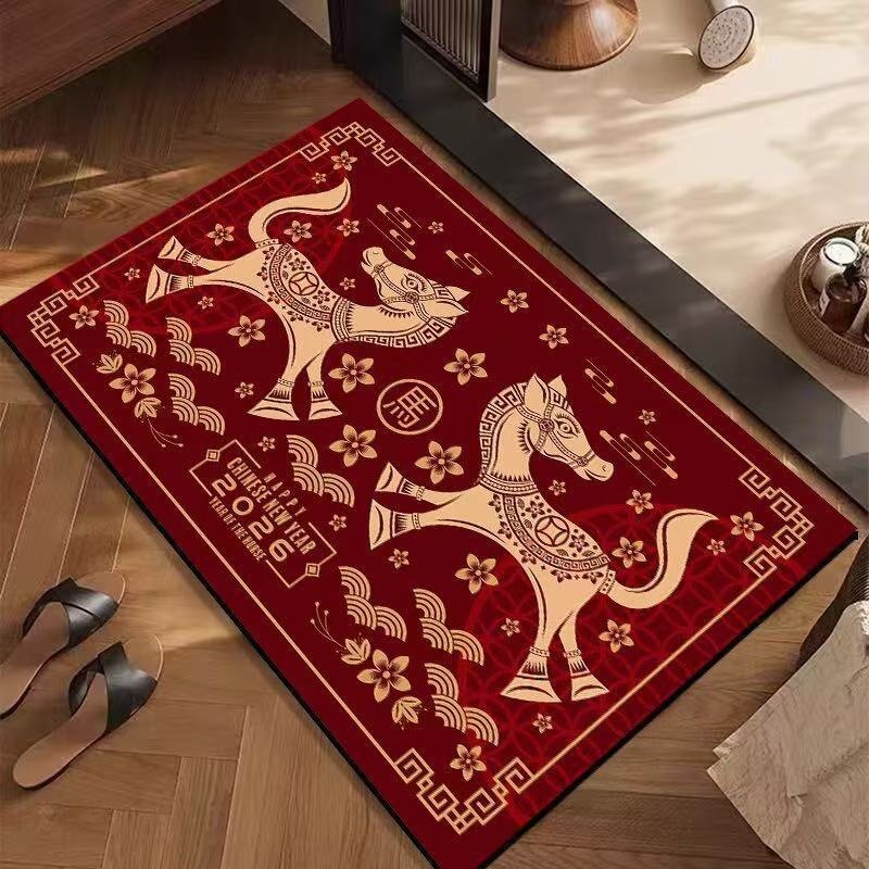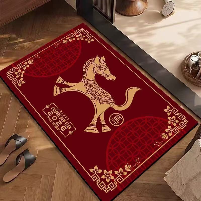 2026马年喜庆红色水晶绒地垫入户玄关地毯厨房耐磨耐脏家用脚垫