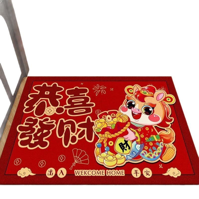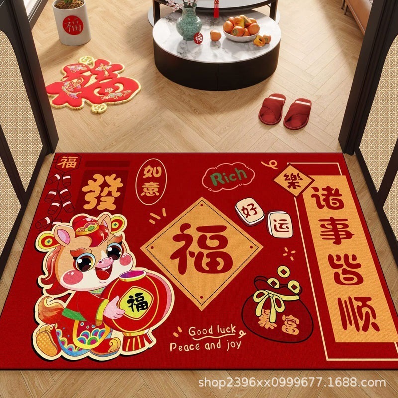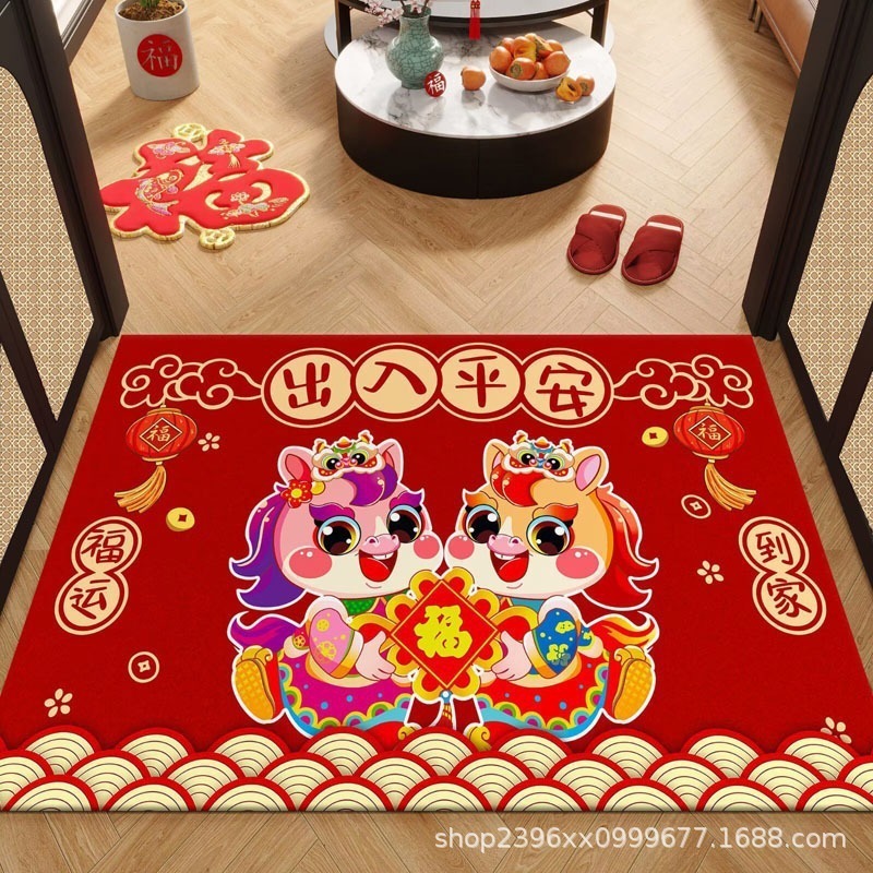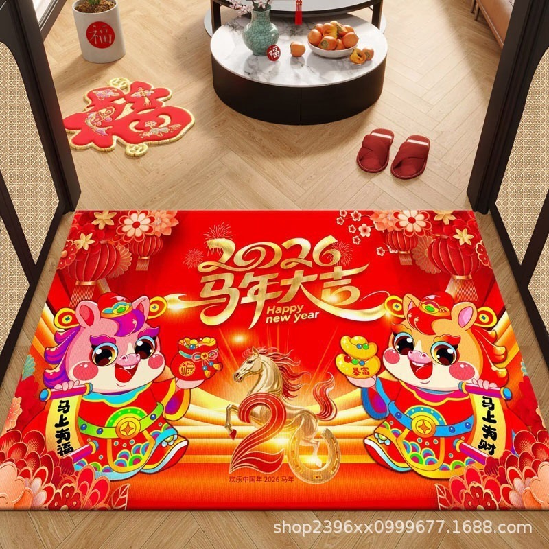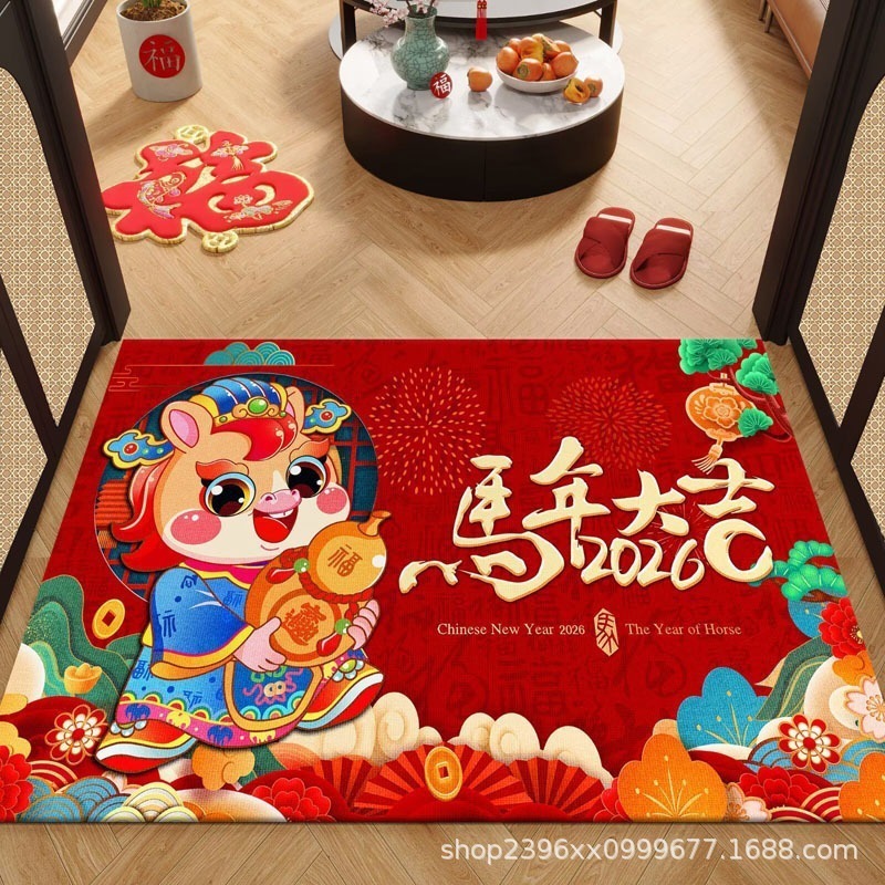 2026年马年喜庆红地垫水晶绒防滑吸水装饰耐磨耐脏玄关进门地垫