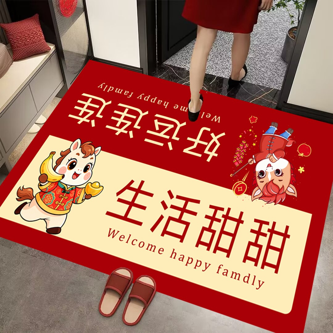 马年地垫2026开门红新年脚垫子礼品可印logo家用门口灯笼马年大吉