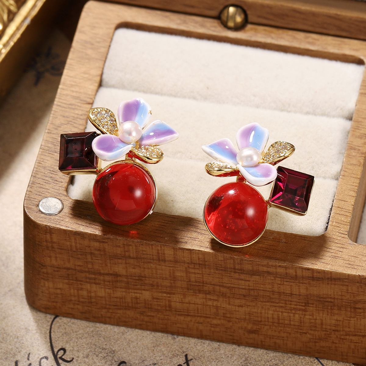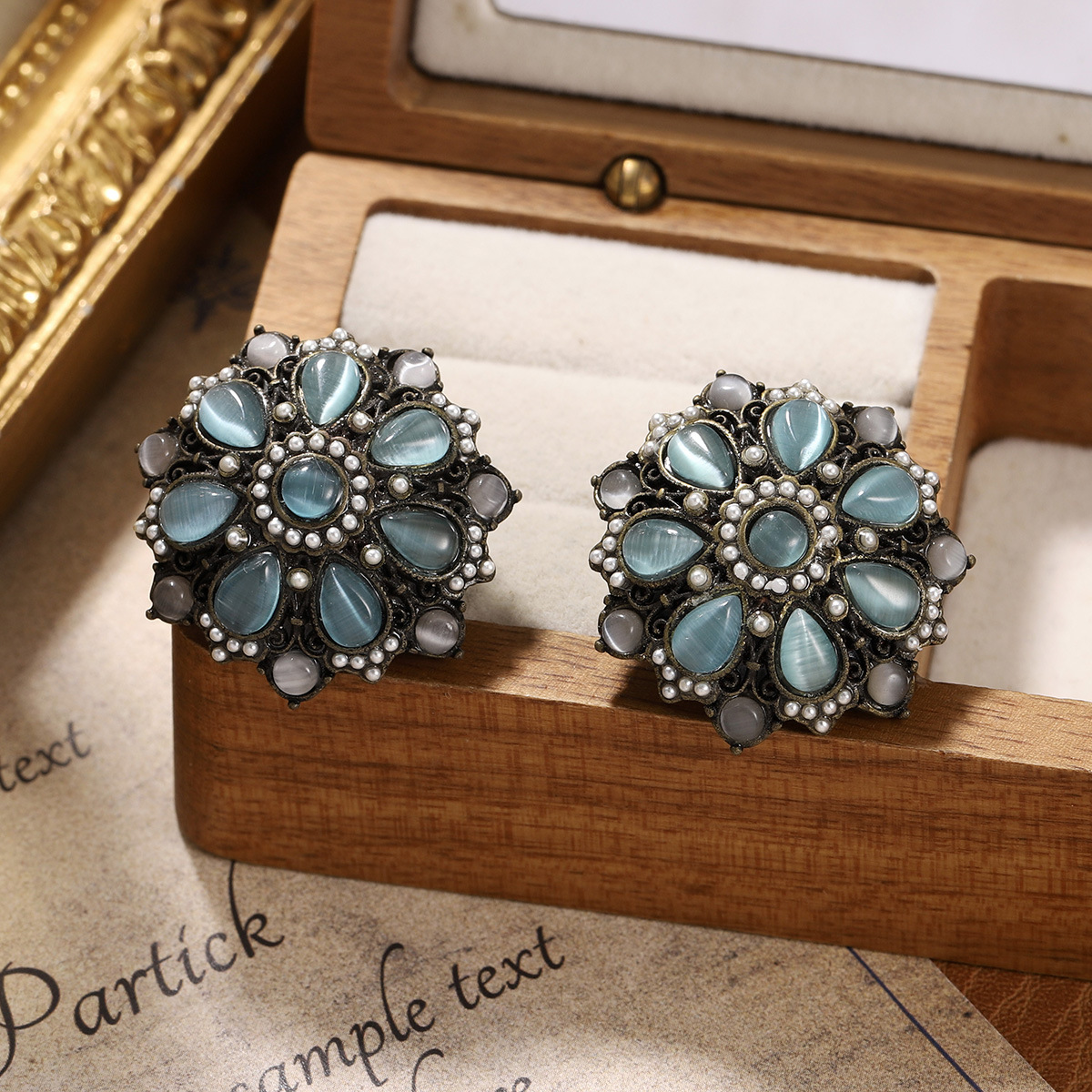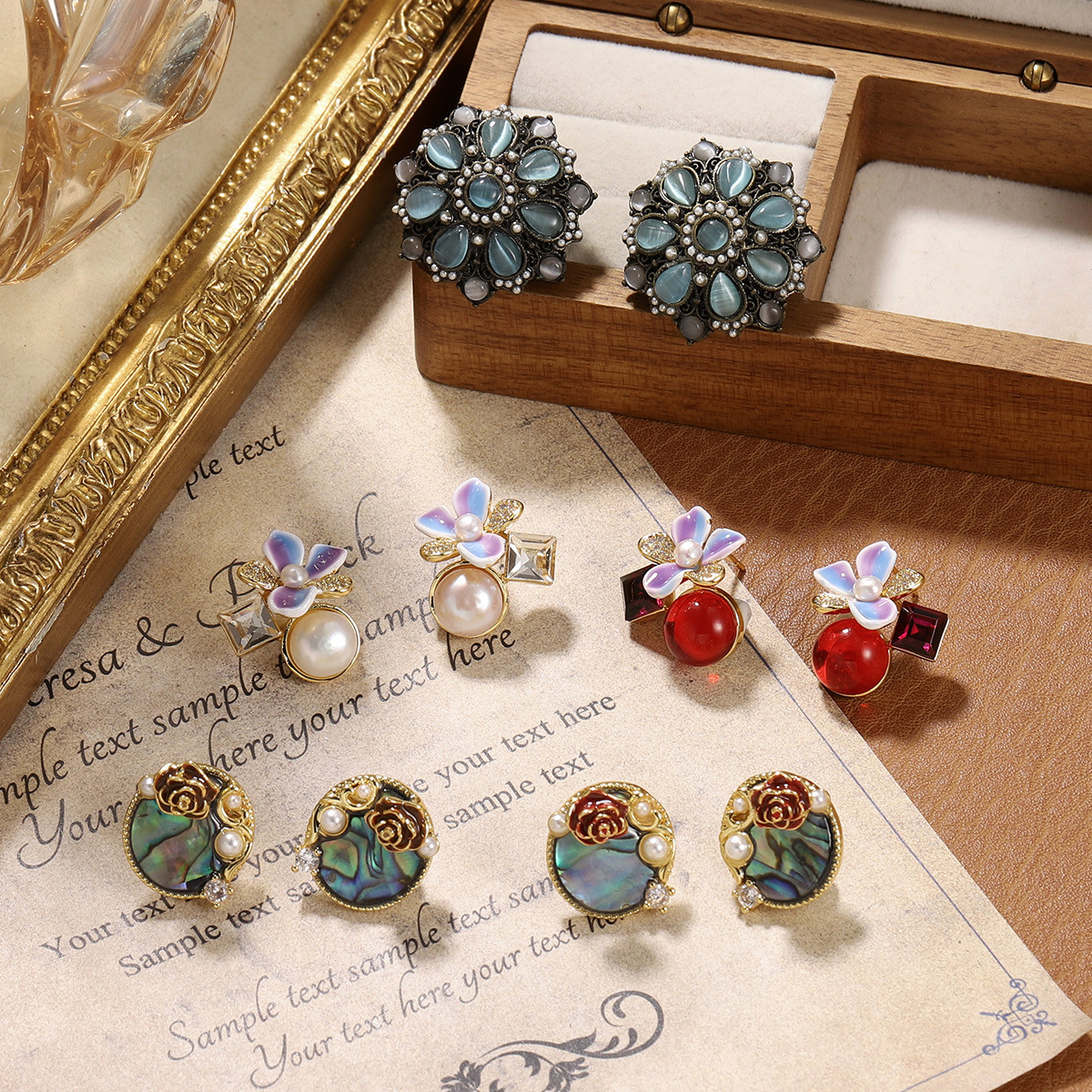 复古宫廷风花卉耳环新款女中古vintage小众设计高级感耳饰品批发