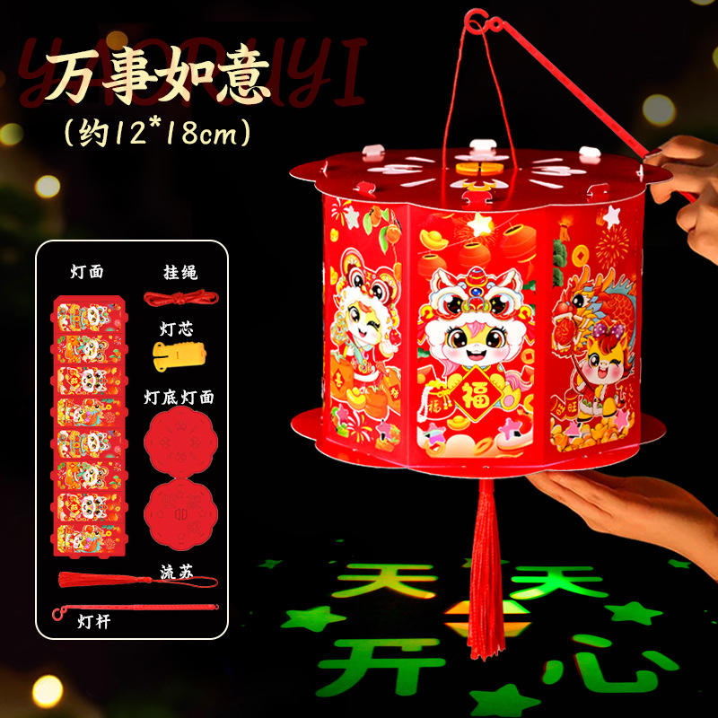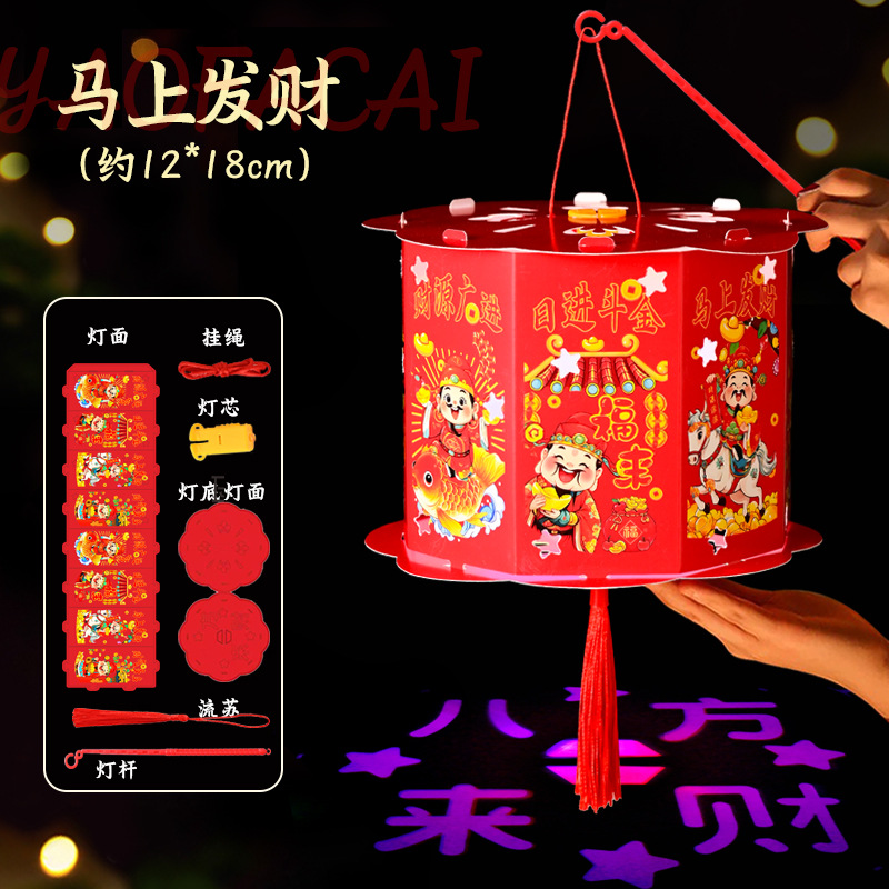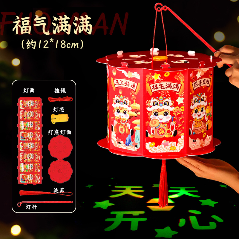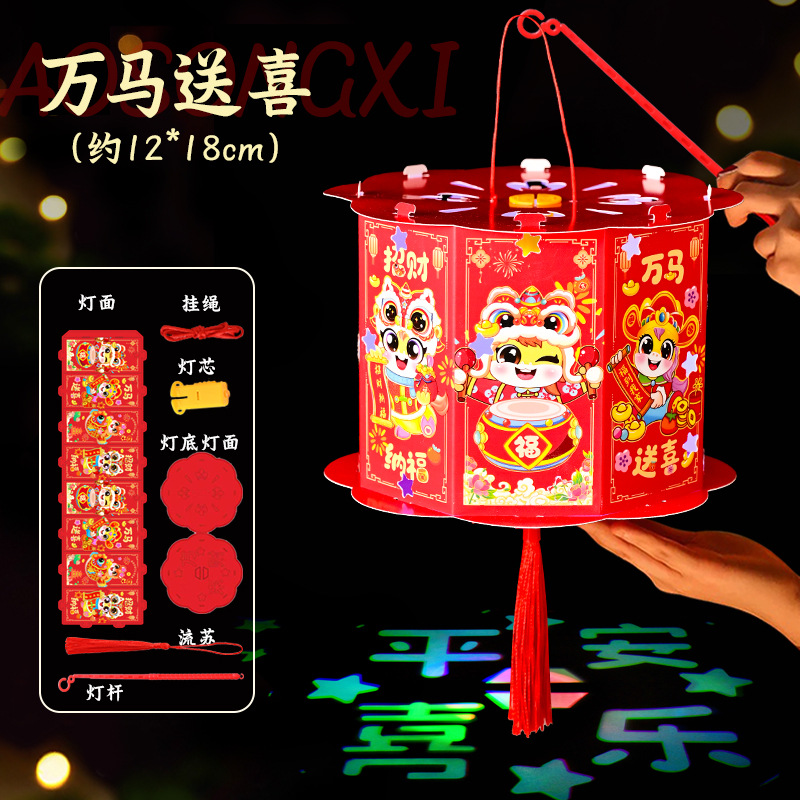 马年手工灯笼制作diy材料儿童幼儿园手提发光新年走马灯纸灯笼