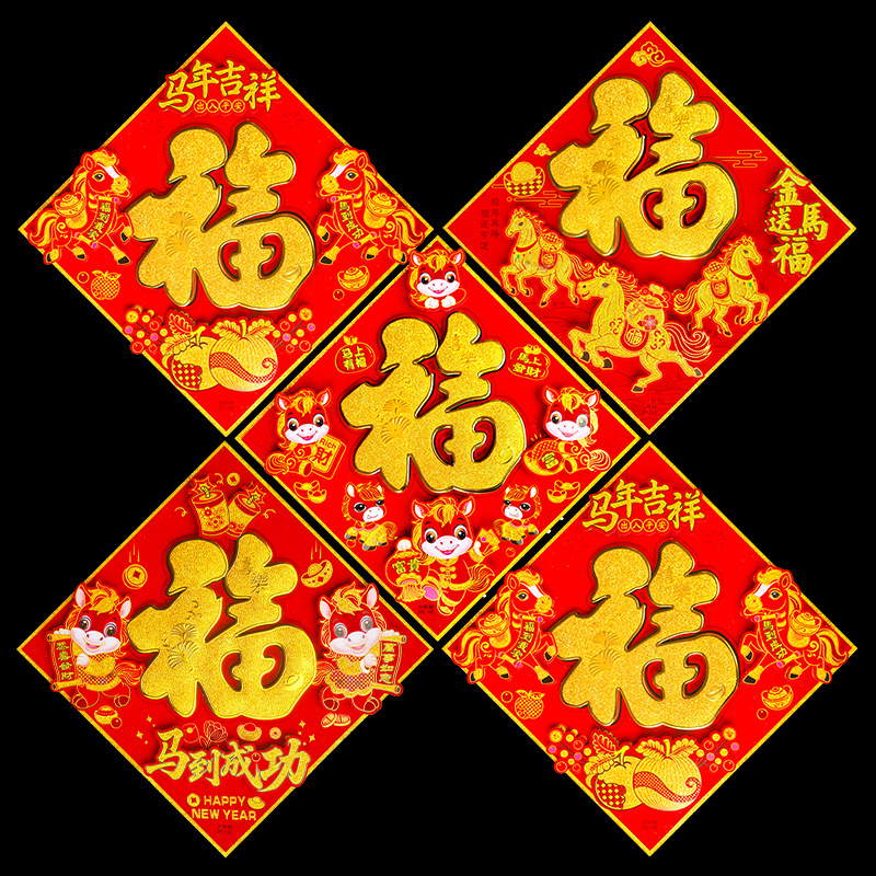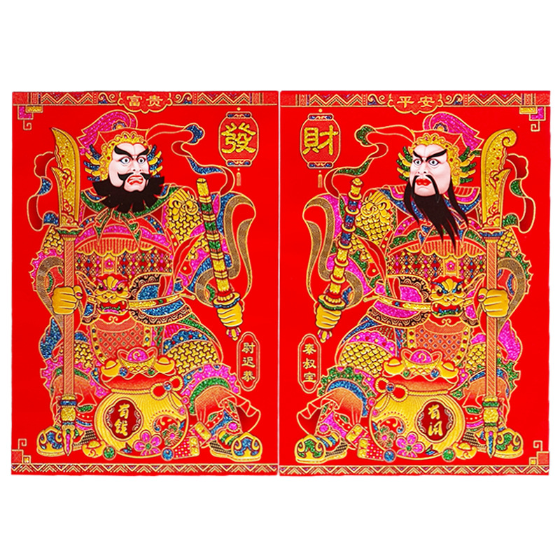 门神 张飞关羽厂家直销四开烫金植绒门神 门神财神门贴用品批发
