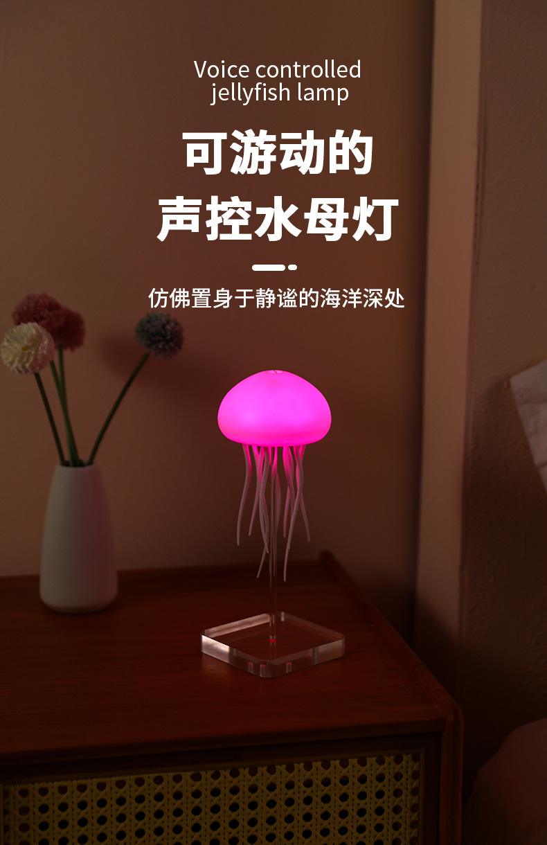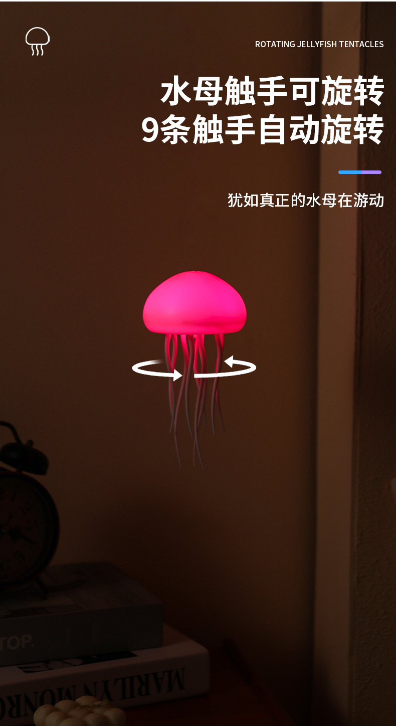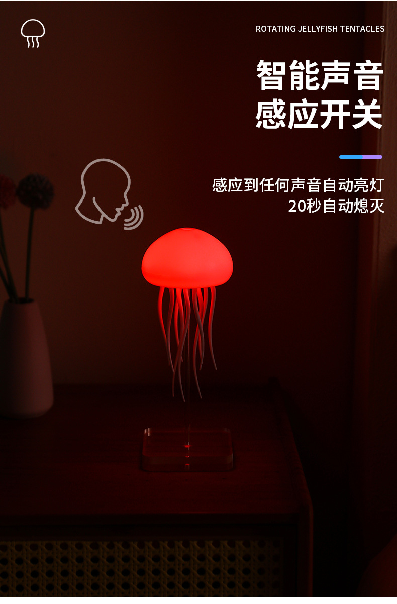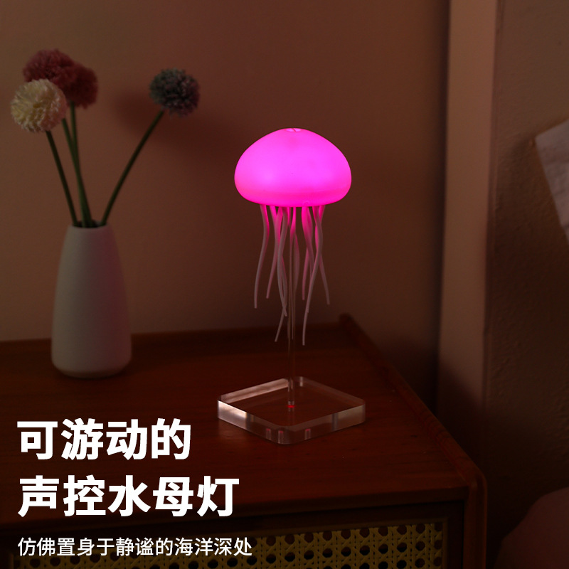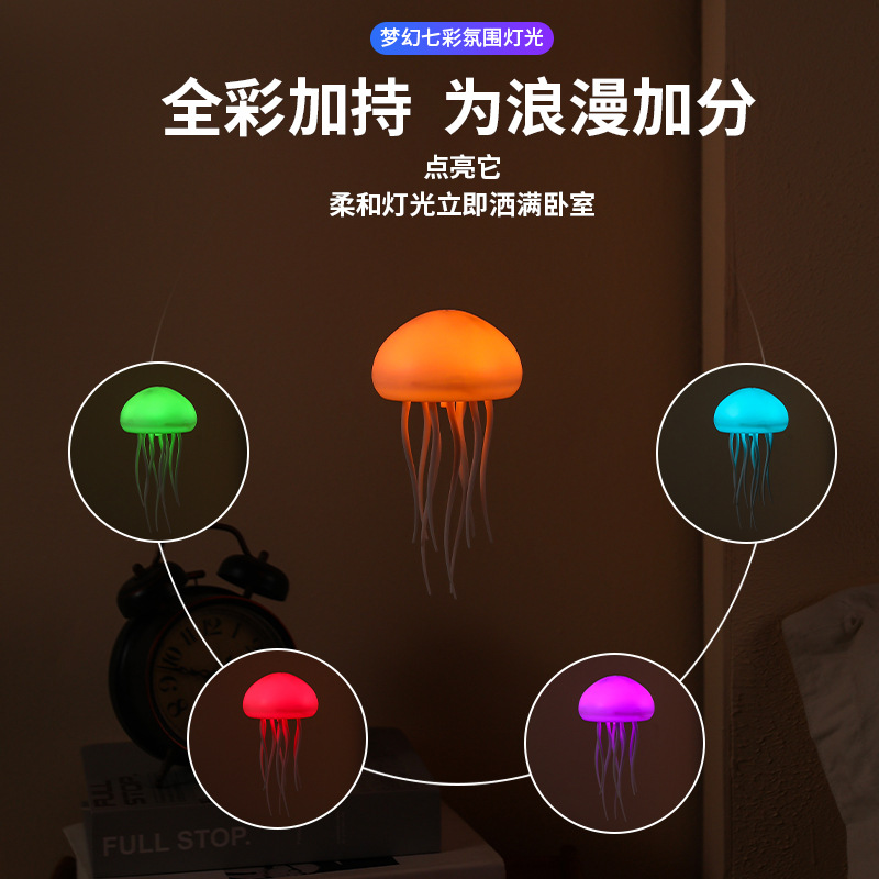 新款跨境智能声控水母灯悬浮氛围灯创意小夜灯灵动触脚炫彩渐变色