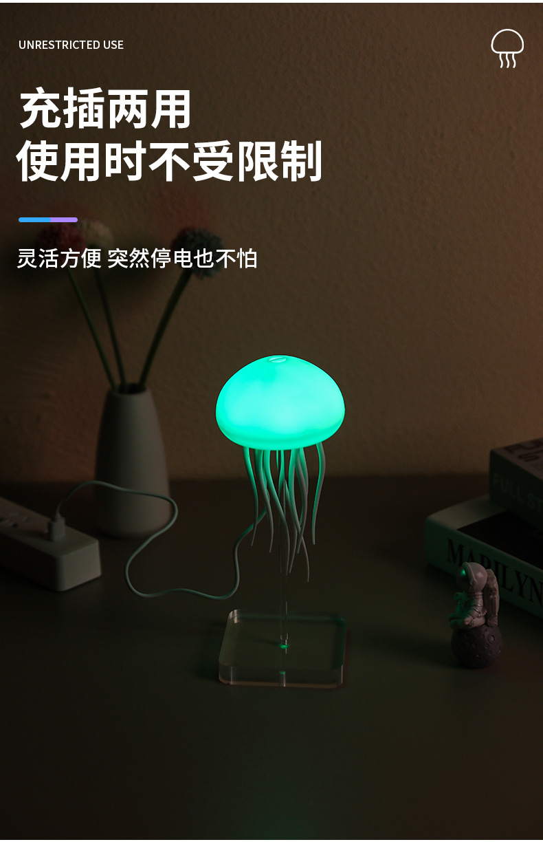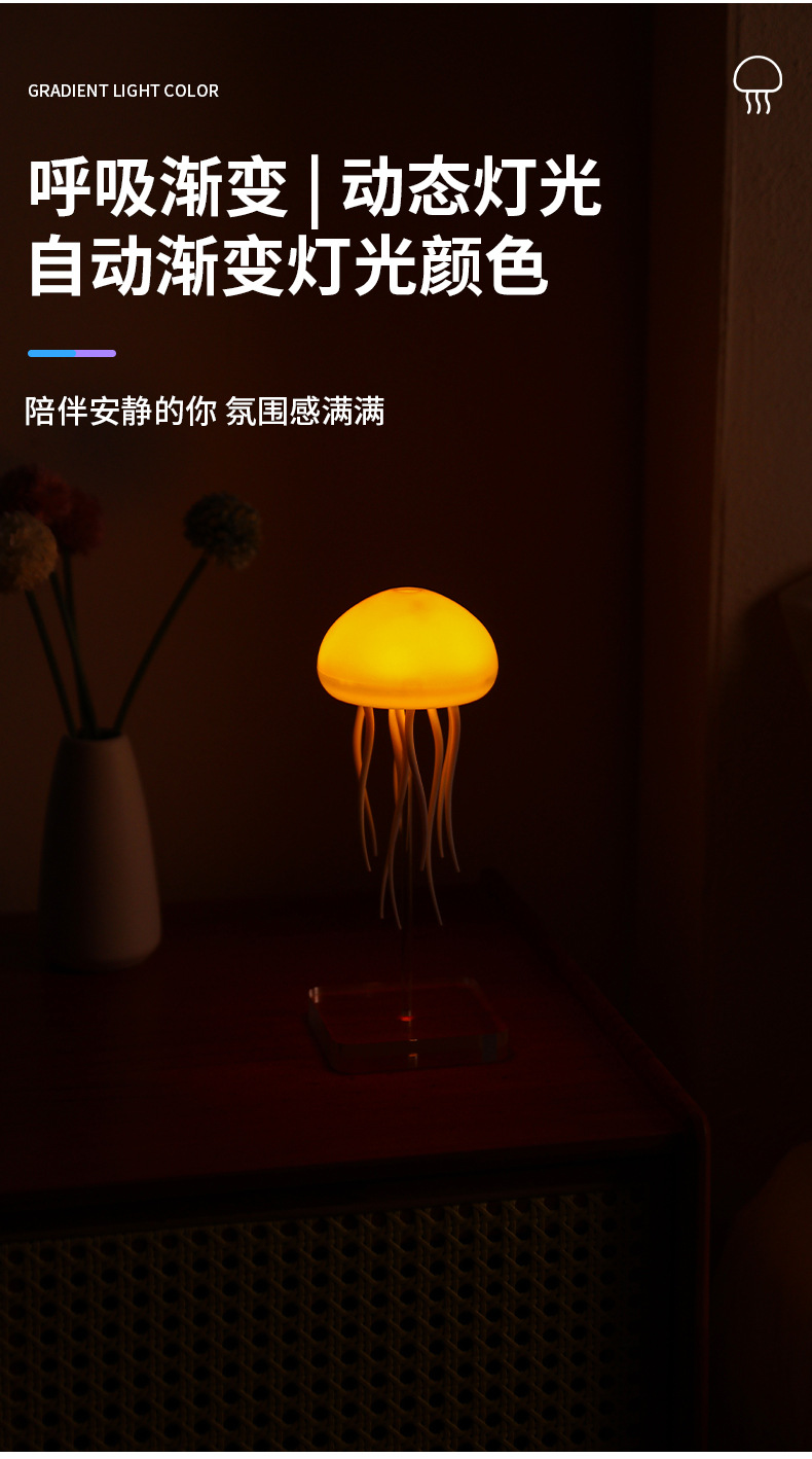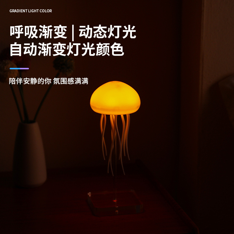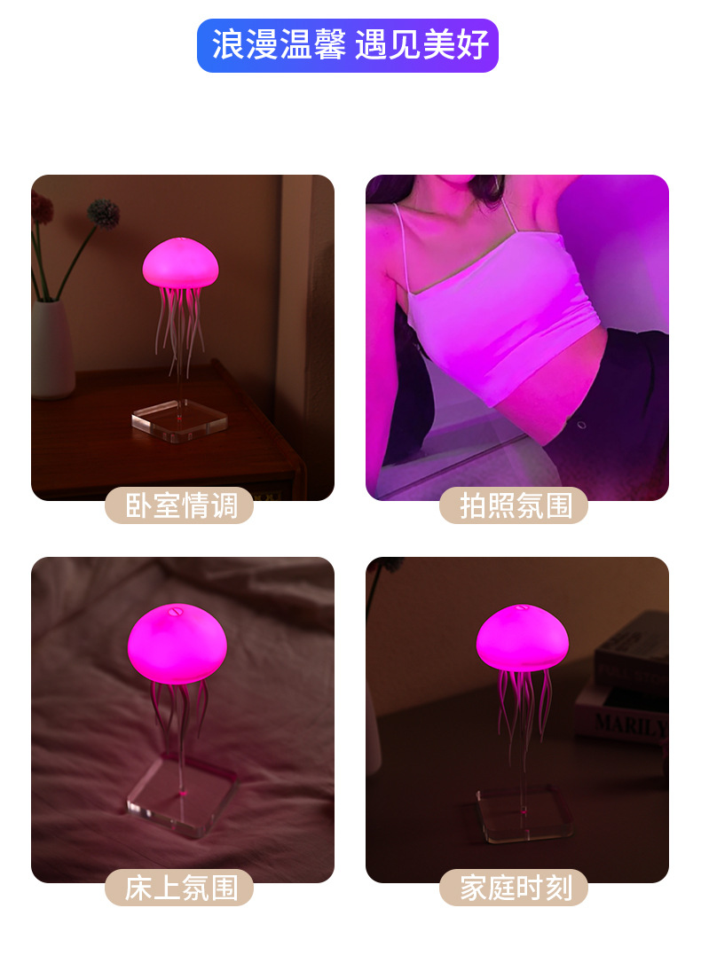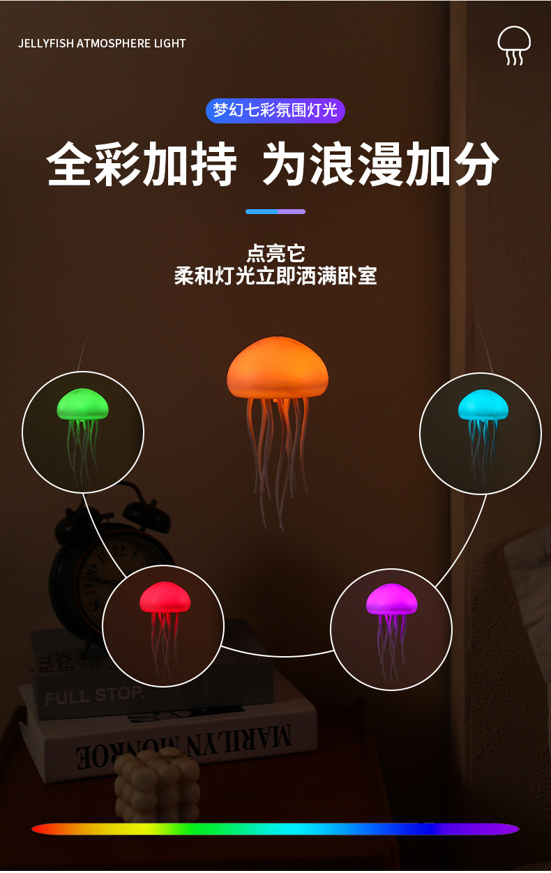 新款跨境智能声控水母灯悬浮氛围灯创意小夜灯灵动触脚炫彩渐变色