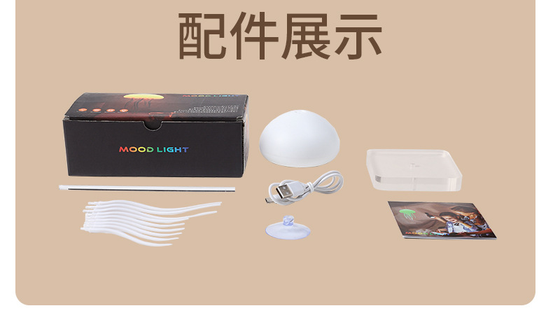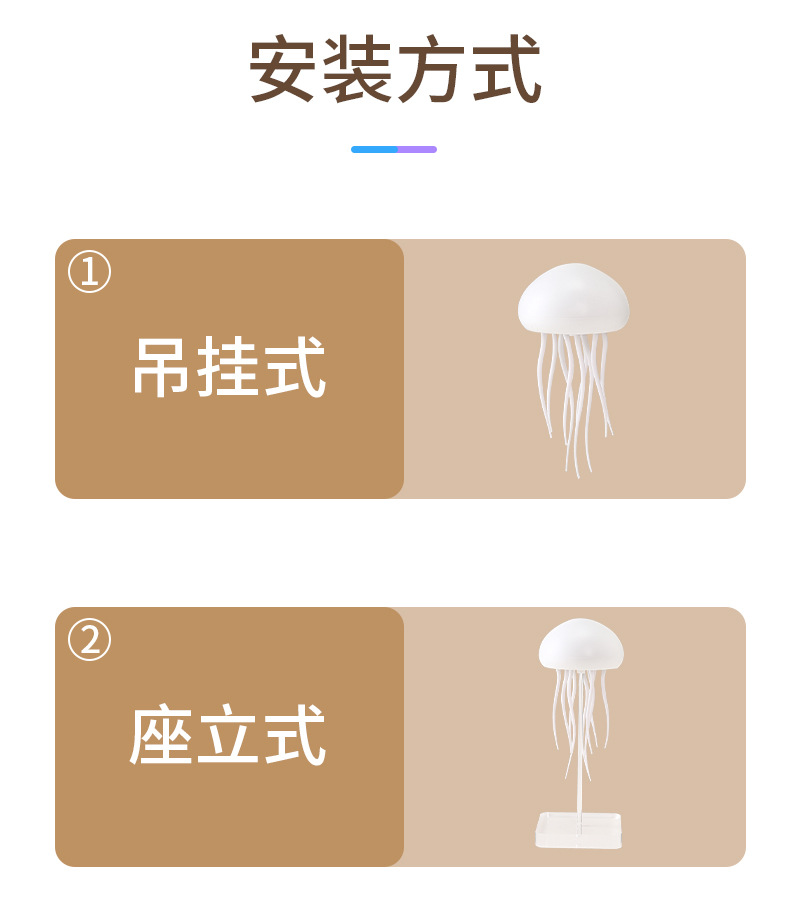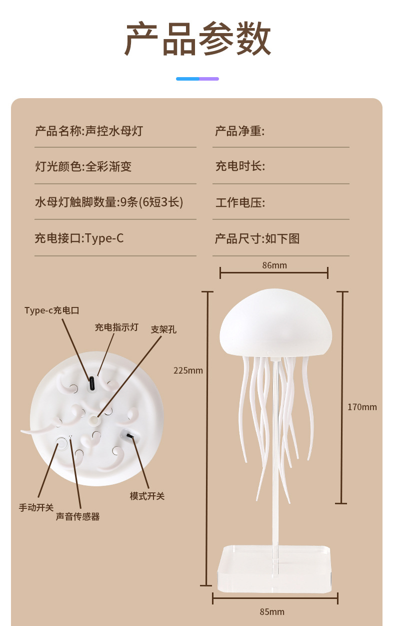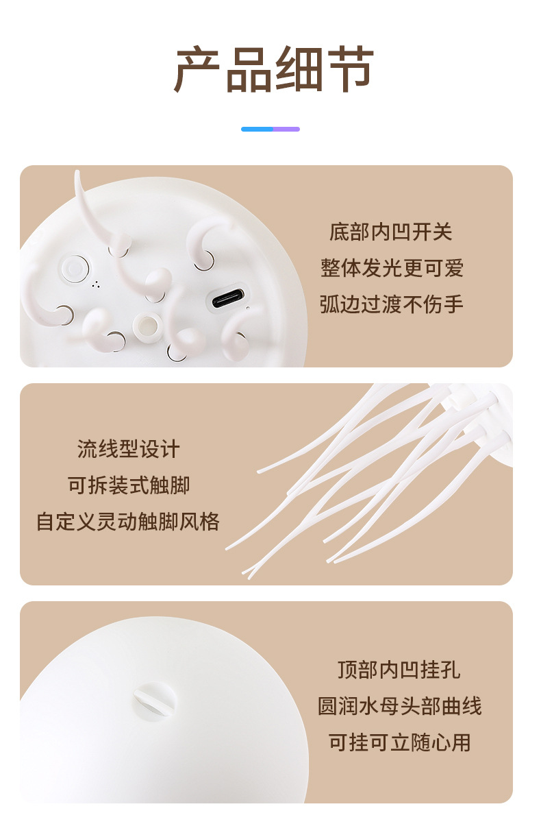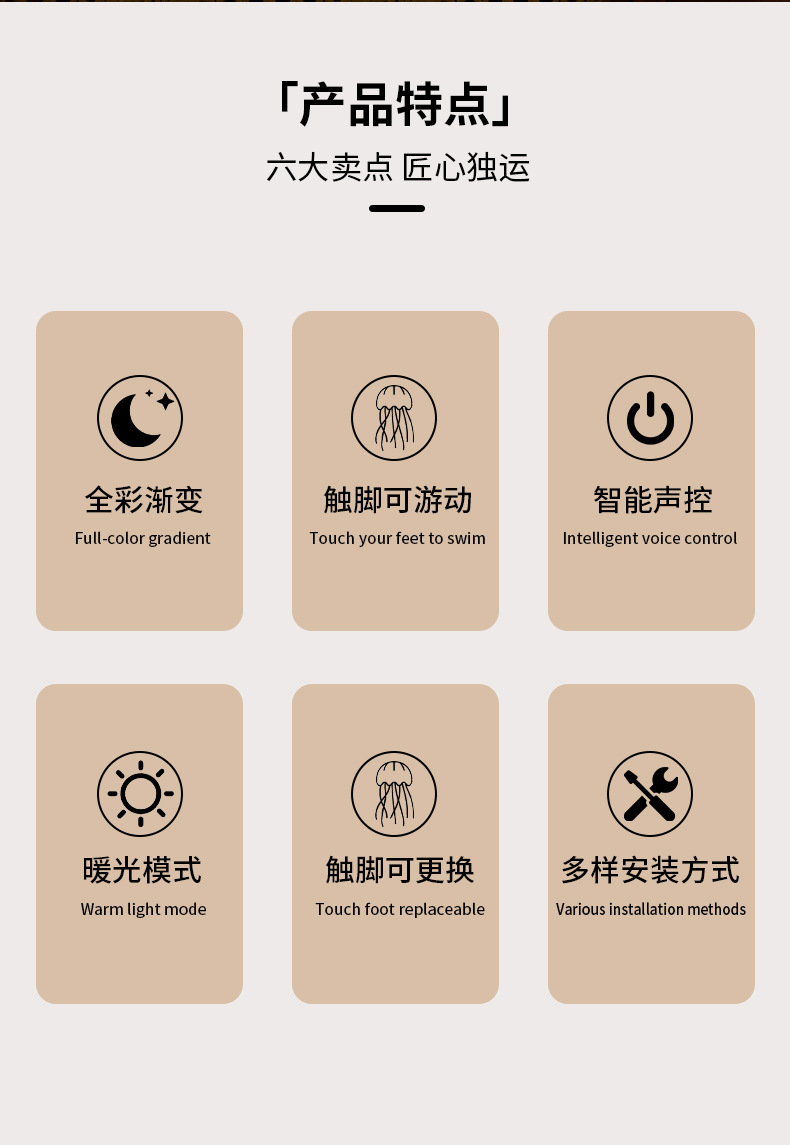 新款跨境智能声控水母灯悬浮氛围灯创意小夜灯灵动触脚炫彩渐变色